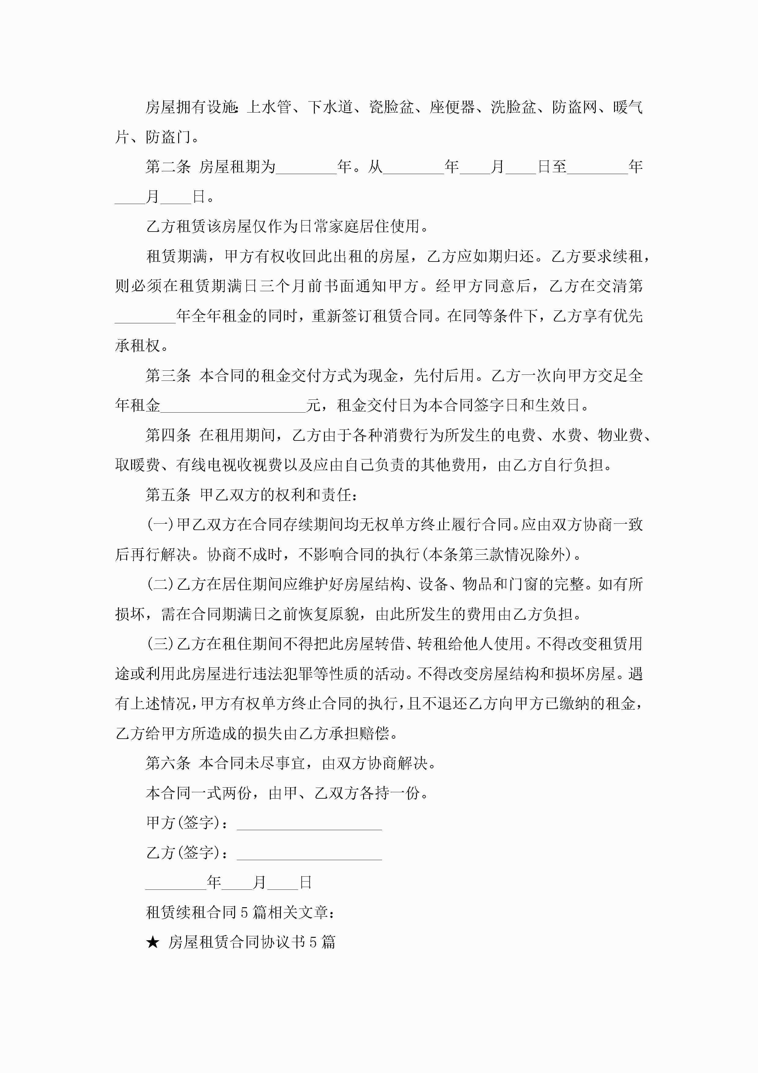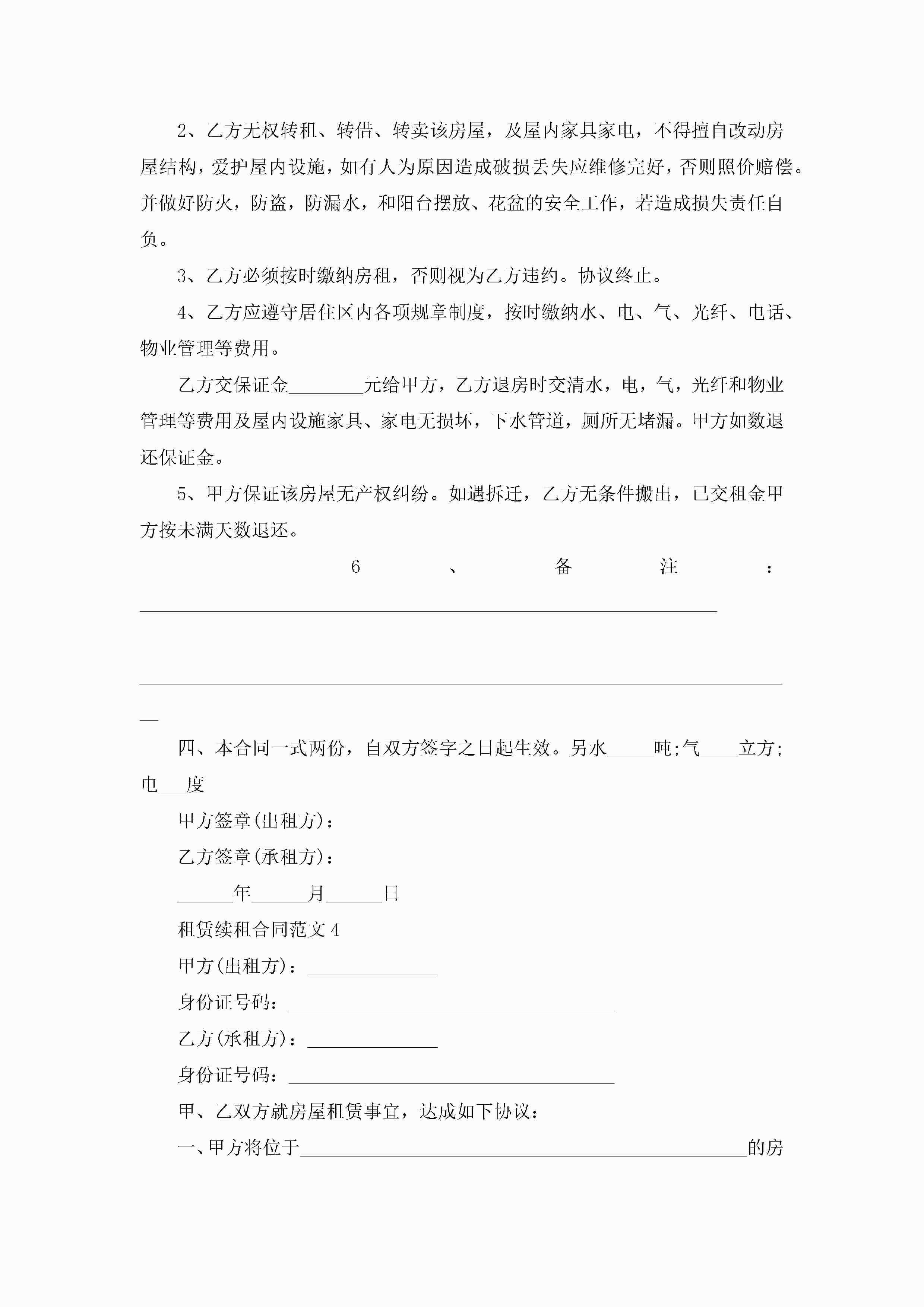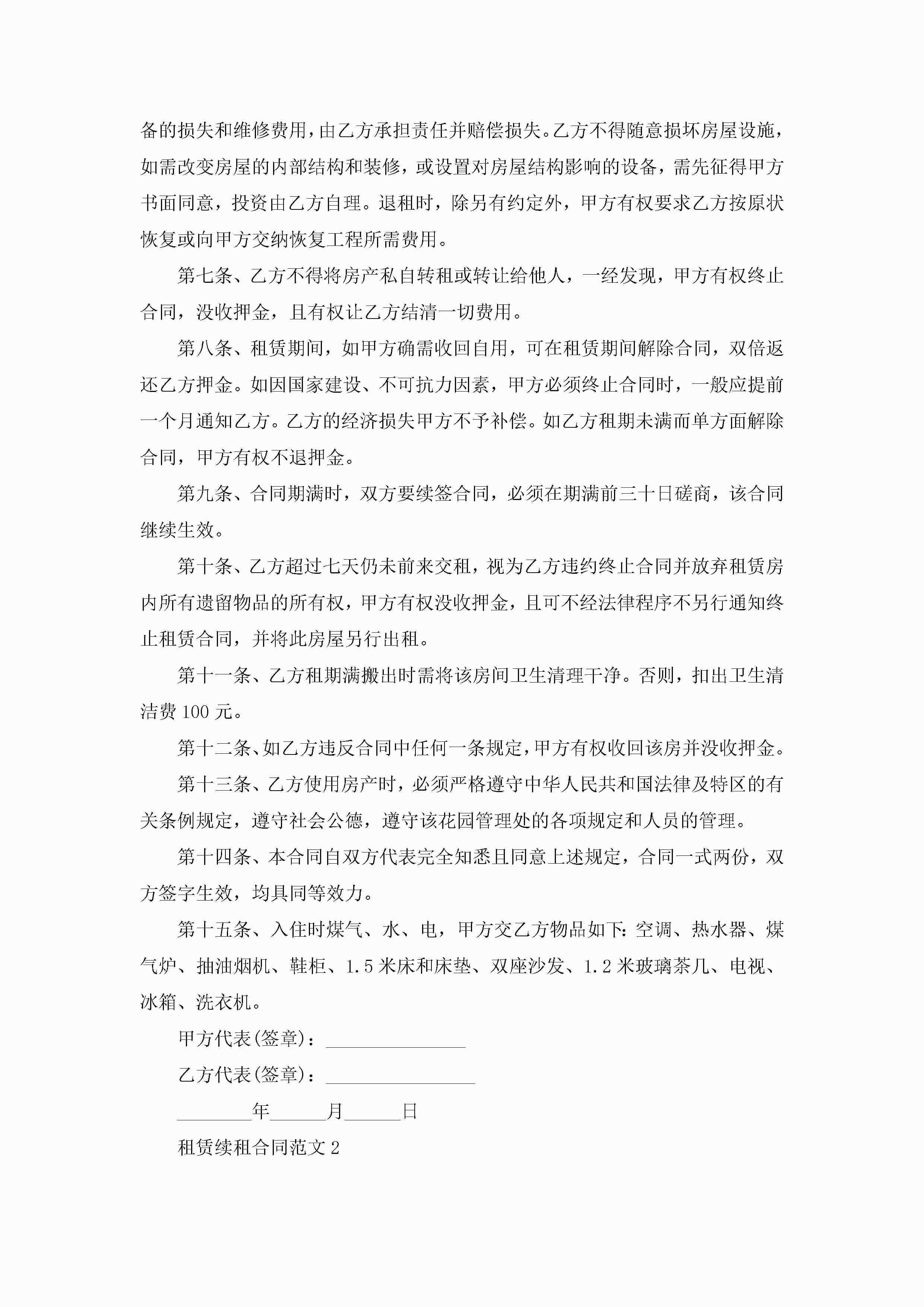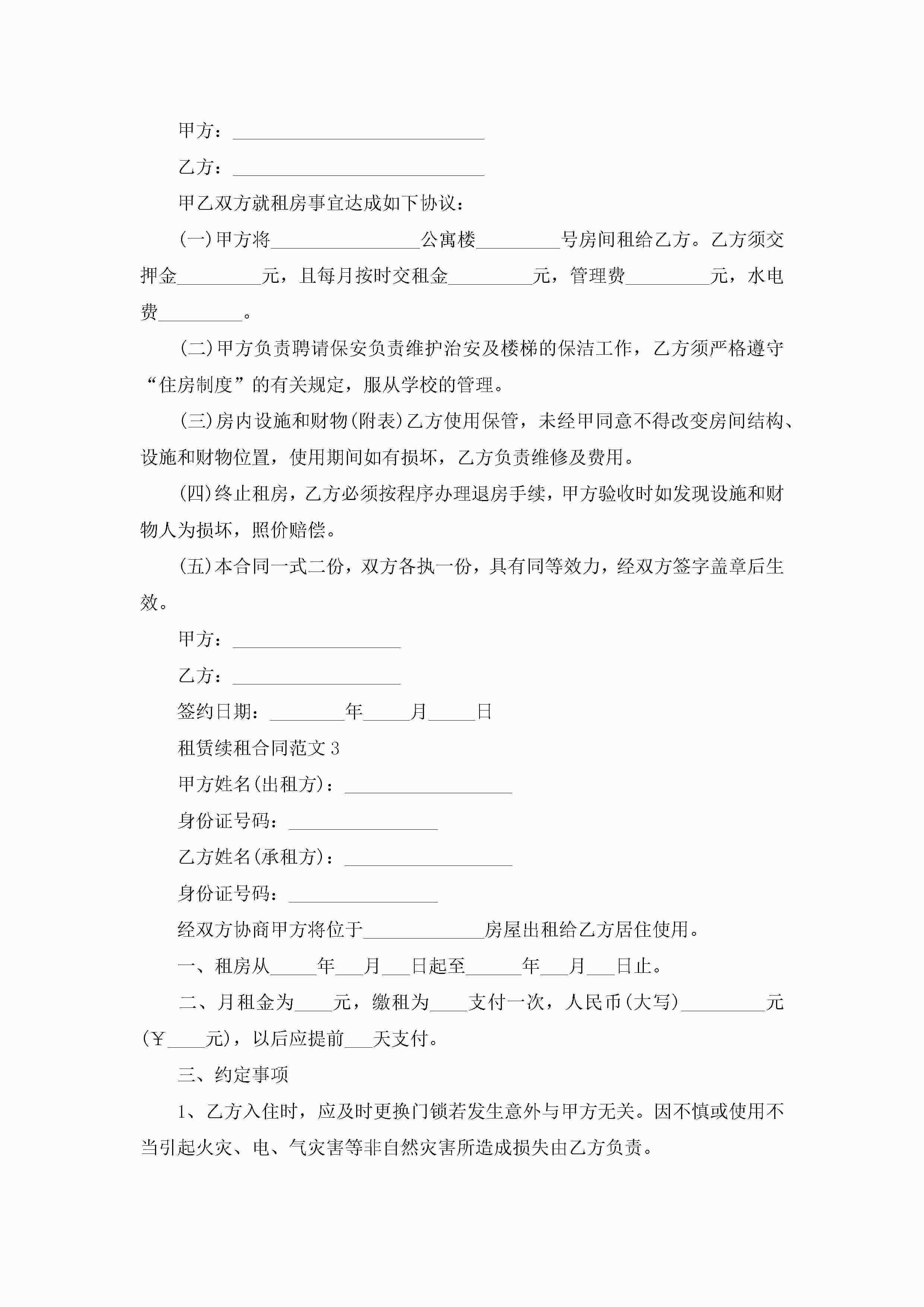 租赁续租合同范文5篇jugei3月23日 01:43发布关注186 租赁续租合同范文5篇此内容为付费资源,请付费后查看¥10.9 单篇文档限时特惠¥15个人会员开通企业会员开通立即下载无需登陆!可直接快捷下载单个模板付费资源© 版权声明THE ENDWord模板# 实用文档# 实用模板# 合同模板# 租赁合同 如有问题,可点击最底部“联系我们”联系客服 分享QQ空间微博QQ好友海报分享复制链接收藏