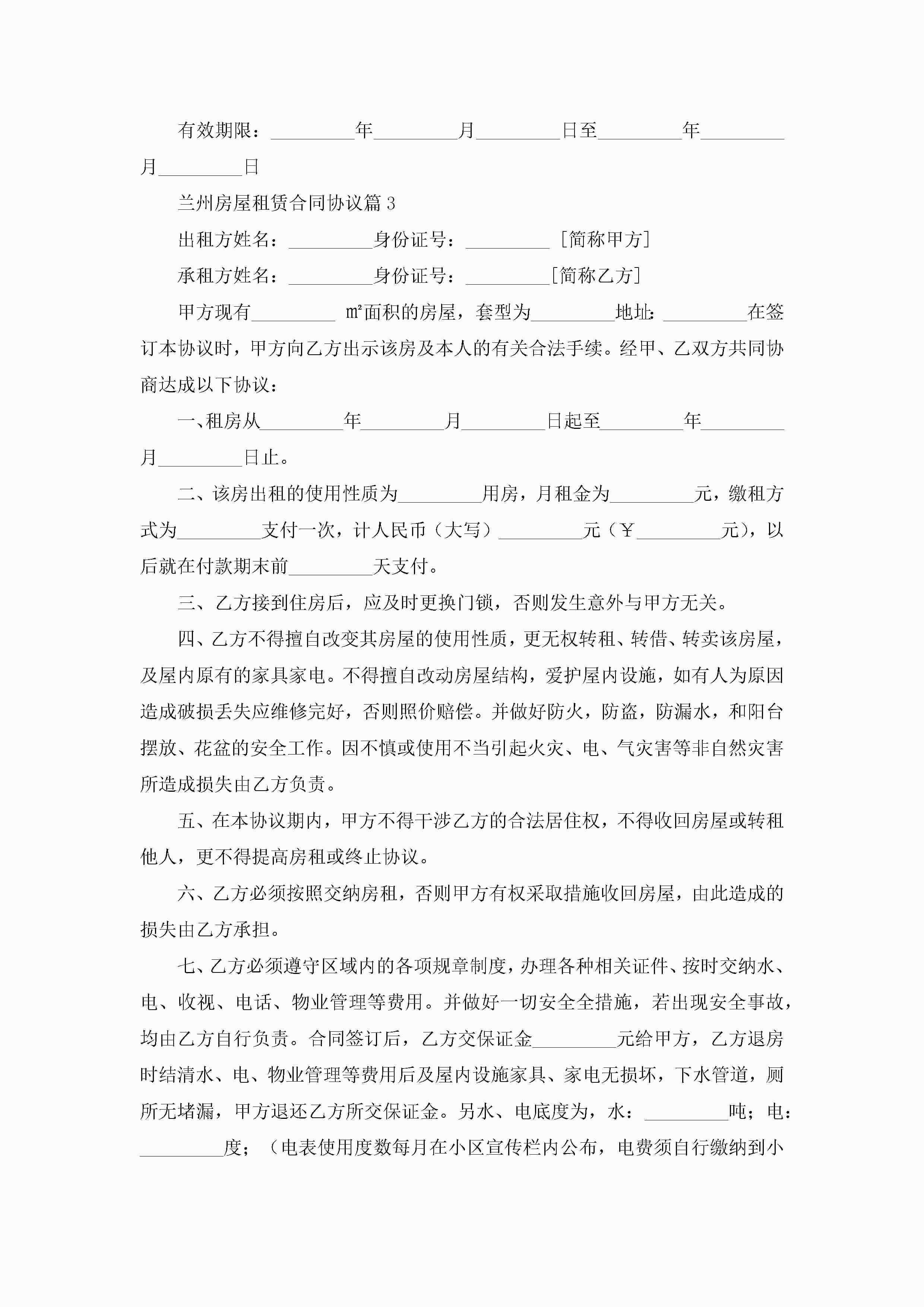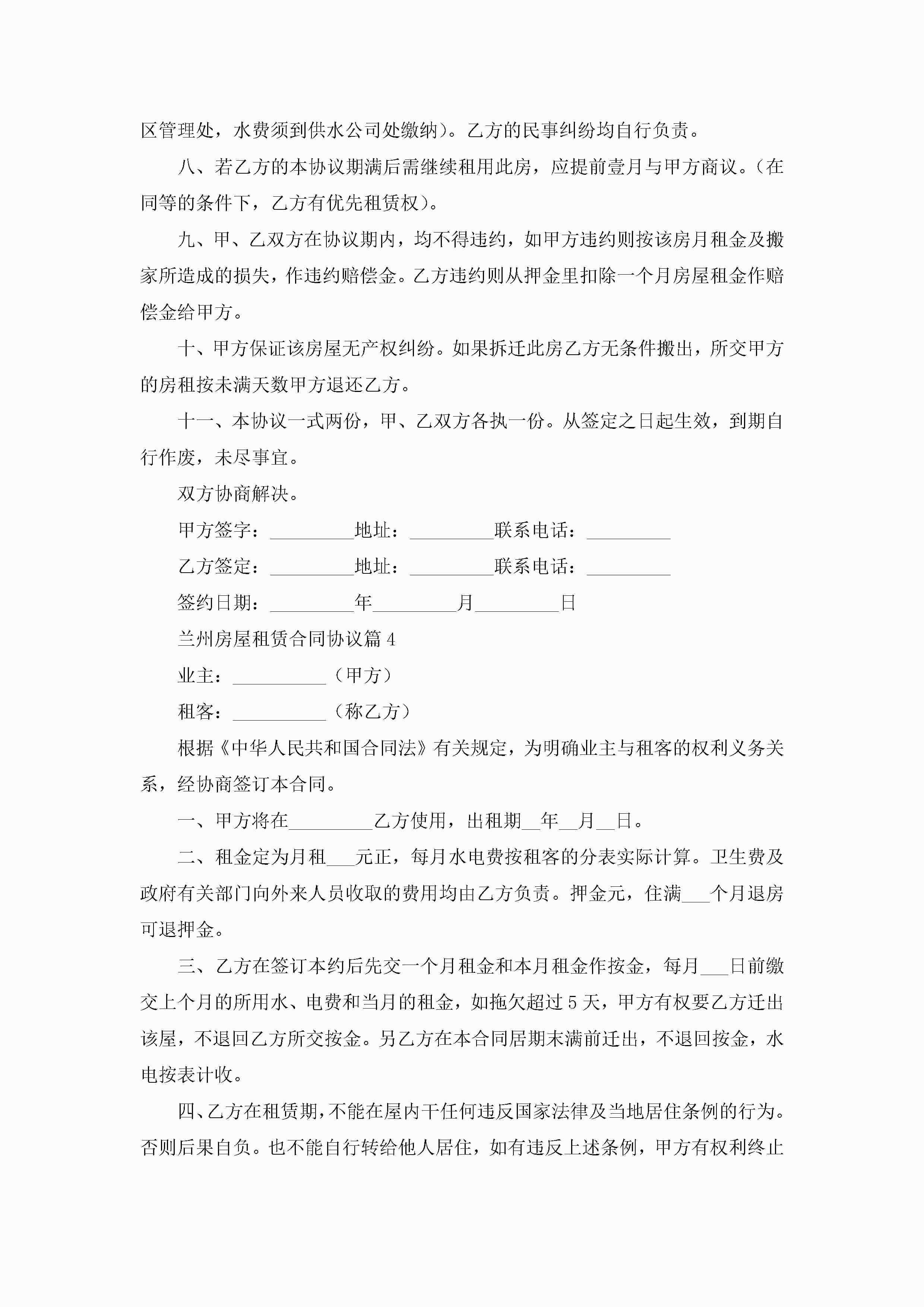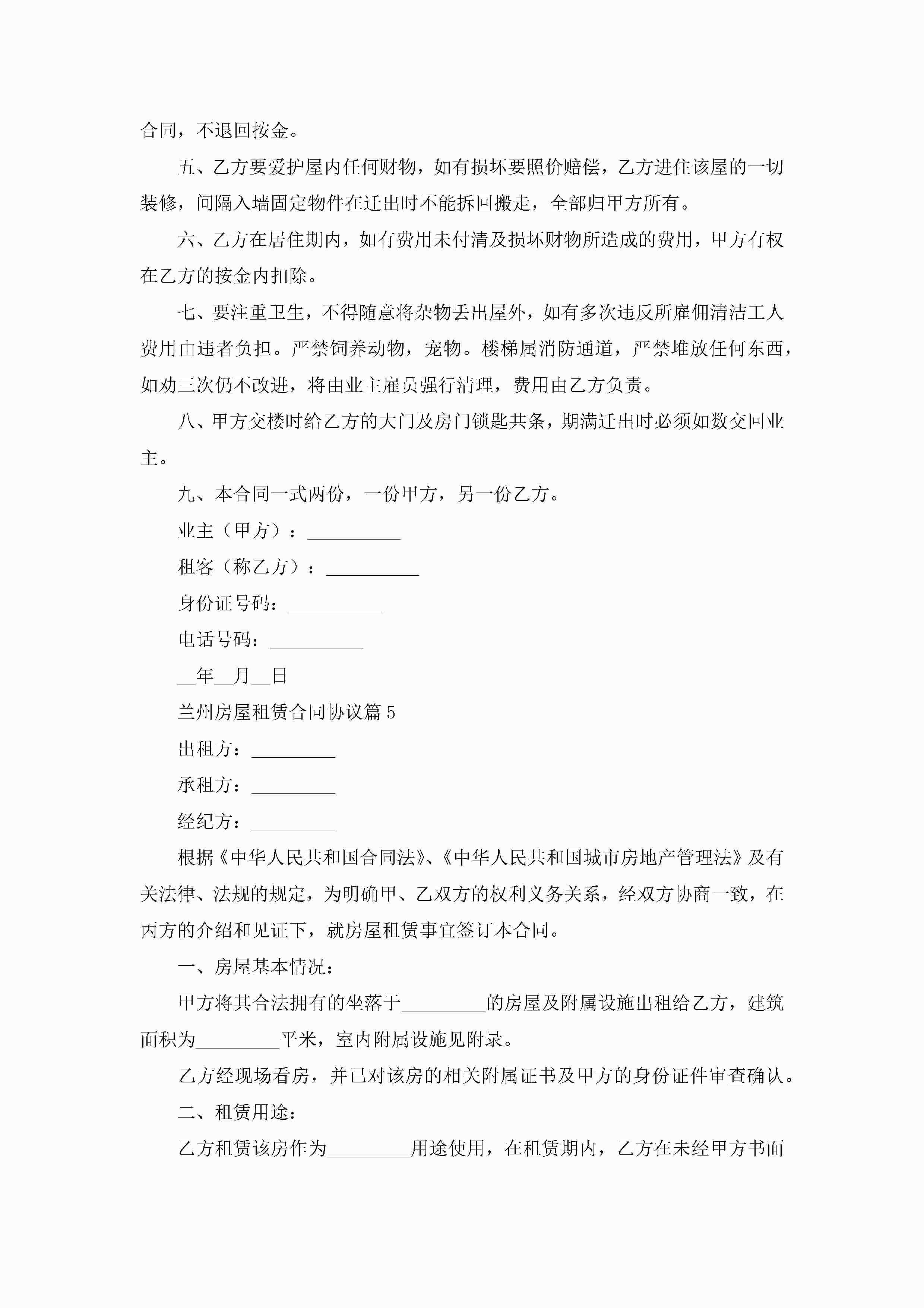 兰州房屋租赁合同协议7篇(精选)jugei3月23日 01:43发布关注260 兰州房屋租赁合同协议7篇(精选)此内容为付费资源,请付费后查看¥10.9 单篇文档限时特惠¥15个人会员开通企业会员开通立即下载无需登陆!可直接快捷下载单个模板付费资源© 版权声明THE ENDWord模板# 实用文档# 实用模板# 合同模板# 租赁合同 如有问题,可点击最底部“联系我们”联系客服 分享QQ空间微博QQ好友海报分享复制链接收藏