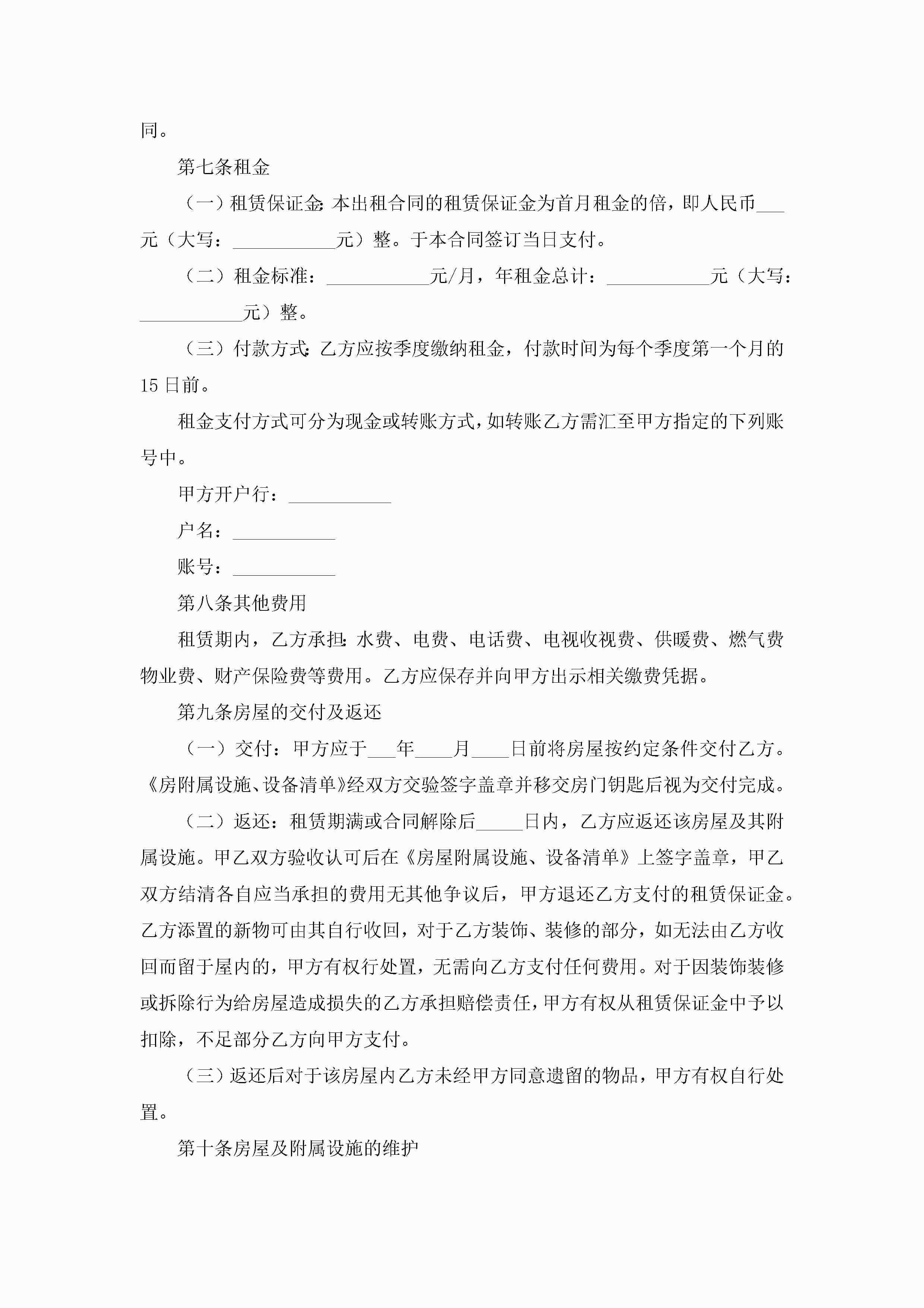 北京房屋租赁合同标准版(精选7篇)jugei3月23日 01:43发布关注184 北京房屋租赁合同标准版(精选7篇)此内容为付费资源,请付费后查看¥10.9 单篇文档限时特惠¥15个人会员开通企业会员开通立即下载无需登陆!可直接快捷下载单个模板付费资源© 版权声明THE ENDWord模板# 实用文档# 实用模板# 合同模板# 租赁合同 如有问题,可点击最底部“联系我们”联系客服 分享QQ空间微博QQ好友海报分享复制链接收藏