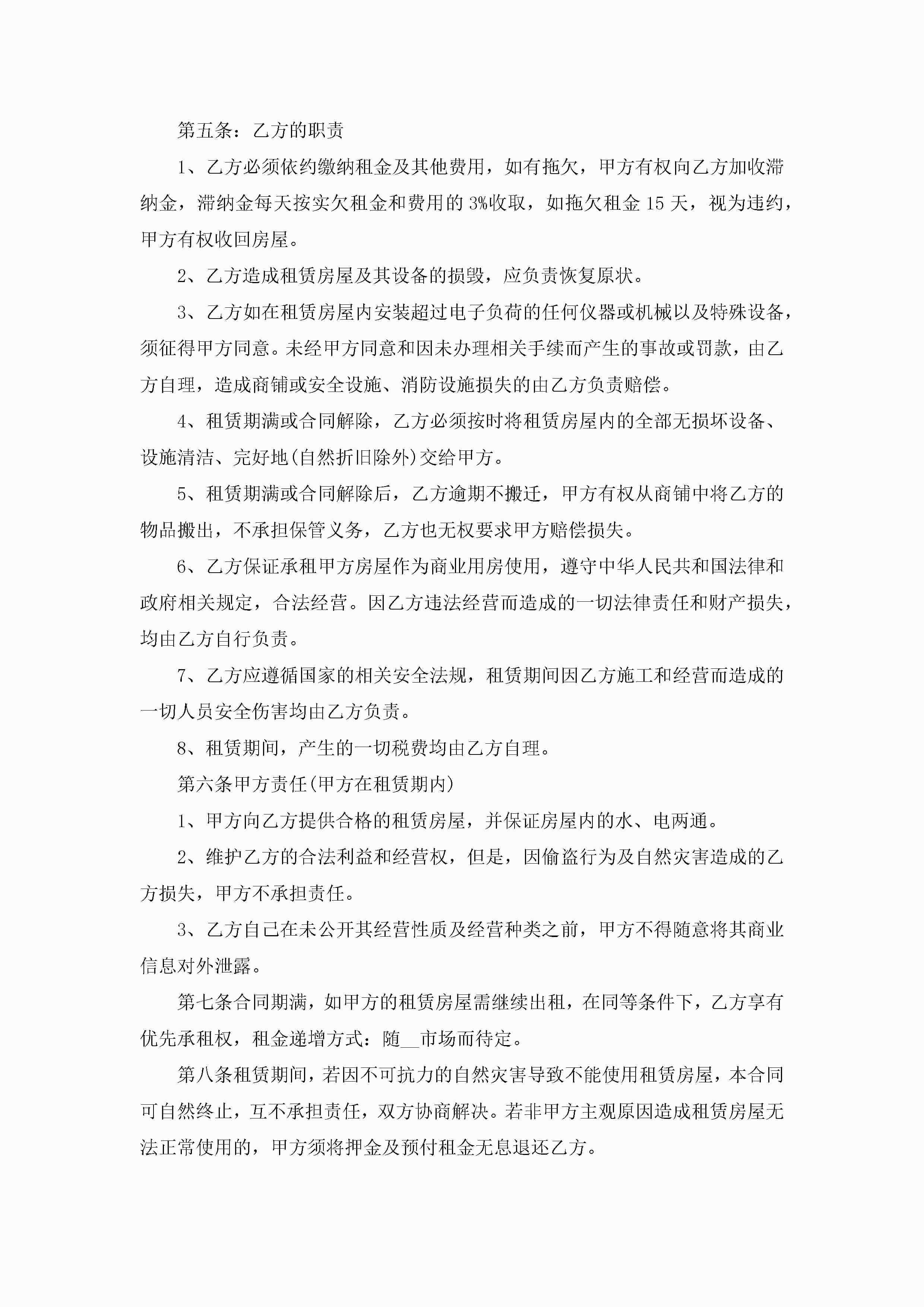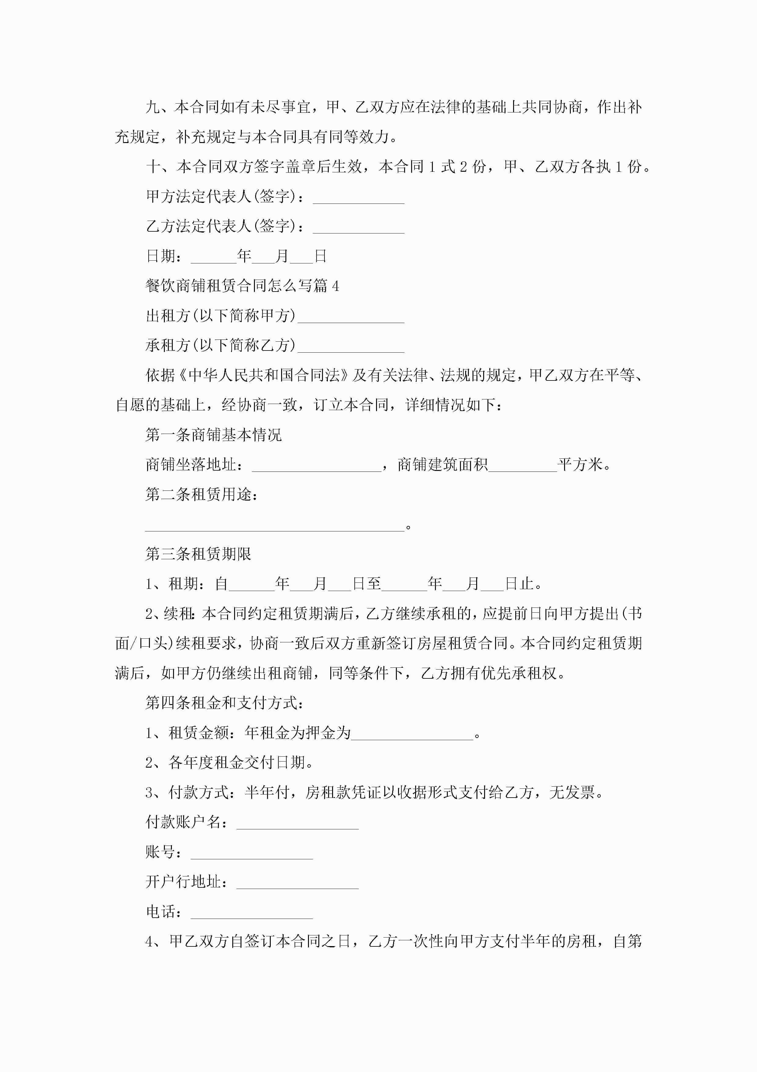 餐饮商铺租赁合同模板怎么写jugei3月23日 01:43发布关注238 餐饮商铺租赁合同模板怎么写此内容为付费资源,请付费后查看¥10.9 单篇文档限时特惠¥15个人会员开通企业会员开通立即下载无需登陆!可直接快捷下载单个模板付费资源© 版权声明THE ENDWord模板# 实用文档# 实用模板# 合同模板# 租赁合同 如有问题,可点击最底部“联系我们”联系客服 分享QQ空间微博QQ好友海报分享复制链接收藏