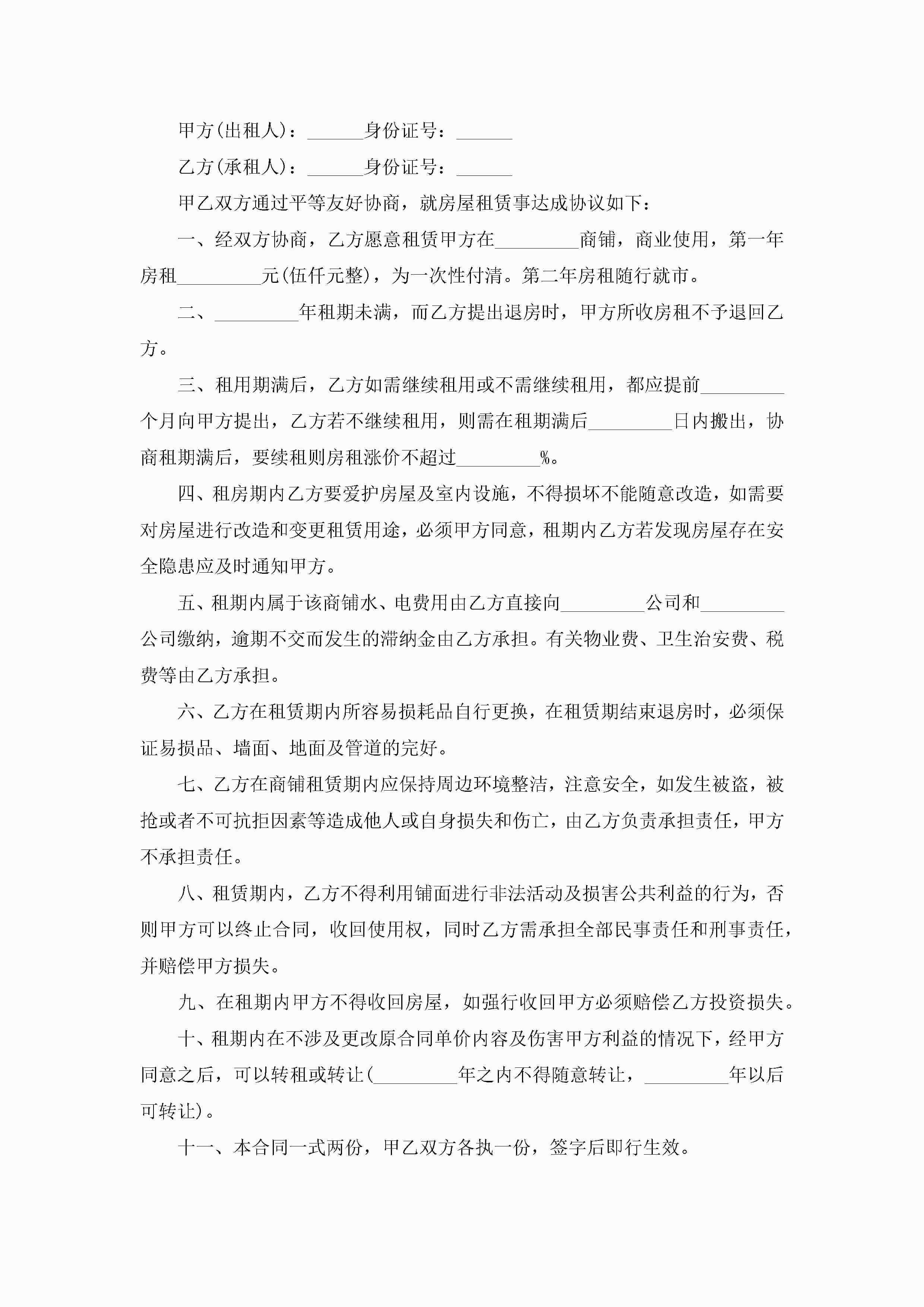 商铺租赁合同协议书模板有哪些jugei3月23日 01:43发布关注186 商铺租赁合同协议书模板有哪些此内容为付费资源,请付费后查看¥10.9 单篇文档限时特惠¥15个人会员开通企业会员开通立即下载无需登陆!可直接快捷下载单个模板付费资源© 版权声明THE ENDWord模板# 实用文档# 实用模板# 合同模板# 租赁合同 如有问题,可点击最底部“联系我们”联系客服 分享QQ空间微博QQ好友海报分享复制链接收藏