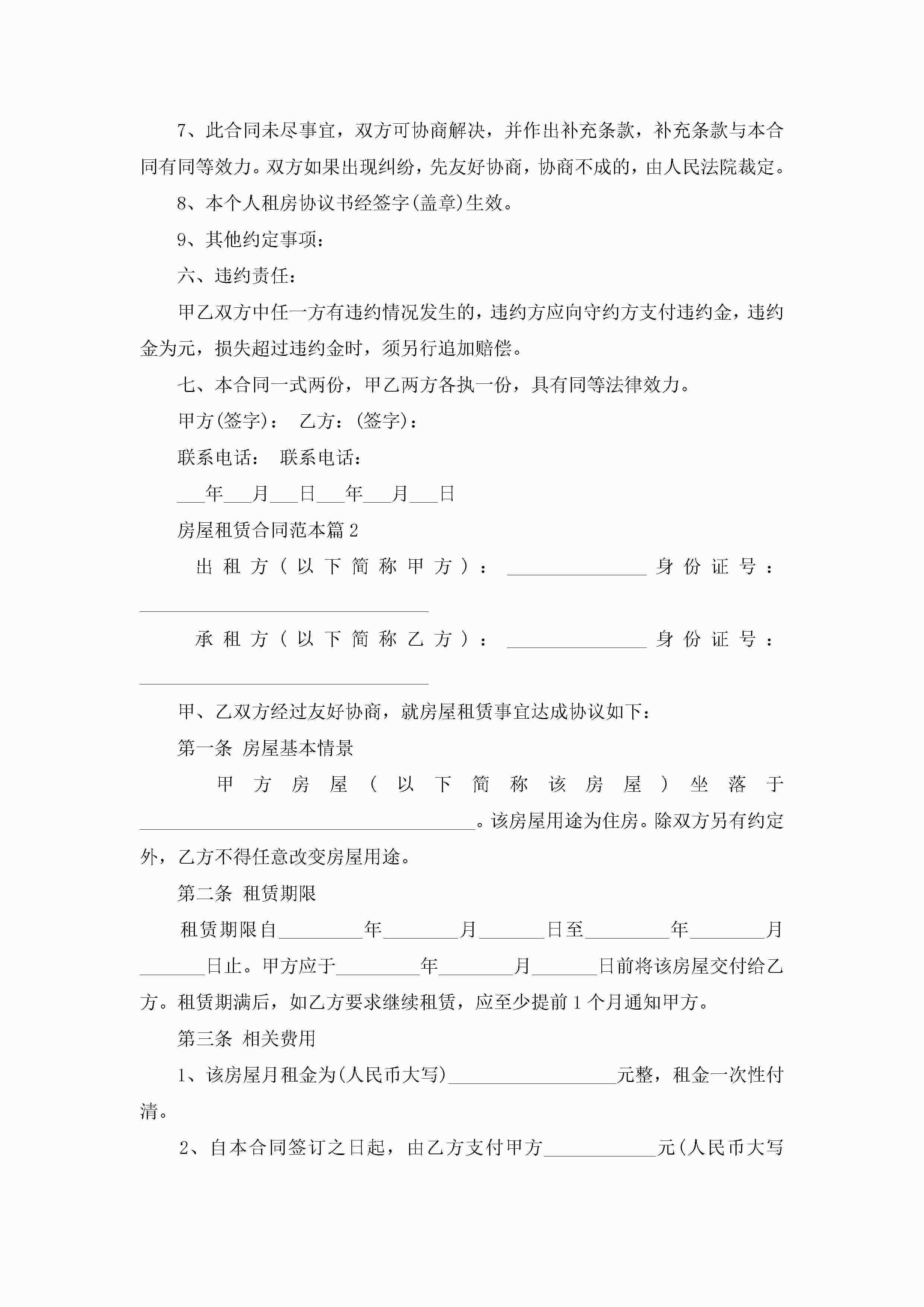 房屋租赁合同范本7篇jugei3月23日 01:43发布关注197 房屋租赁合同范本7篇此内容为付费资源,请付费后查看¥10.9 单篇文档限时特惠¥15个人会员开通企业会员开通立即下载无需登陆!可直接快捷下载单个模板付费资源© 版权声明THE ENDWord模板# 实用文档# 合同模板# 租赁合同# 房屋租赁合同范本 如有问题,可点击最底部“联系我们”联系客服 分享QQ空间微博QQ好友海报分享复制链接收藏