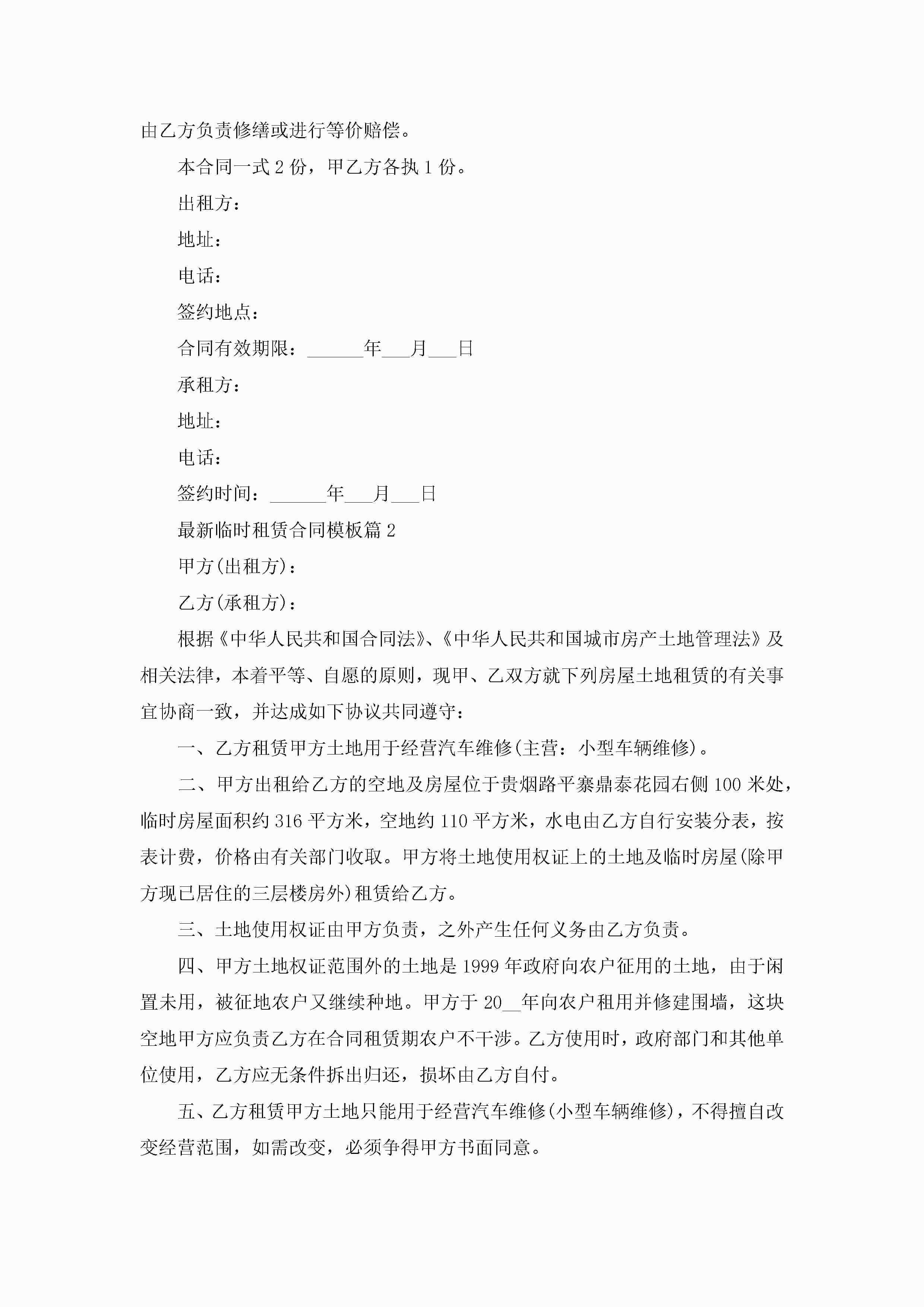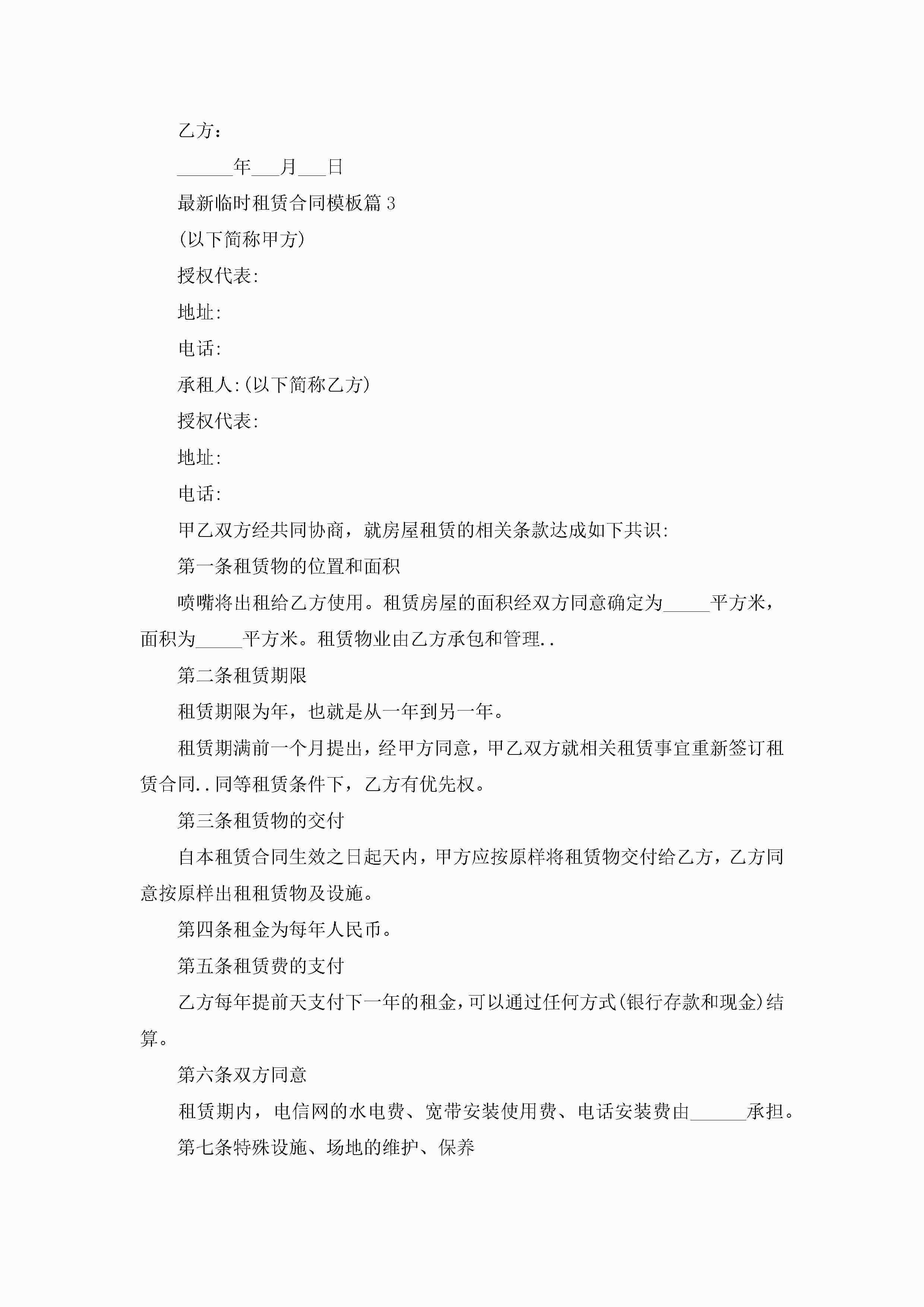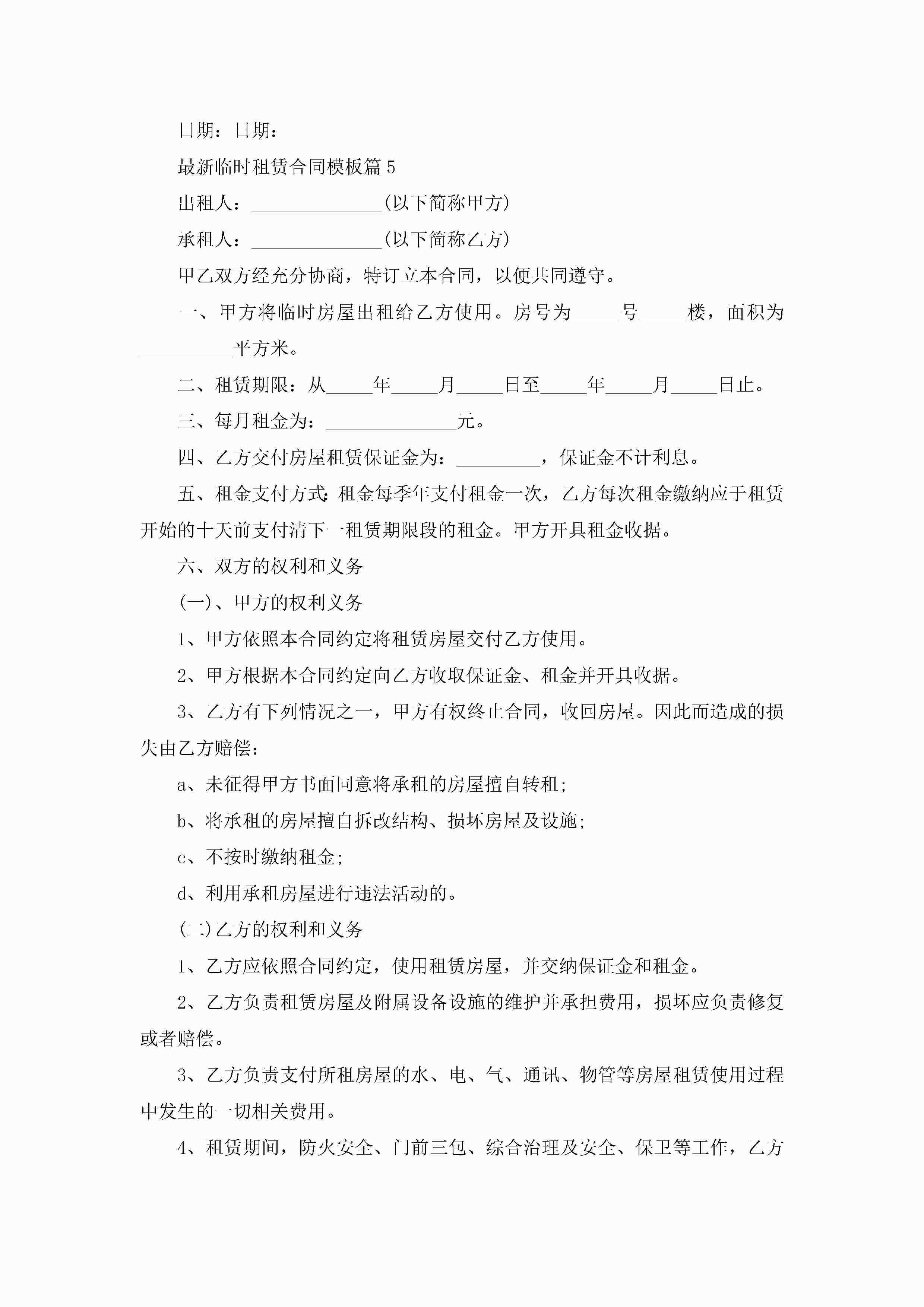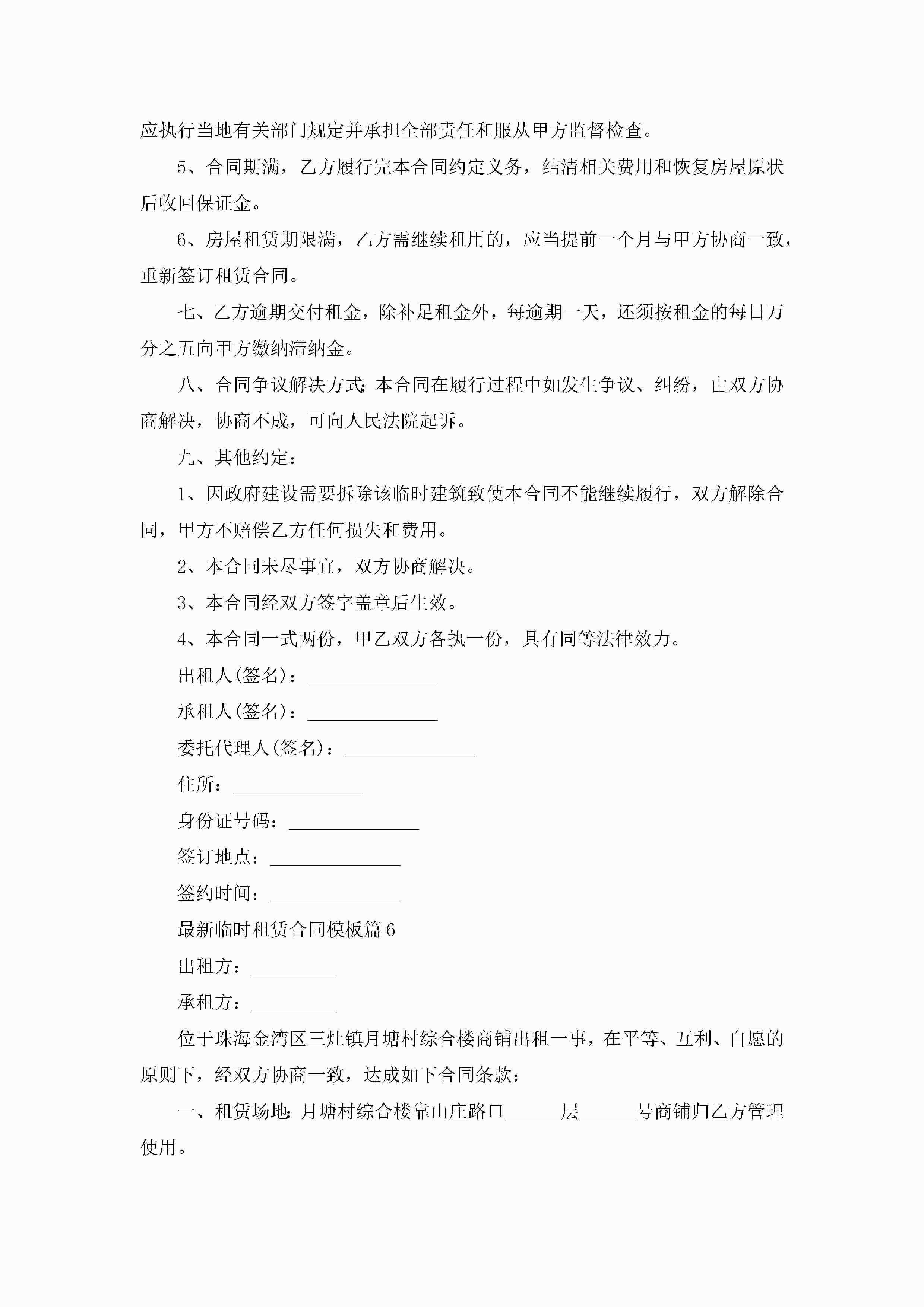 关于最新临时租赁合同模板10篇jugei3月23日 01:43发布关注237 关于最新临时租赁合同模板10篇此内容为付费资源,请付费后查看¥10.9 单篇文档限时特惠¥15个人会员开通企业会员开通立即下载无需登陆!可直接快捷下载单个模板付费资源© 版权声明THE ENDWord模板# 实用文档# 合同模板# 租赁合同# 最新临时租赁合同模板10篇 如有问题,可点击最底部“联系我们”联系客服 分享QQ空间微博QQ好友海报分享复制链接收藏