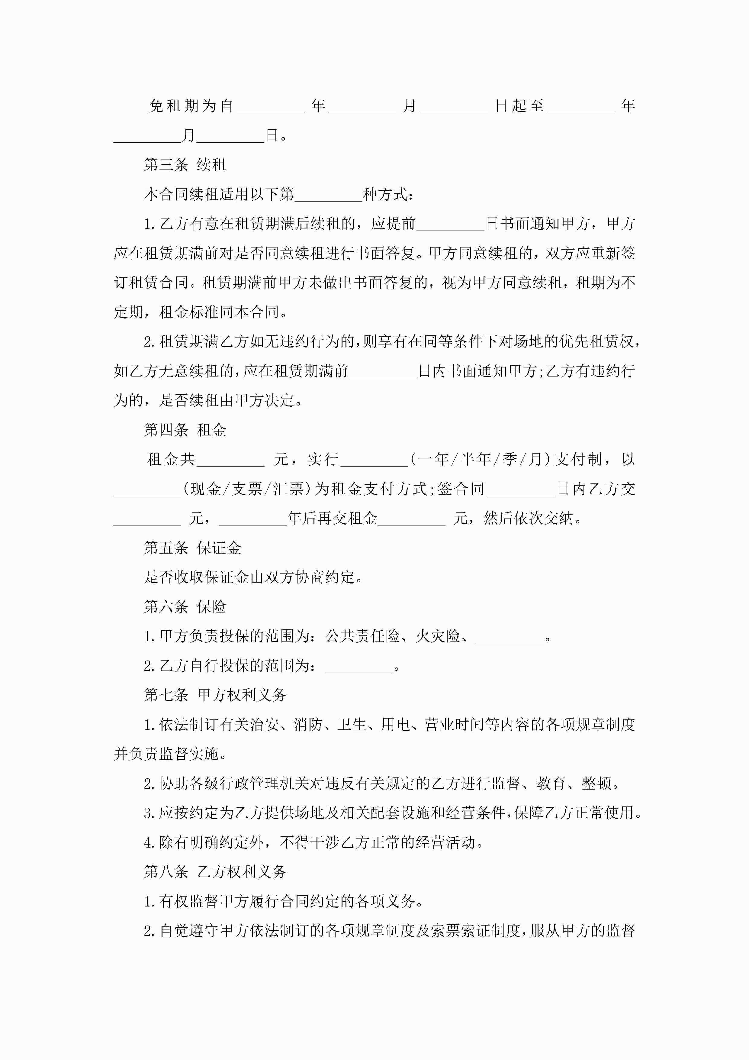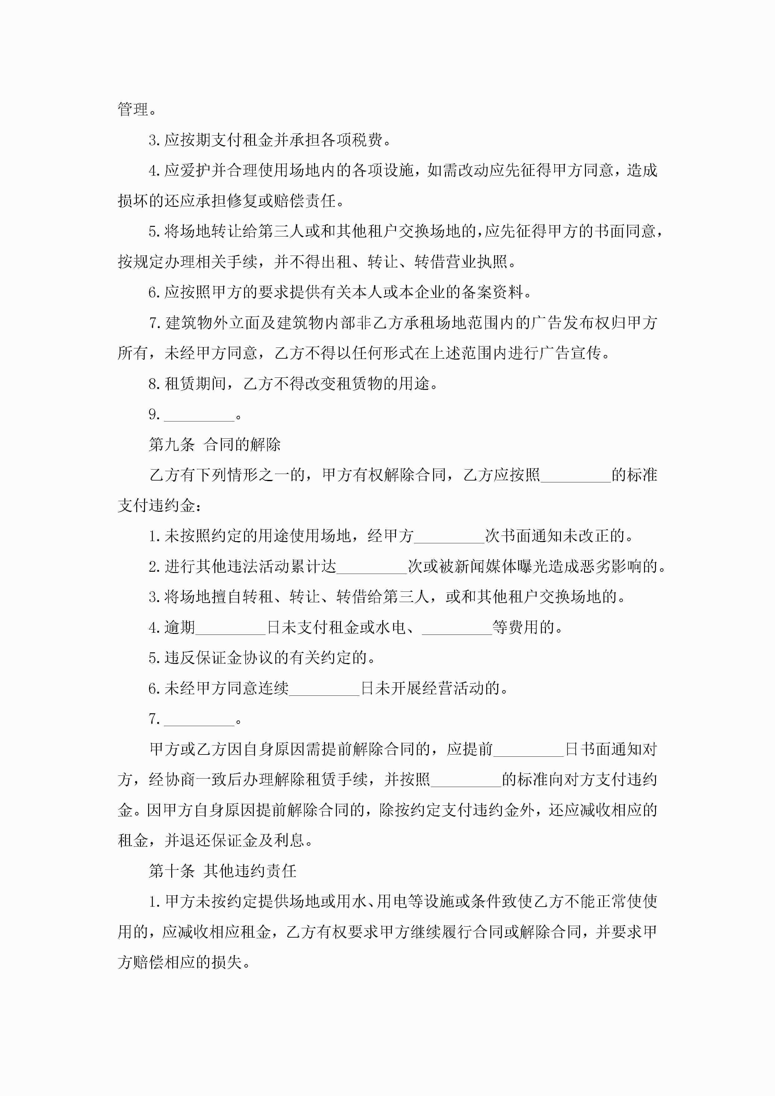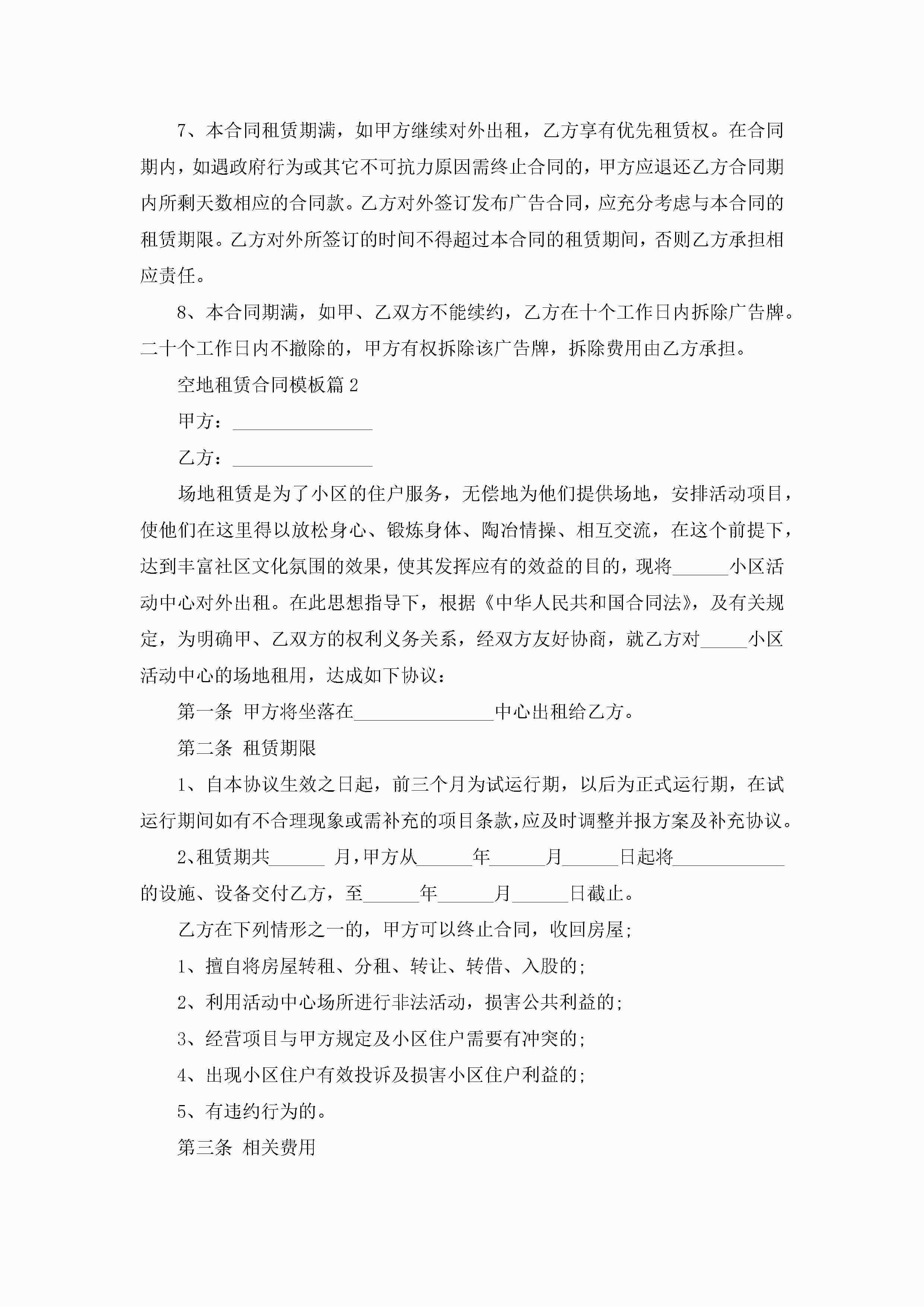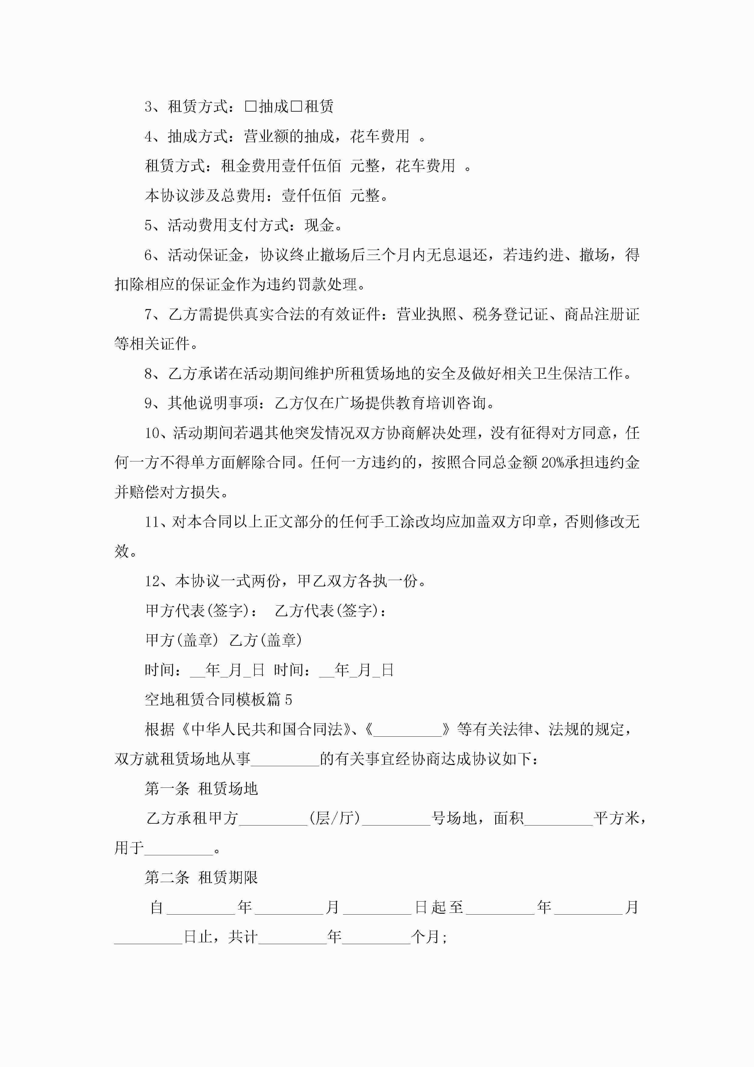 空地租赁合同模板7篇jugei3月23日 01:43发布关注246 空地租赁合同模板7篇此内容为付费资源,请付费后查看¥10.9 单篇文档限时特惠¥15个人会员开通企业会员开通立即下载无需登陆!可直接快捷下载单个模板付费资源© 版权声明THE ENDWord模板# 实用文档# 合同模板# 租赁合同# 空地租赁合同模板 如有问题,可点击最底部“联系我们”联系客服 分享QQ空间微博QQ好友海报分享复制链接收藏