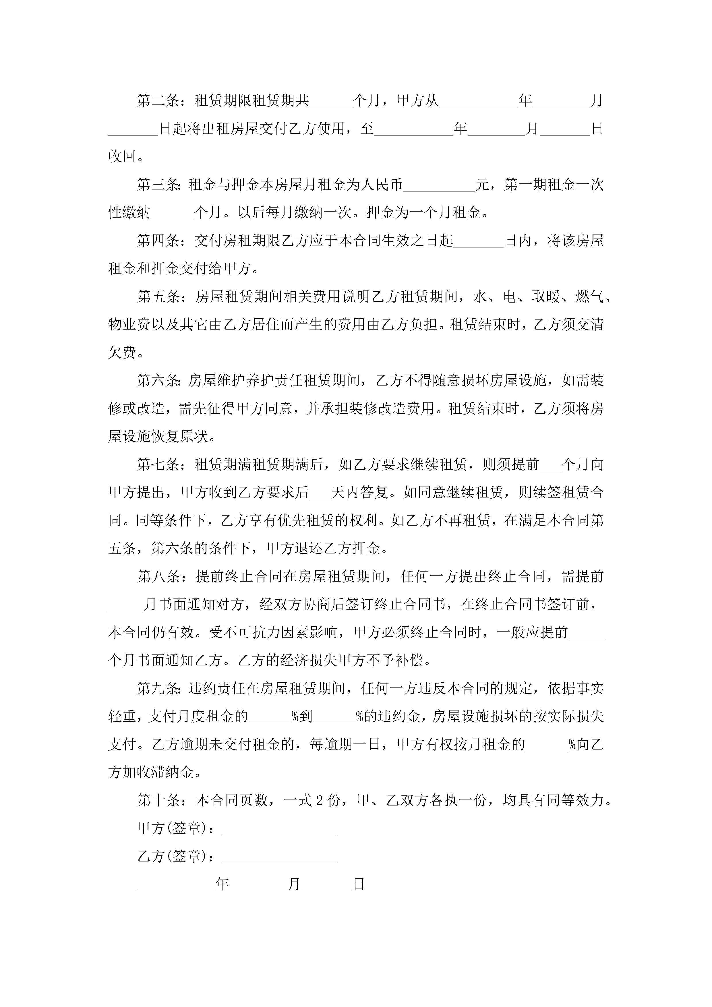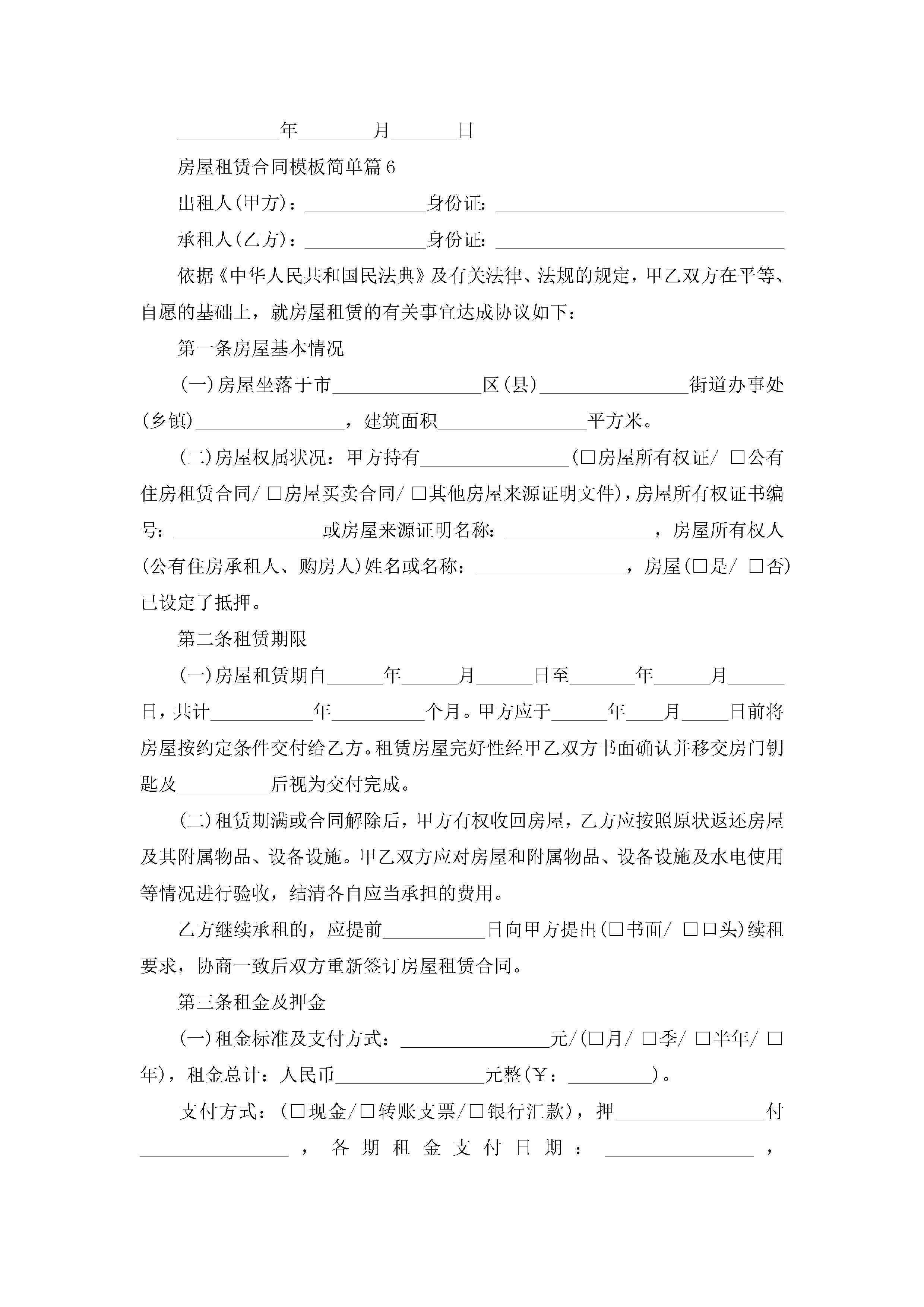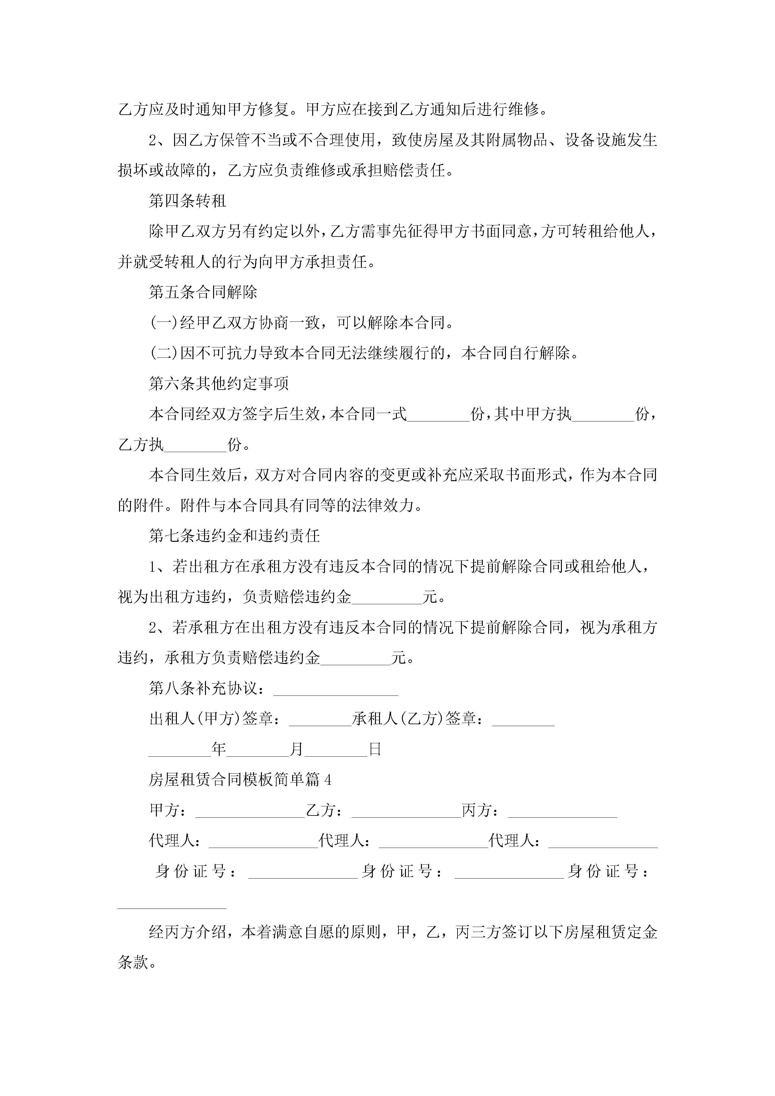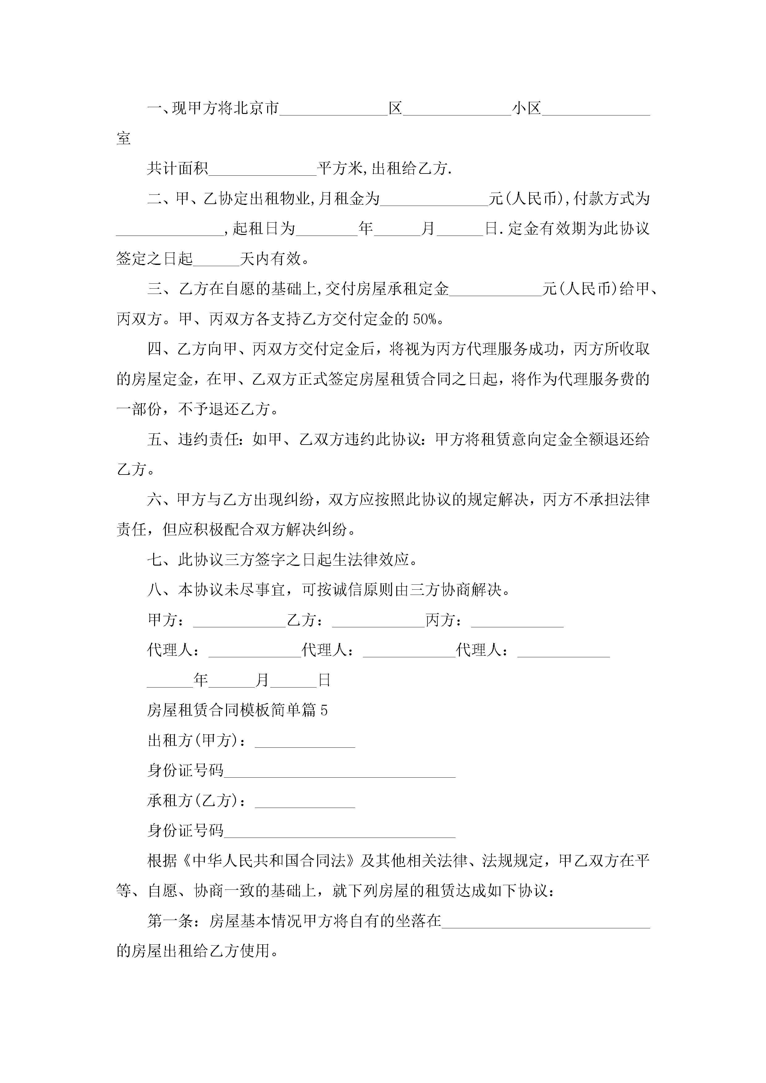 房屋租赁合同模板简单(精选10篇)jugei3月23日 01:43发布关注196 房屋租赁合同模板简单(精选10篇)此内容为付费资源,请付费后查看¥10.9 单篇文档限时特惠¥15个人会员开通企业会员开通立即下载无需登陆!可直接快捷下载单个模板付费资源© 版权声明THE ENDWord模板# 实用文档# 实用模板# 合同模板# 租赁合同 如有问题,可点击最底部“联系我们”联系客服 分享QQ空间微博QQ好友海报分享复制链接收藏