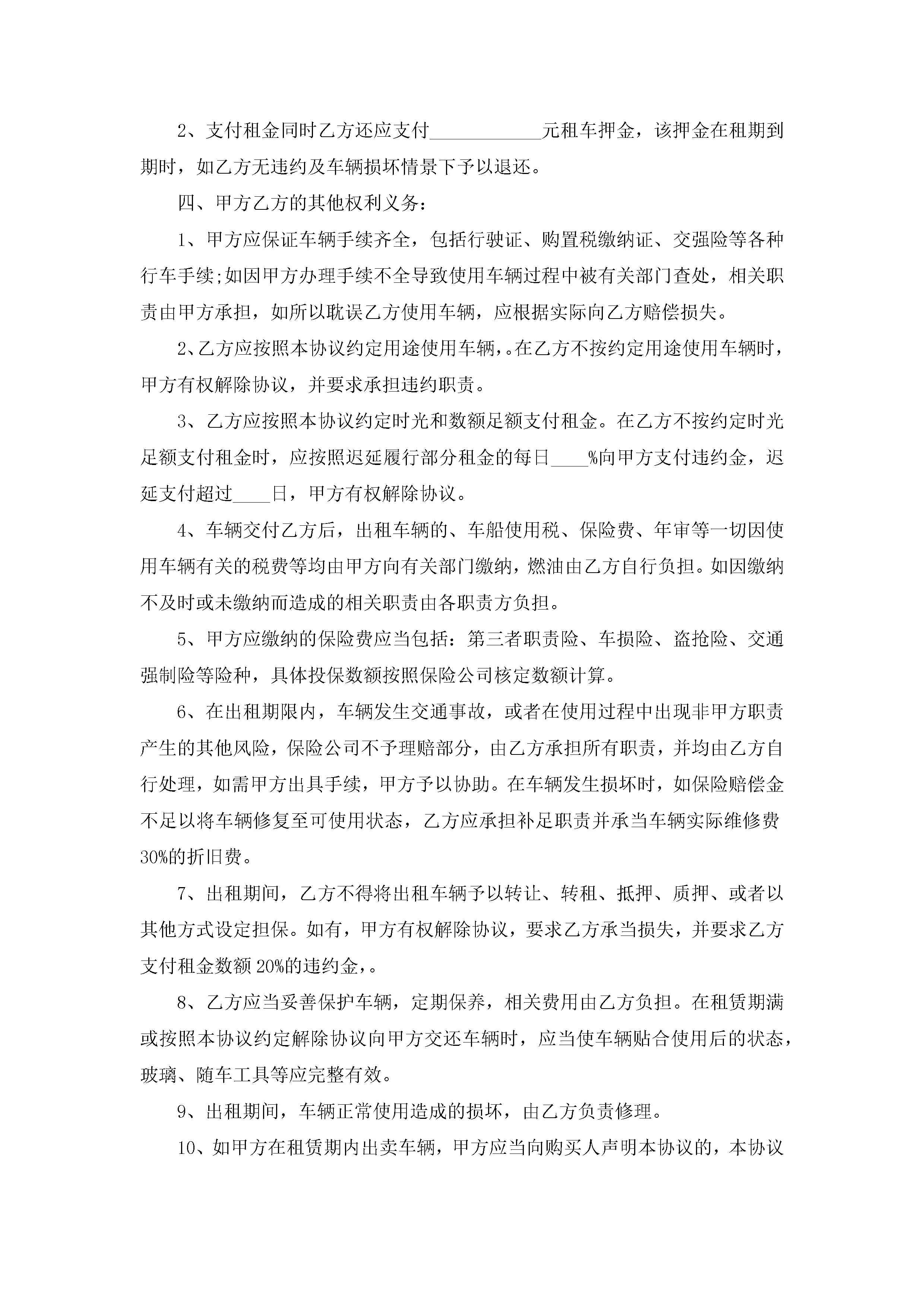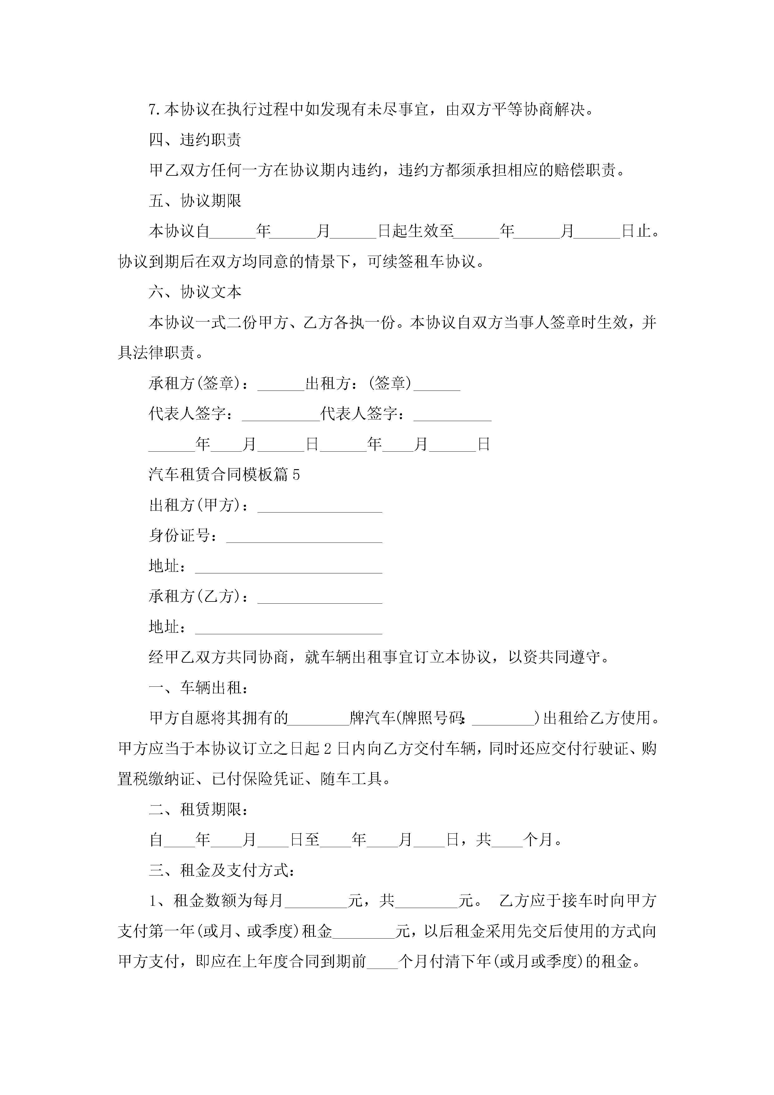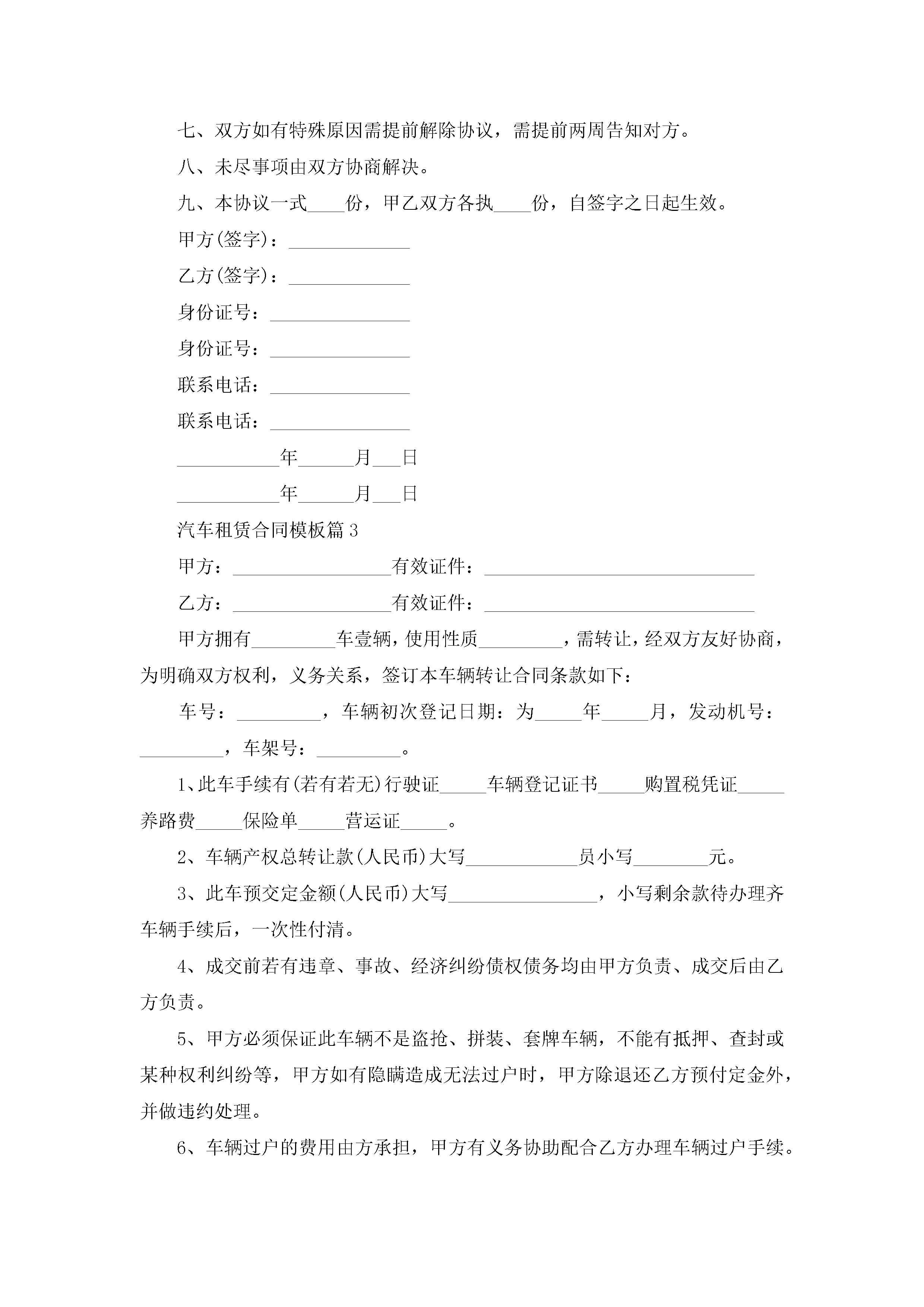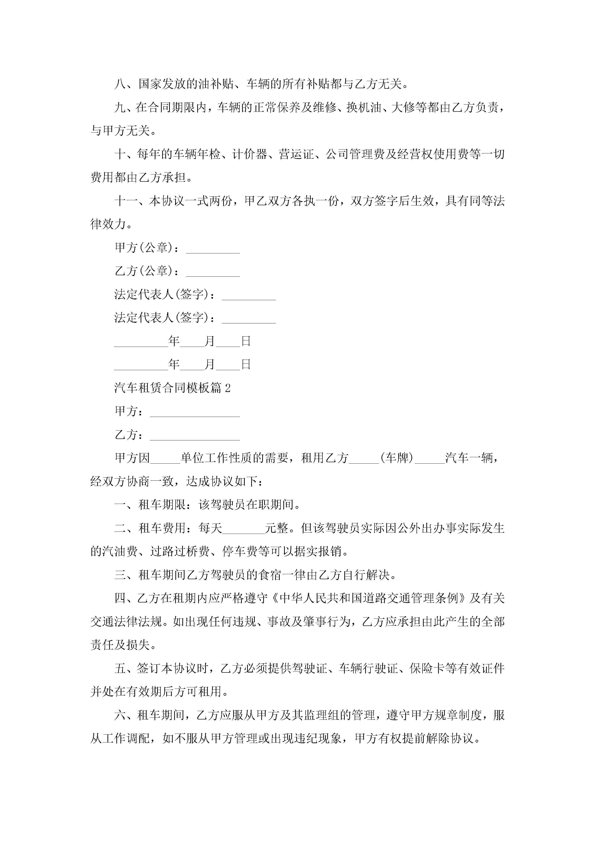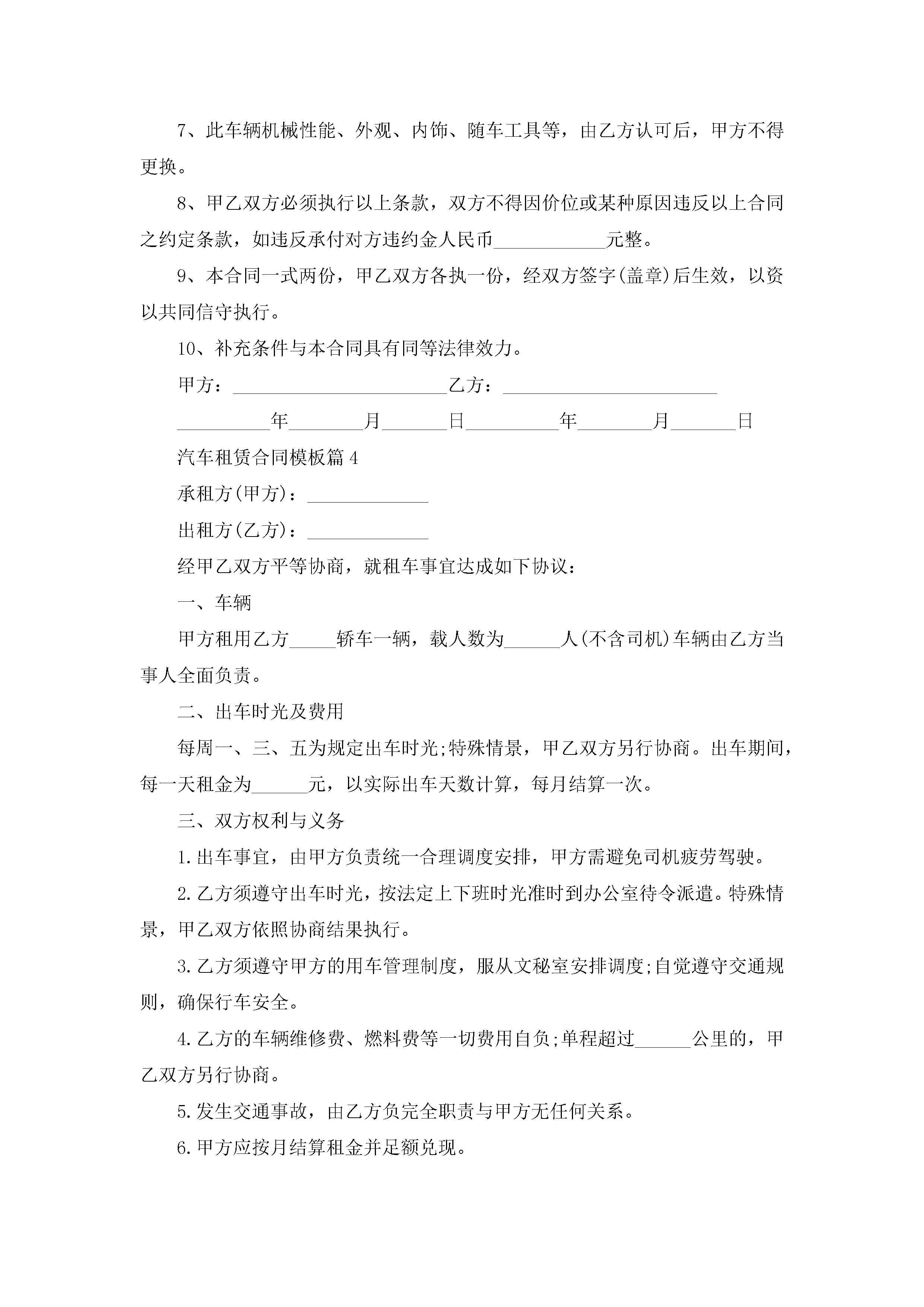 汽车租赁合同模板(精选10篇)jugei3月23日 01:43发布关注249 汽车租赁合同模板(精选10篇)此内容为付费资源,请付费后查看¥10.9 单篇文档限时特惠¥15个人会员开通企业会员开通立即下载无需登陆!可直接快捷下载单个模板付费资源© 版权声明THE ENDWord模板# 实用文档# 实用模板# 合同模板# 租赁合同 如有问题,可点击最底部“联系我们”联系客服 分享QQ空间微博QQ好友海报分享复制链接收藏