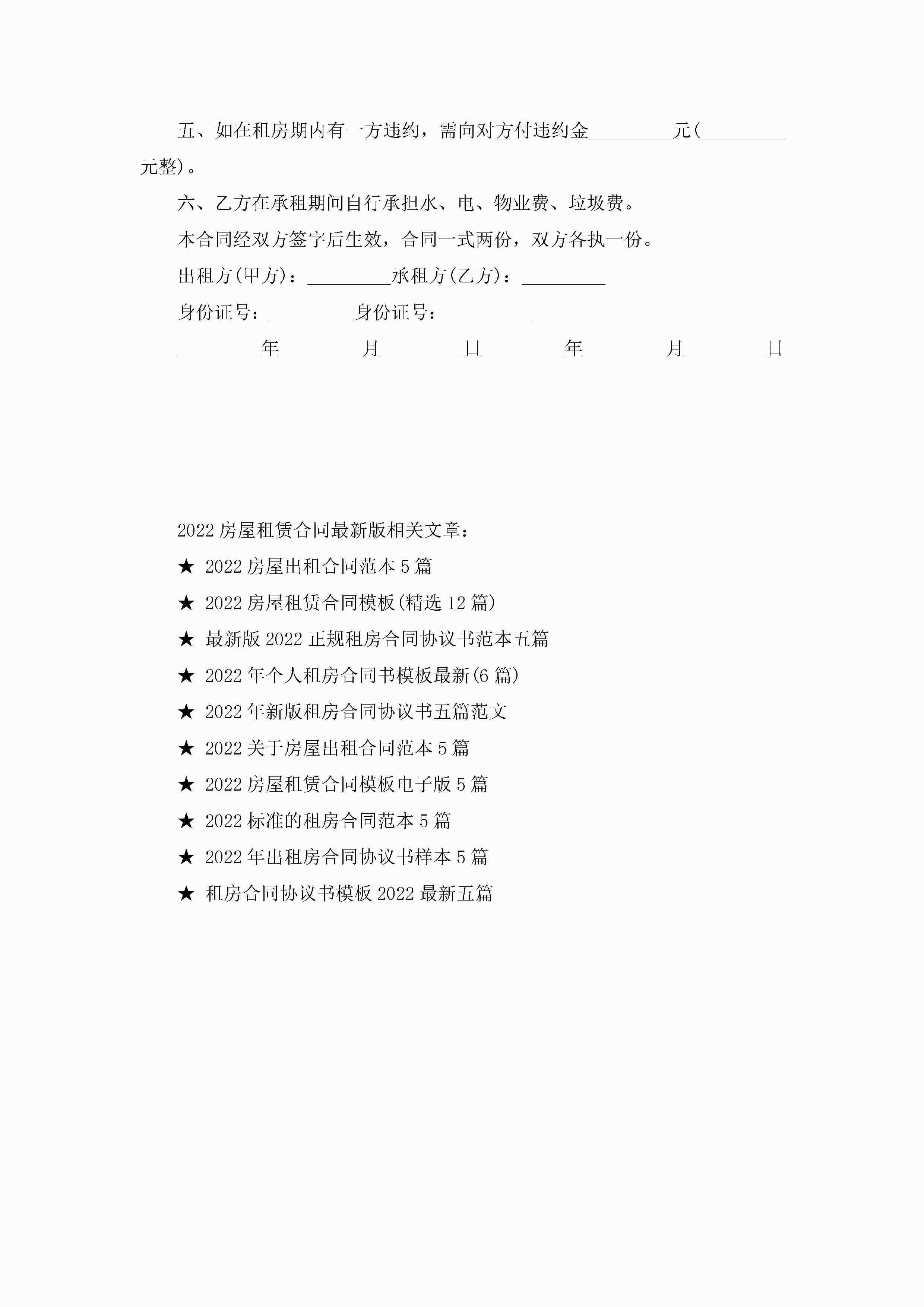 2022房屋租赁合同最新范文版jugei3月23日 01:43发布关注186 2022房屋租赁合同最新范文版此内容为付费资源,请付费后查看¥10.9 单篇文档限时特惠¥15个人会员开通企业会员开通立即下载无需登陆!可直接快捷下载单个模板付费资源© 版权声明THE ENDWord模板# 实用文档# 实用模板# 合同模板# 租赁合同 如有问题,可点击最底部“联系我们”联系客服 分享QQ空间微博QQ好友海报分享复制链接收藏