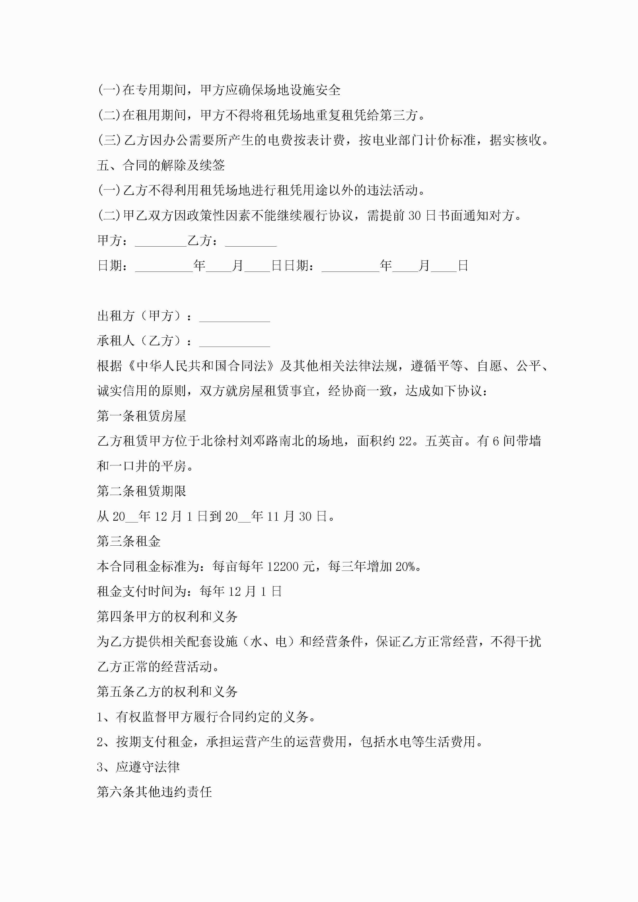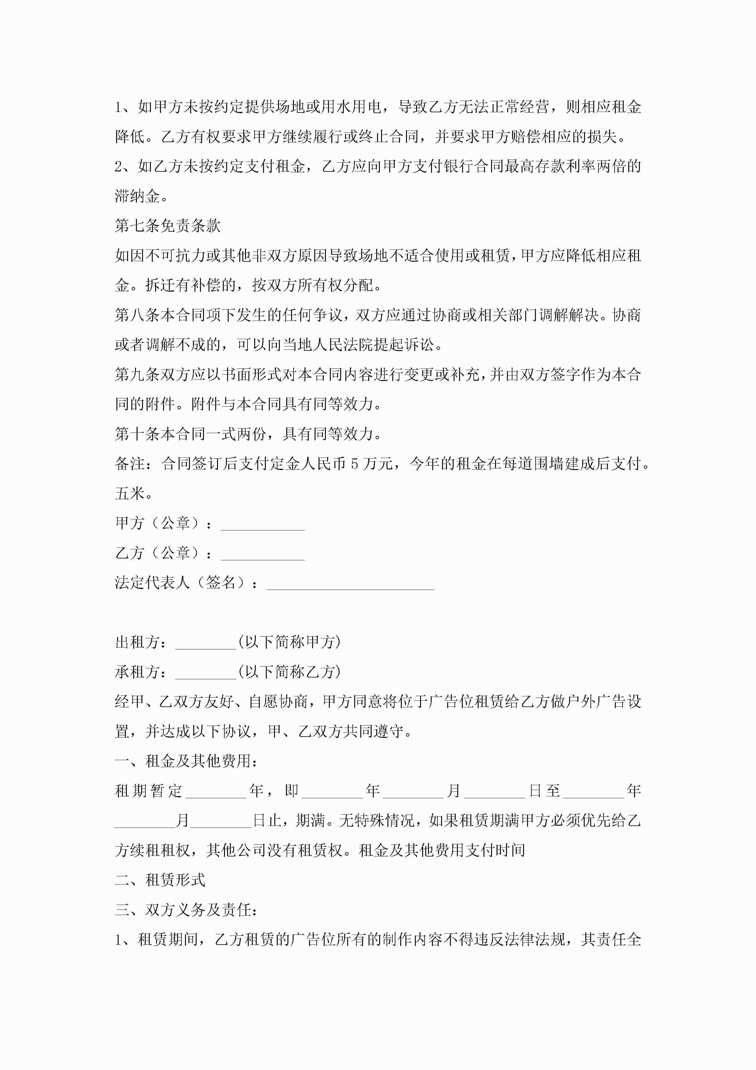 场地出租合同范本【7篇】jugei3月23日 01:43发布关注198 场地出租合同范本【7篇】此内容为付费资源,请付费后查看¥10.9 单篇文档限时特惠¥15个人会员开通企业会员开通立即下载无需登陆!可直接快捷下载单个模板付费资源© 版权声明THE ENDWord模板# 实用文档# 实用模板# 合同模板# 租赁合同 如有问题,可点击最底部“联系我们”联系客服 分享QQ空间微博QQ好友海报分享复制链接收藏