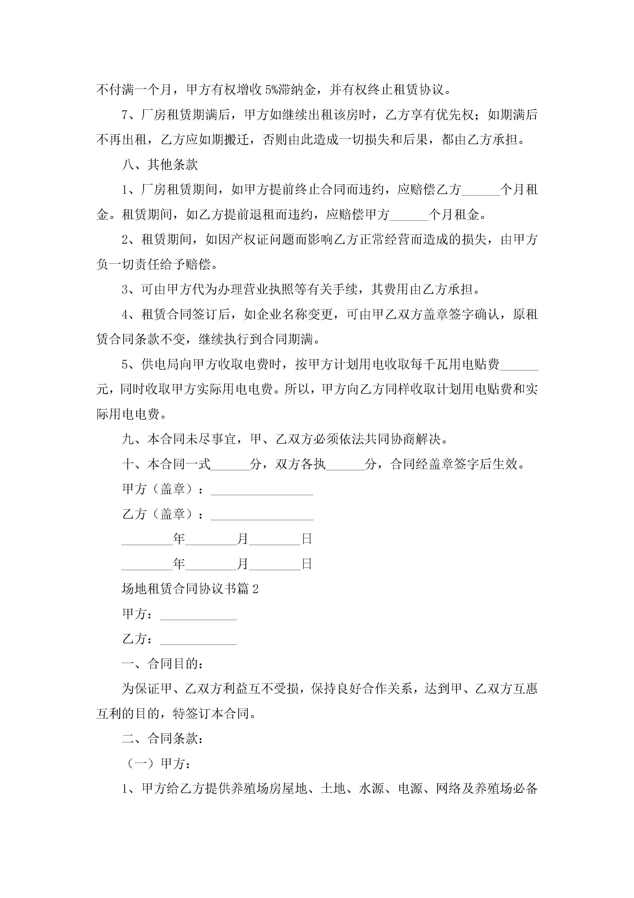 场地租赁合同协议书【7篇】jugei3月23日 01:43发布关注263 场地租赁合同协议书【7篇】此内容为付费资源,请付费后查看¥10.9 单篇文档限时特惠¥15个人会员开通企业会员开通立即下载无需登陆!可直接快捷下载单个模板付费资源© 版权声明THE ENDWord模板# 实用文档# 实用模板# 合同模板# 租赁合同 如有问题,可点击最底部“联系我们”联系客服 分享QQ空间微博QQ好友海报分享复制链接收藏