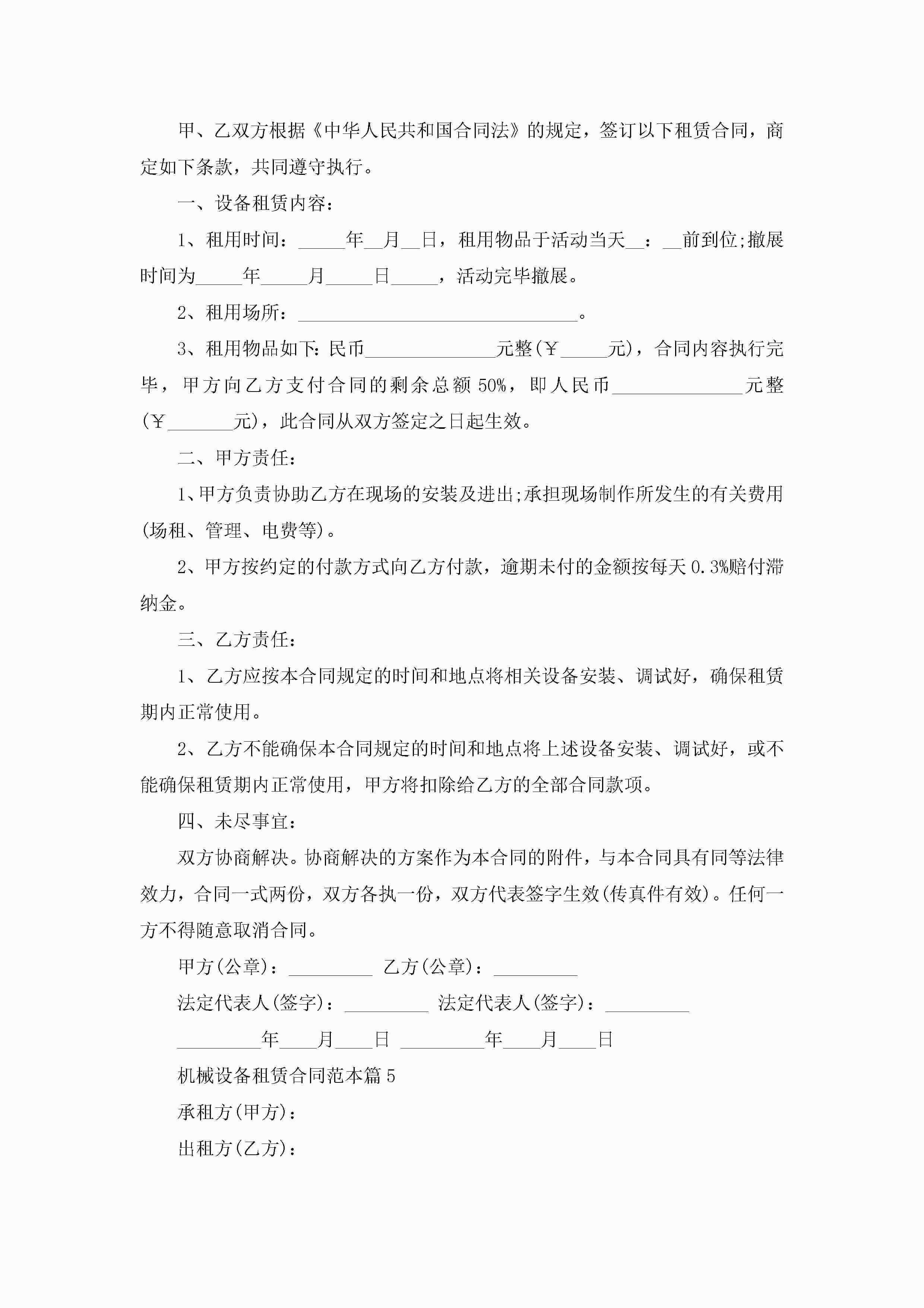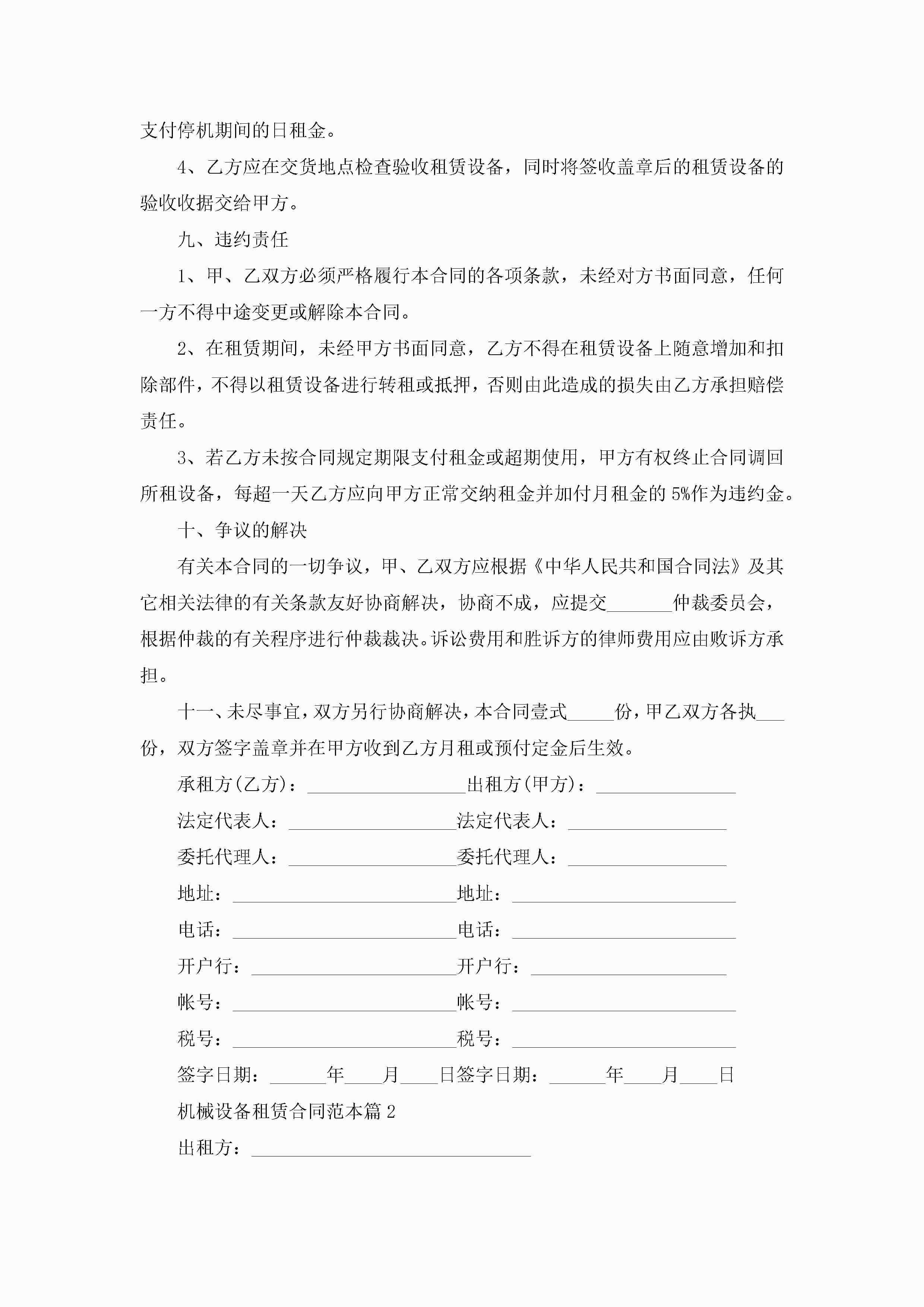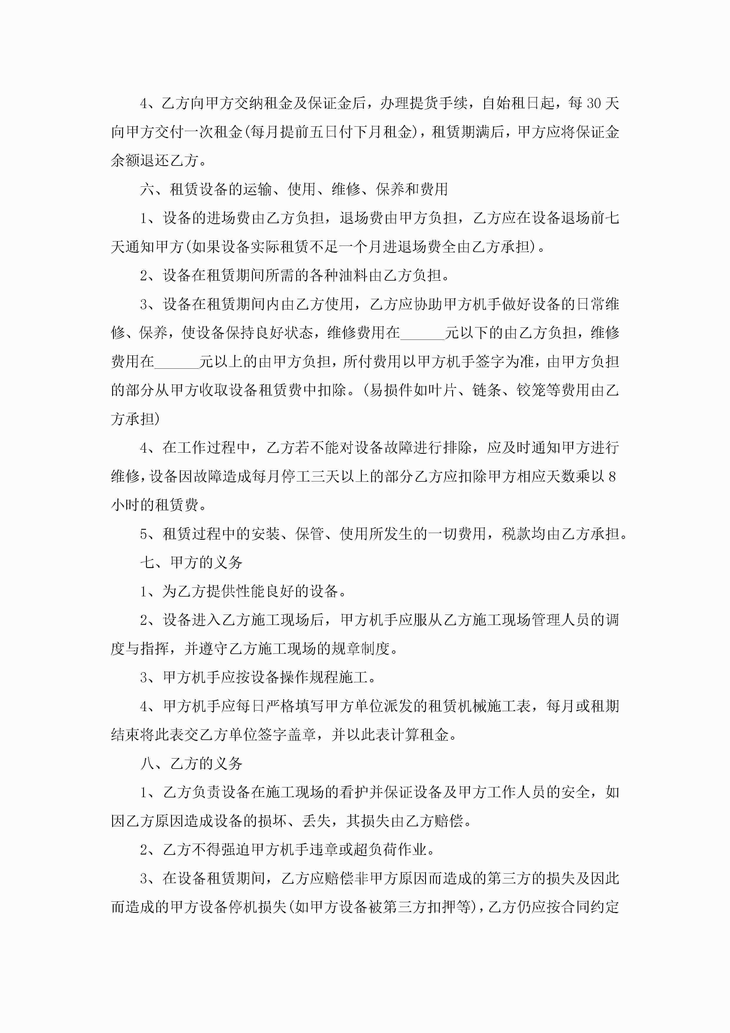 机械设备租赁合同范本【7篇】jugei3月23日 01:43发布关注187 机械设备租赁合同范本【7篇】此内容为付费资源,请付费后查看¥10.9 单篇文档限时特惠¥15个人会员开通企业会员开通立即下载无需登陆!可直接快捷下载单个模板付费资源© 版权声明THE ENDWord模板# 实用文档# 实用模板# 合同模板# 租赁合同 如有问题,可点击最底部“联系我们”联系客服 分享QQ空间微博QQ好友海报分享复制链接收藏