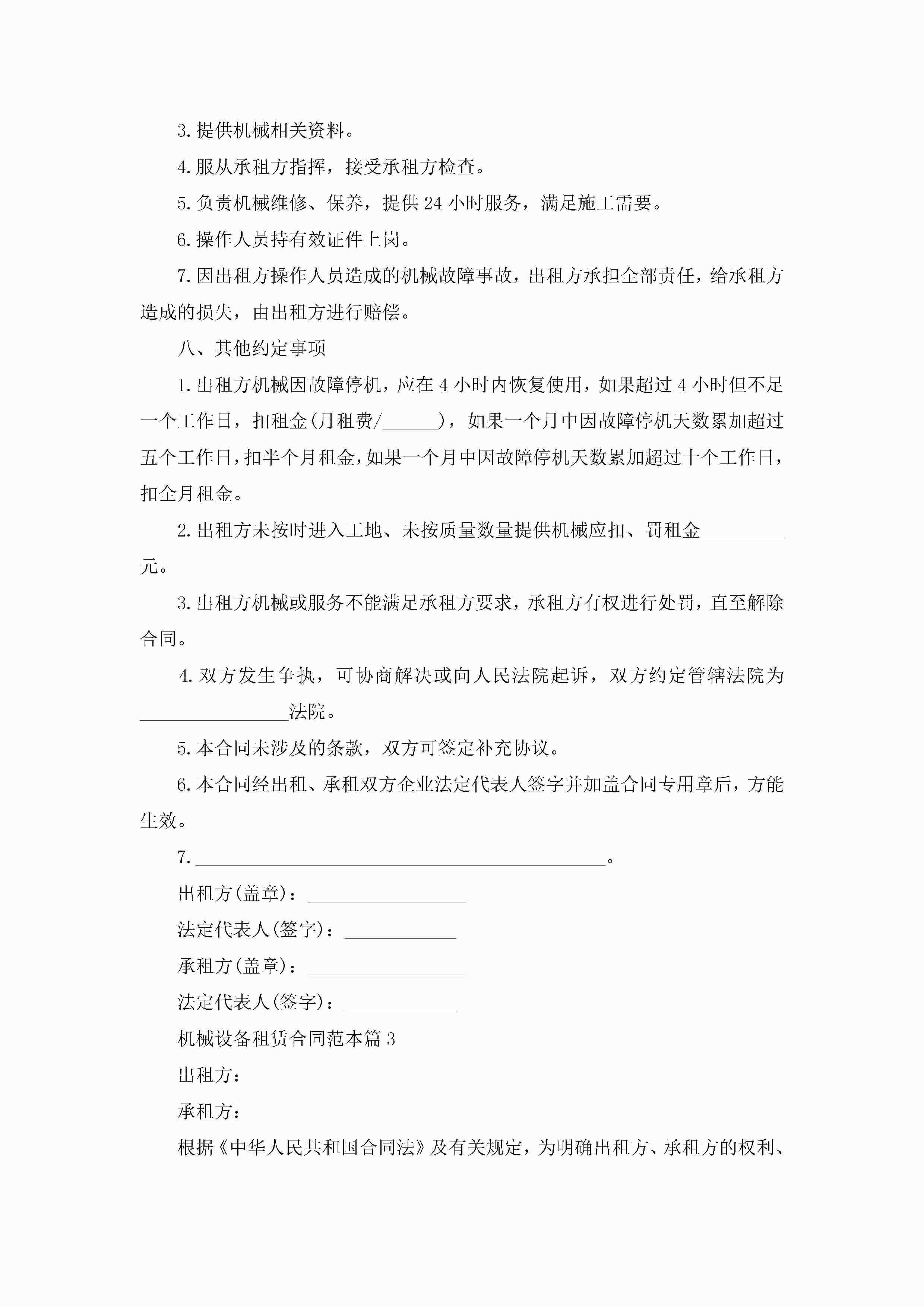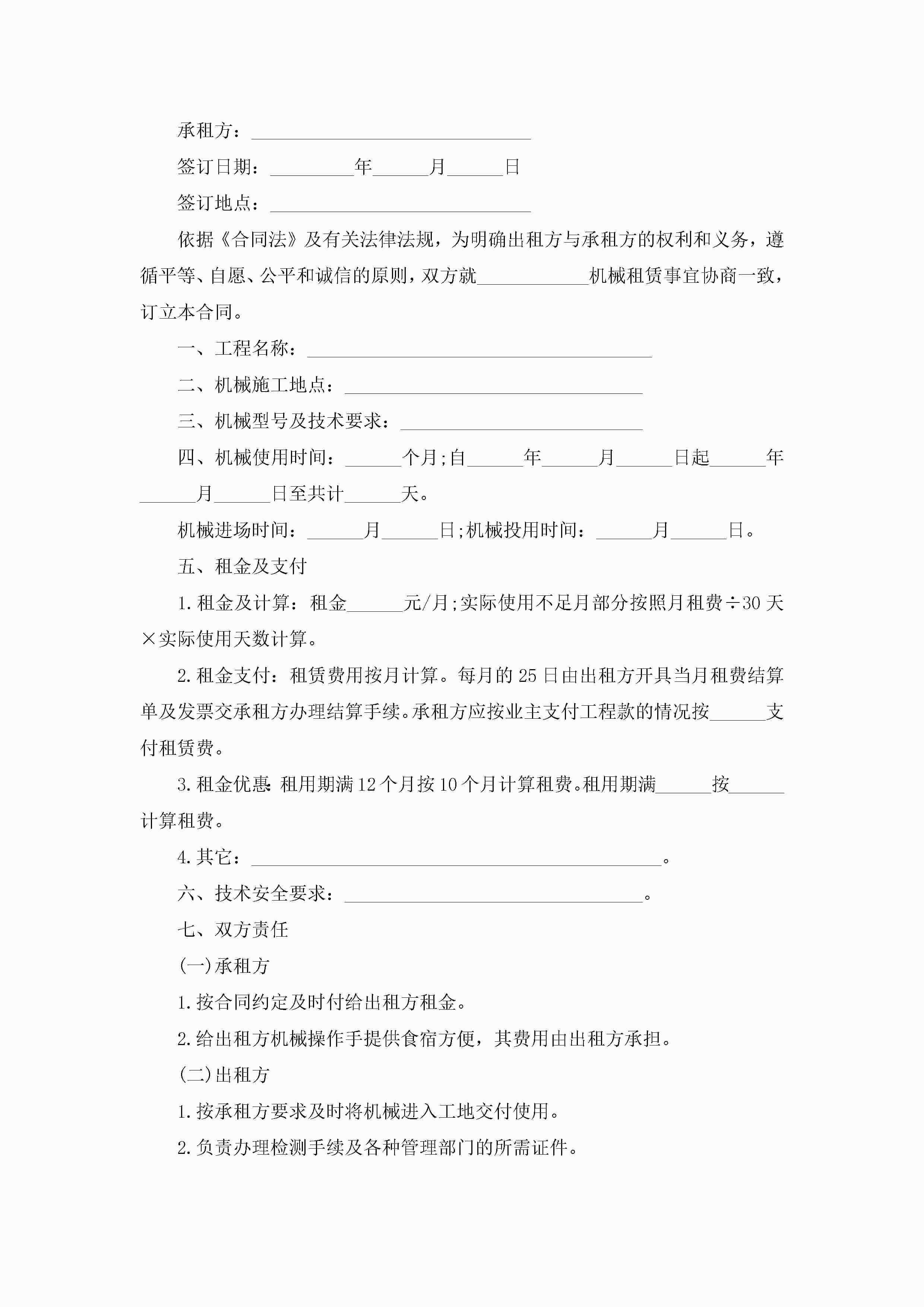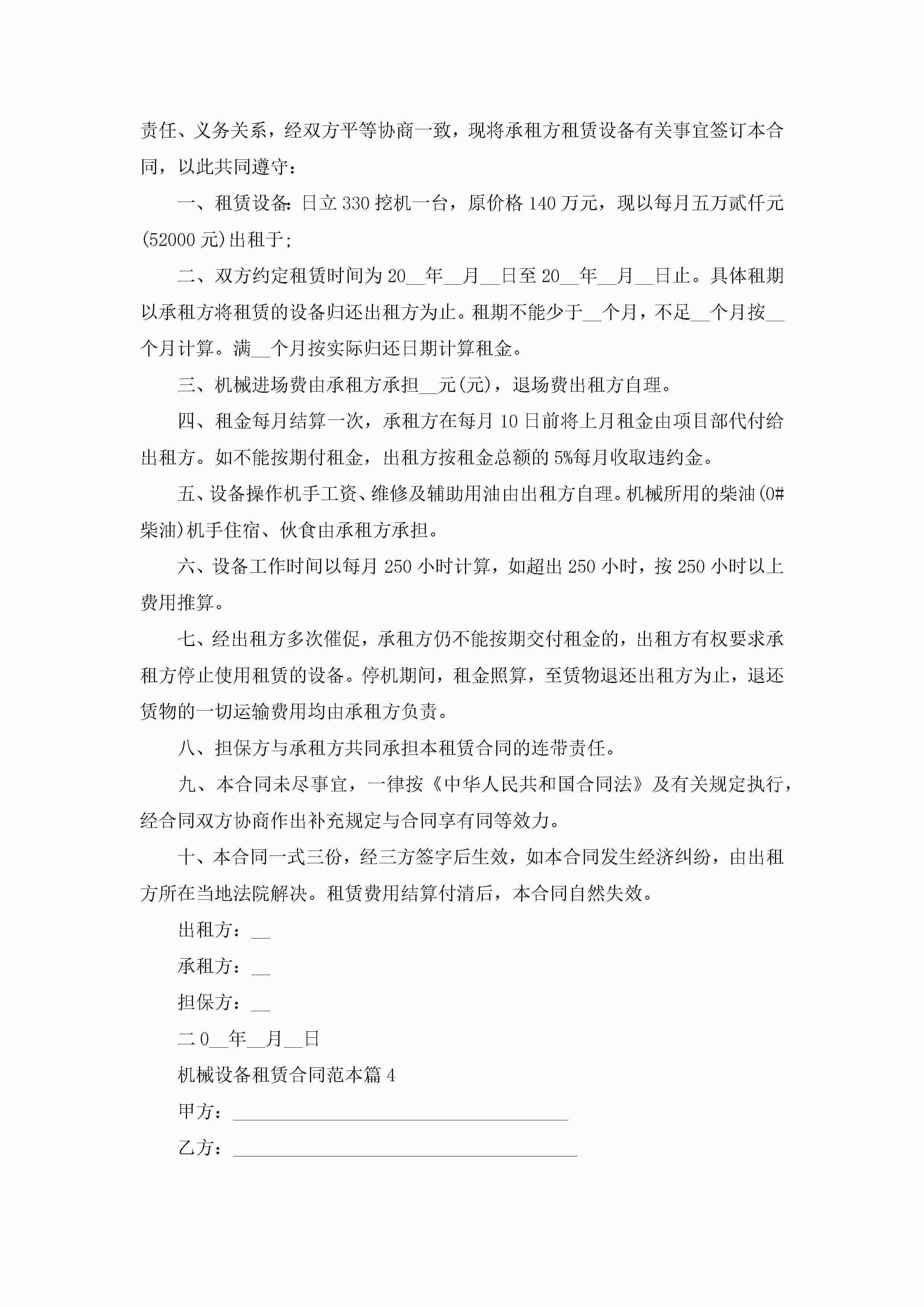 机械设备租赁合同范本【7篇】jugei3月23日 01:43发布关注187 机械设备租赁合同范本【7篇】此内容为付费资源,请付费后查看¥10.9 单篇文档限时特惠¥15个人会员开通企业会员开通立即下载无需登陆!可直接快捷下载单个模板付费资源© 版权声明THE ENDWord模板# 实用文档# 实用模板# 合同模板# 租赁合同 如有问题,可点击最底部“联系我们”联系客服 分享QQ空间微博QQ好友海报分享复制链接收藏