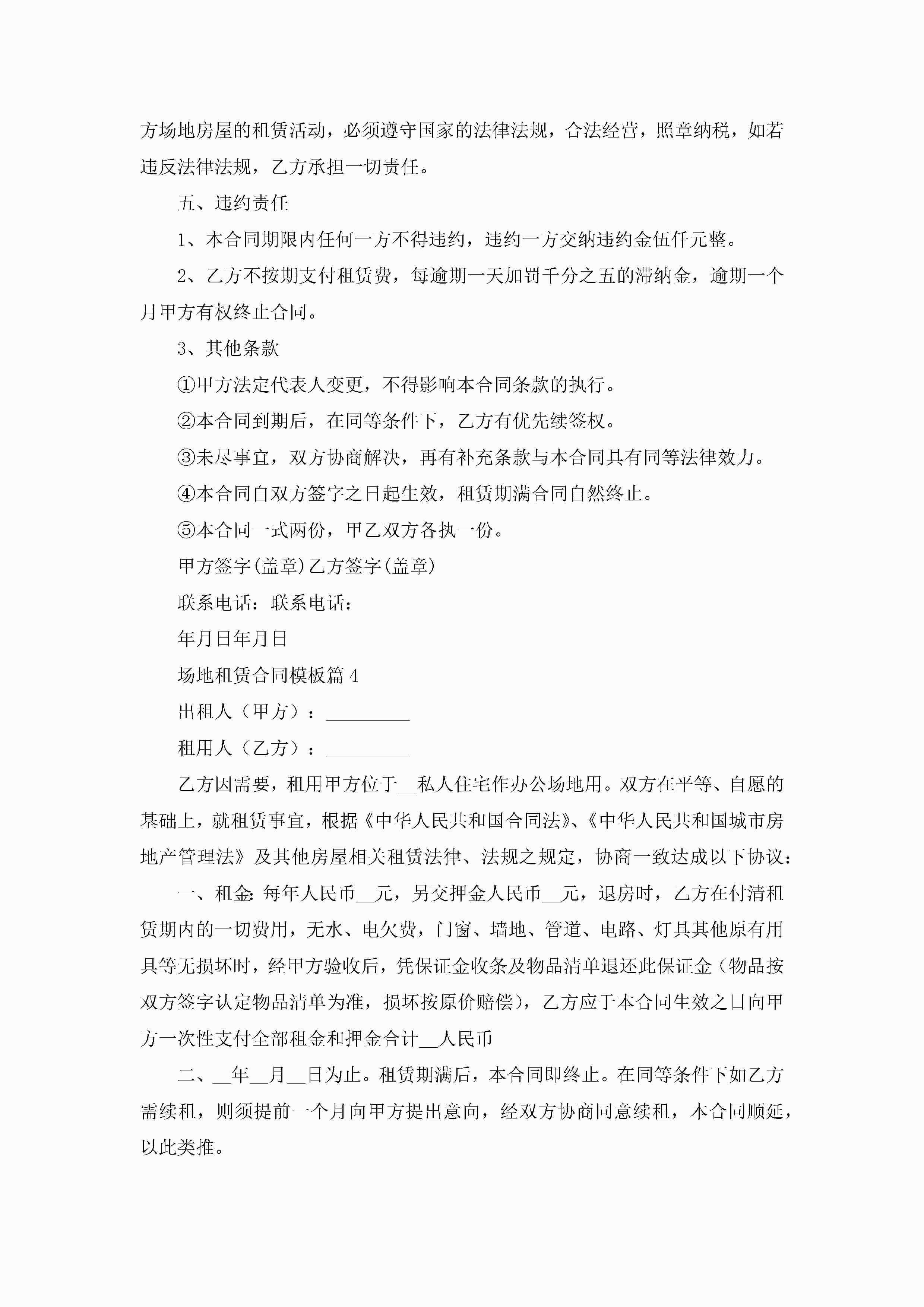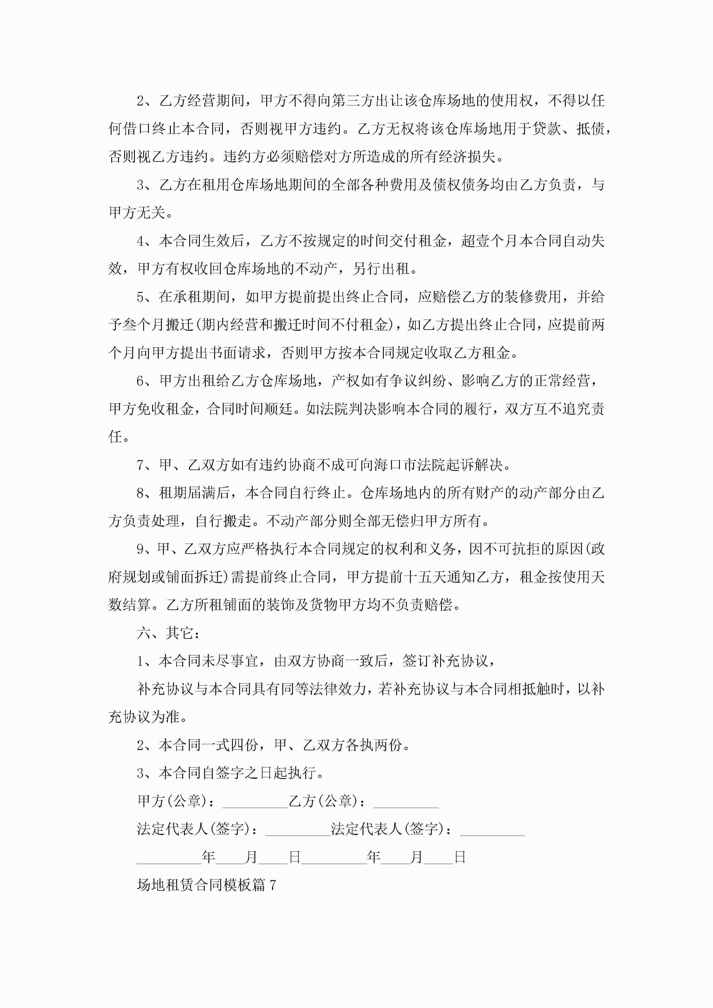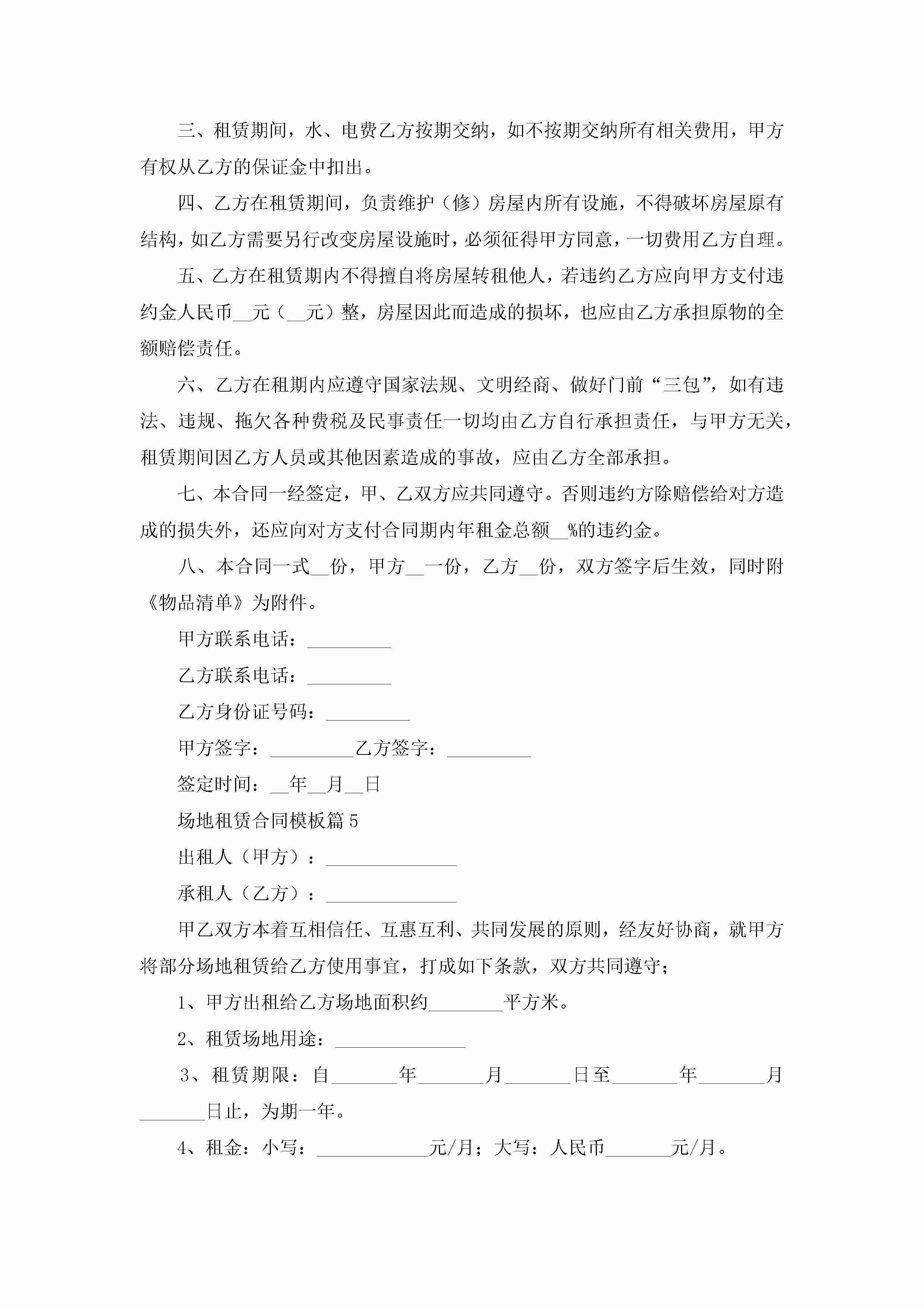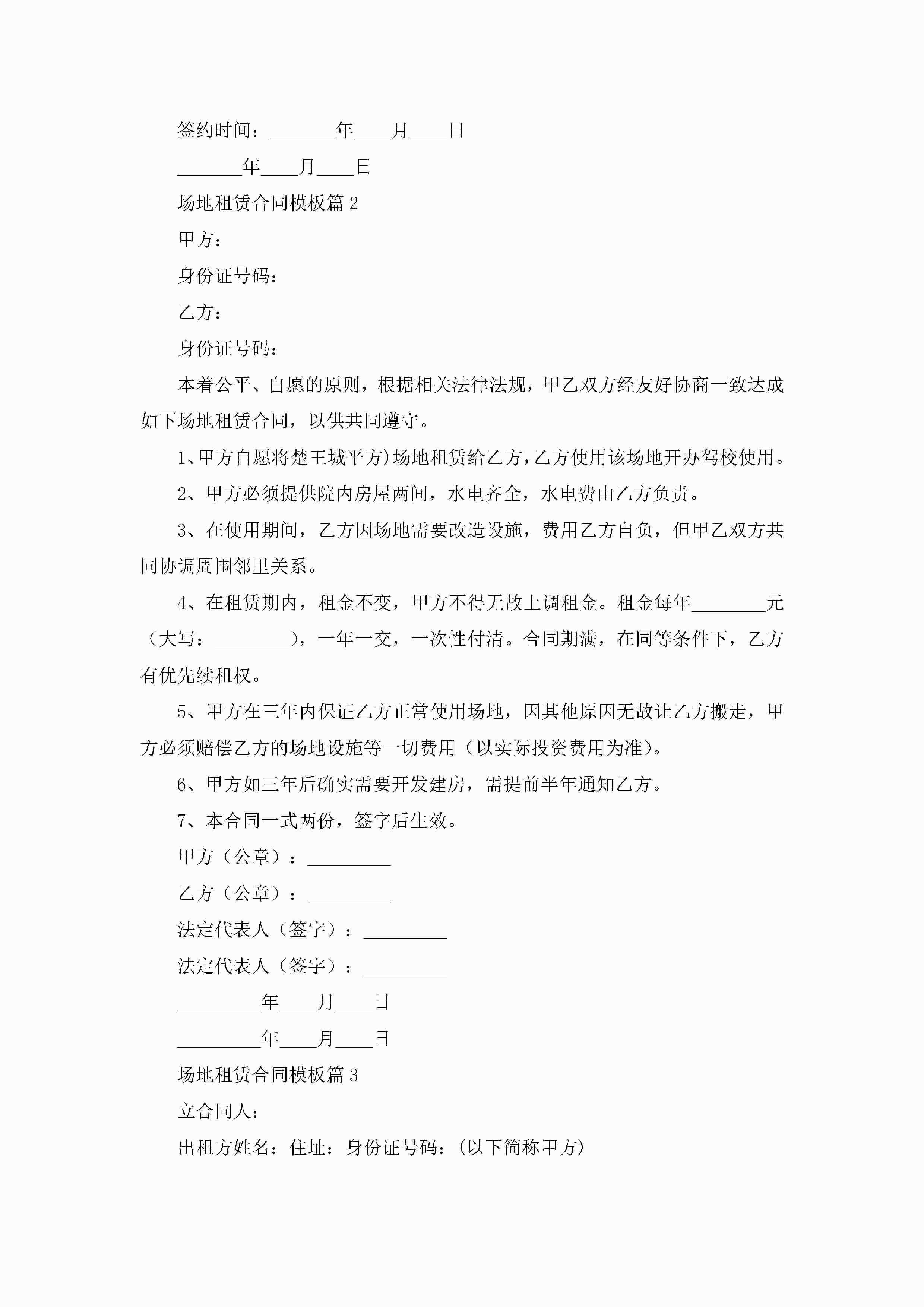 场地租赁合同模板【7篇】jugei3月23日 01:43发布关注184 场地租赁合同模板【7篇】此内容为付费资源,请付费后查看¥10.9 单篇文档限时特惠¥15个人会员开通企业会员开通立即下载无需登陆!可直接快捷下载单个模板付费资源© 版权声明THE ENDWord模板# 实用文档# 实用模板# 合同模板# 租赁合同 如有问题,可点击最底部“联系我们”联系客服 分享QQ空间微博QQ好友海报分享复制链接收藏