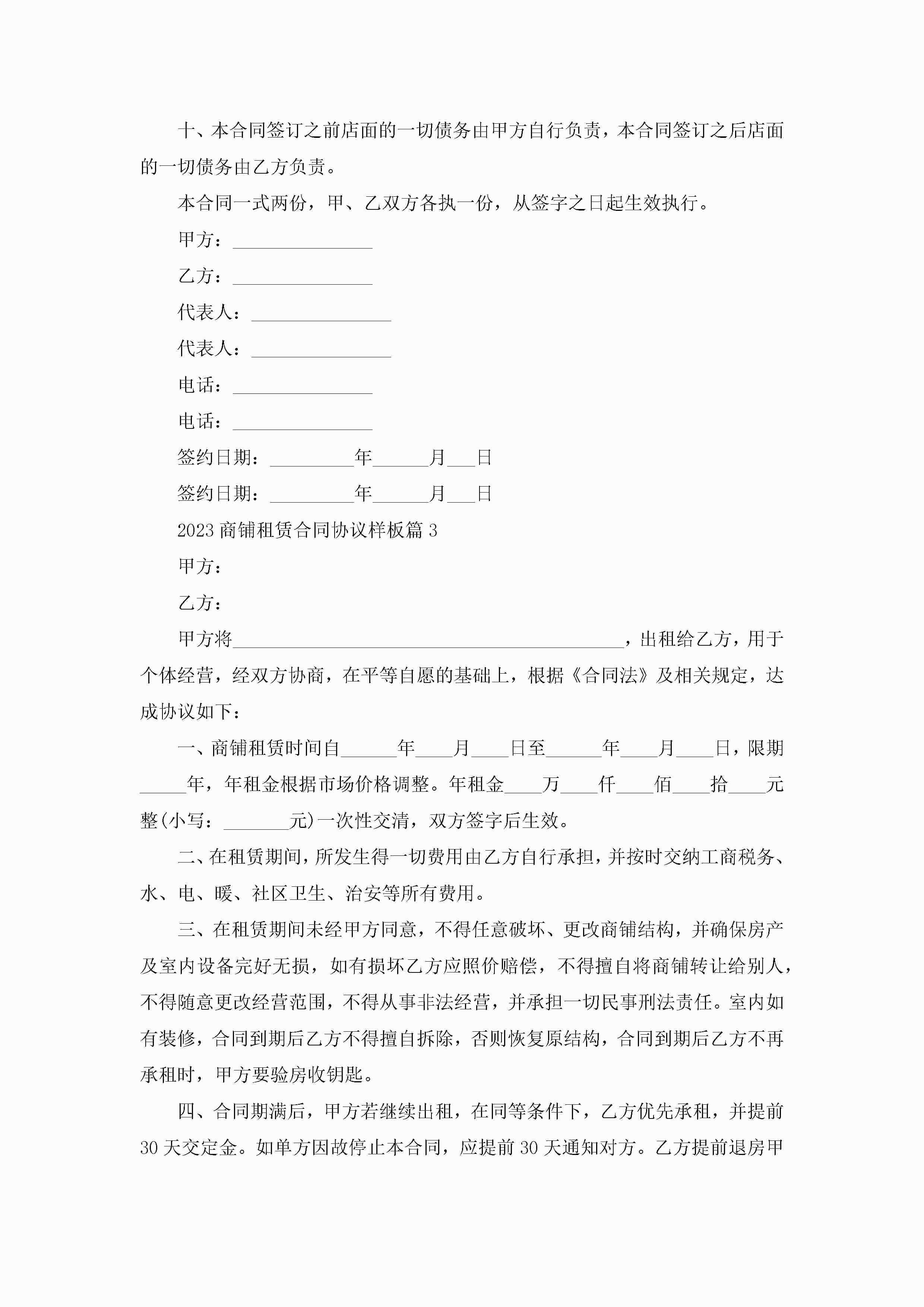 关于2023商铺租赁合同协议样板【10篇】jugei3月23日 01:43发布关注251 关于2023商铺租赁合同协议样板【10篇】此内容为付费资源,请付费后查看¥10.9 单篇文档限时特惠¥15个人会员开通企业会员开通立即下载无需登陆!可直接快捷下载单个模板付费资源© 版权声明THE ENDWord模板# 实用文档# 合同模板# 租赁合同# 2023商铺租赁合同协议样板【10篇】 如有问题,可点击最底部“联系我们”联系客服 分享QQ空间微博QQ好友海报分享复制链接收藏