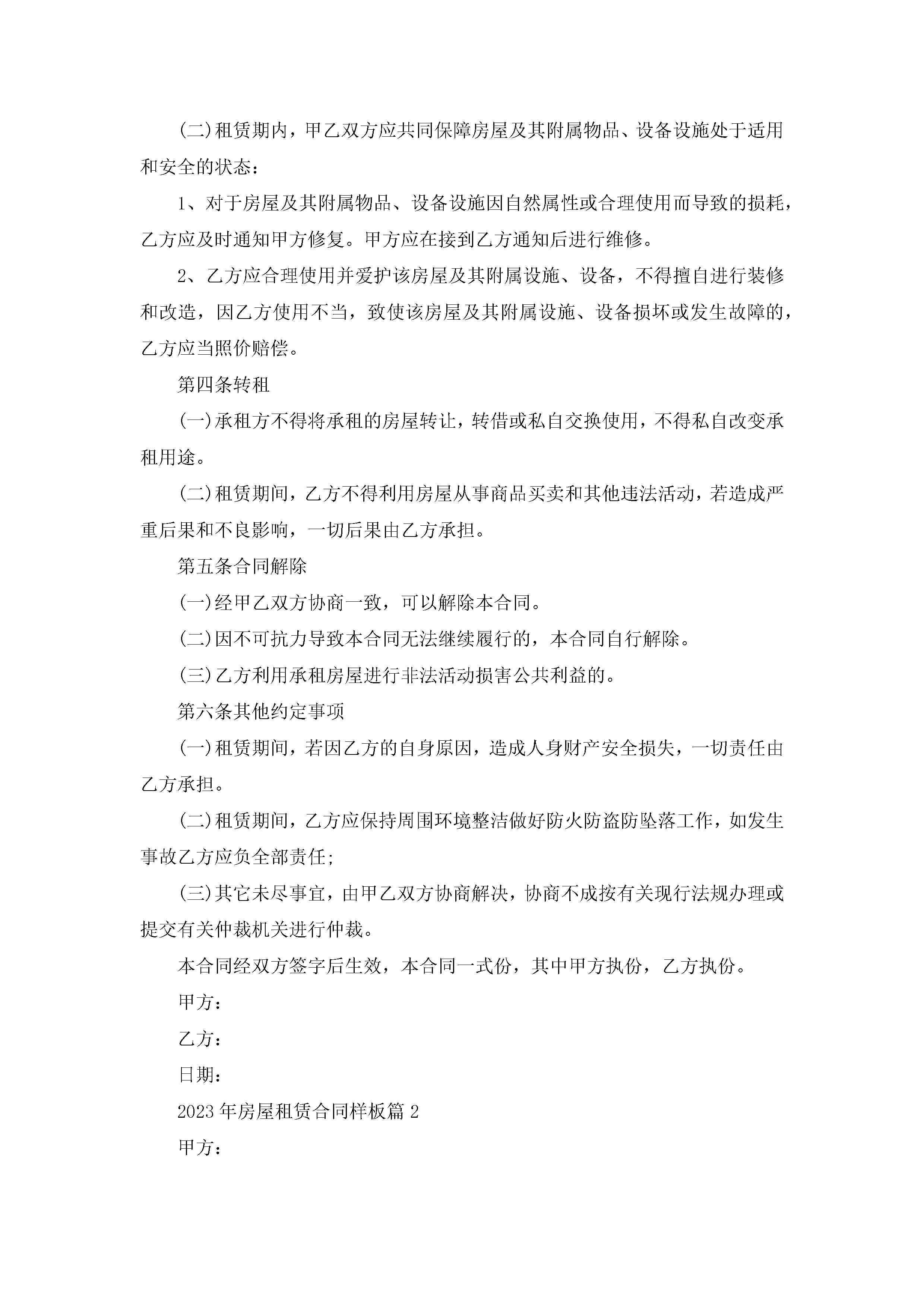 2023年房屋租赁合同样板【7篇】jugei3月23日 01:43发布关注186 2023年房屋租赁合同样板【7篇】此内容为付费资源,请付费后查看¥10.9 单篇文档限时特惠¥15个人会员开通企业会员开通立即下载无需登陆!可直接快捷下载单个模板付费资源© 版权声明THE ENDWord模板# 实用文档# 合同模板# 租赁合同# 2023年房屋租赁合同样板 如有问题,可点击最底部“联系我们”联系客服 分享QQ空间微博QQ好友海报分享复制链接收藏