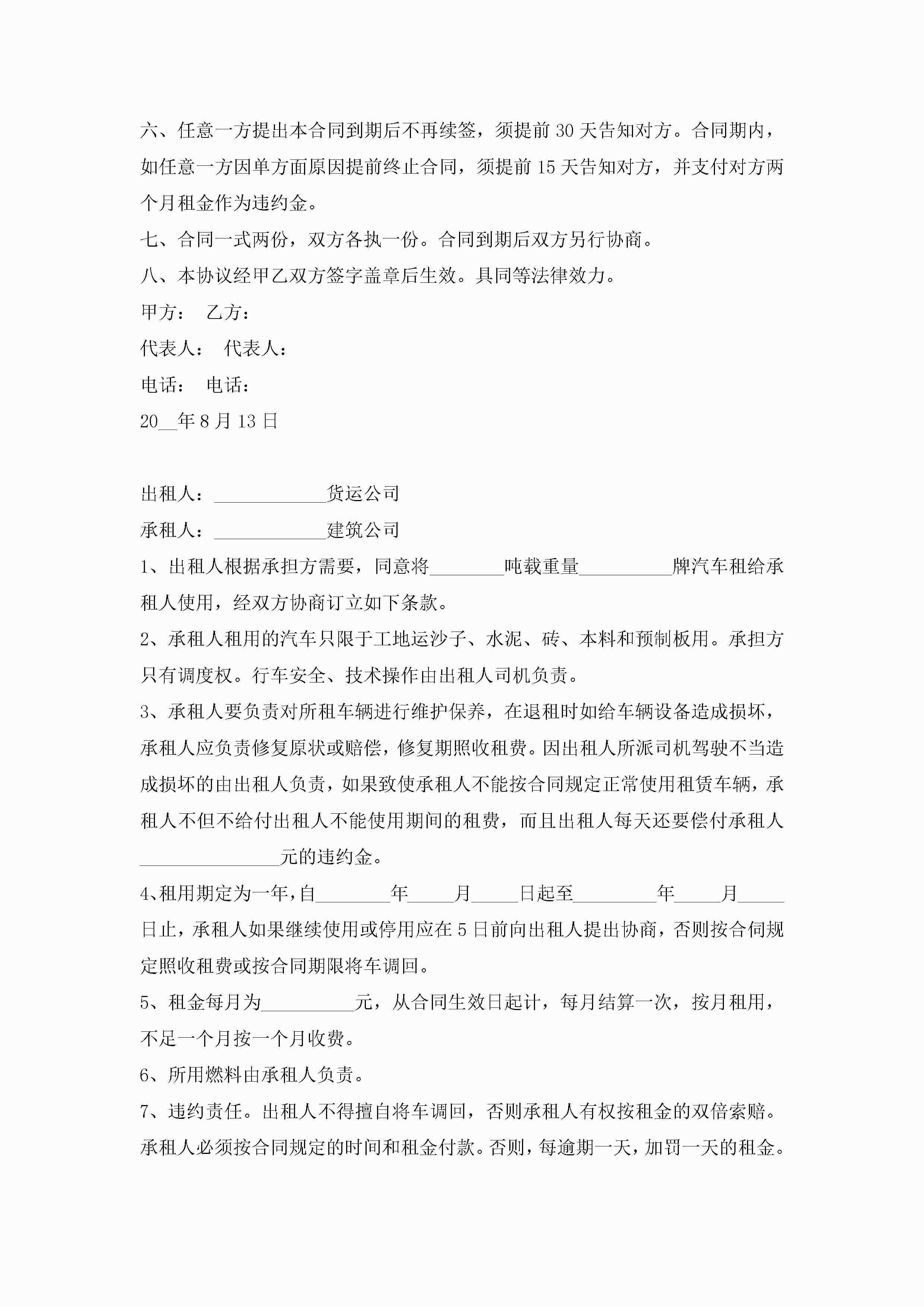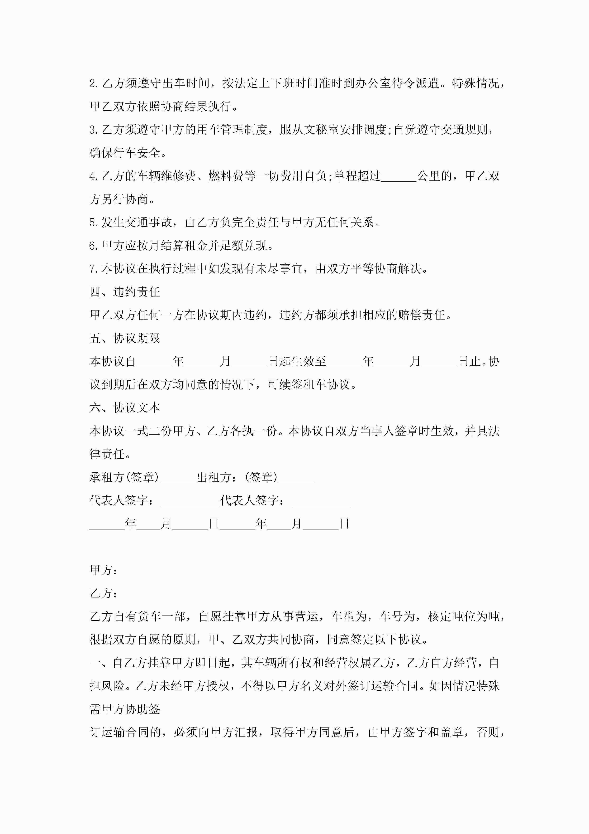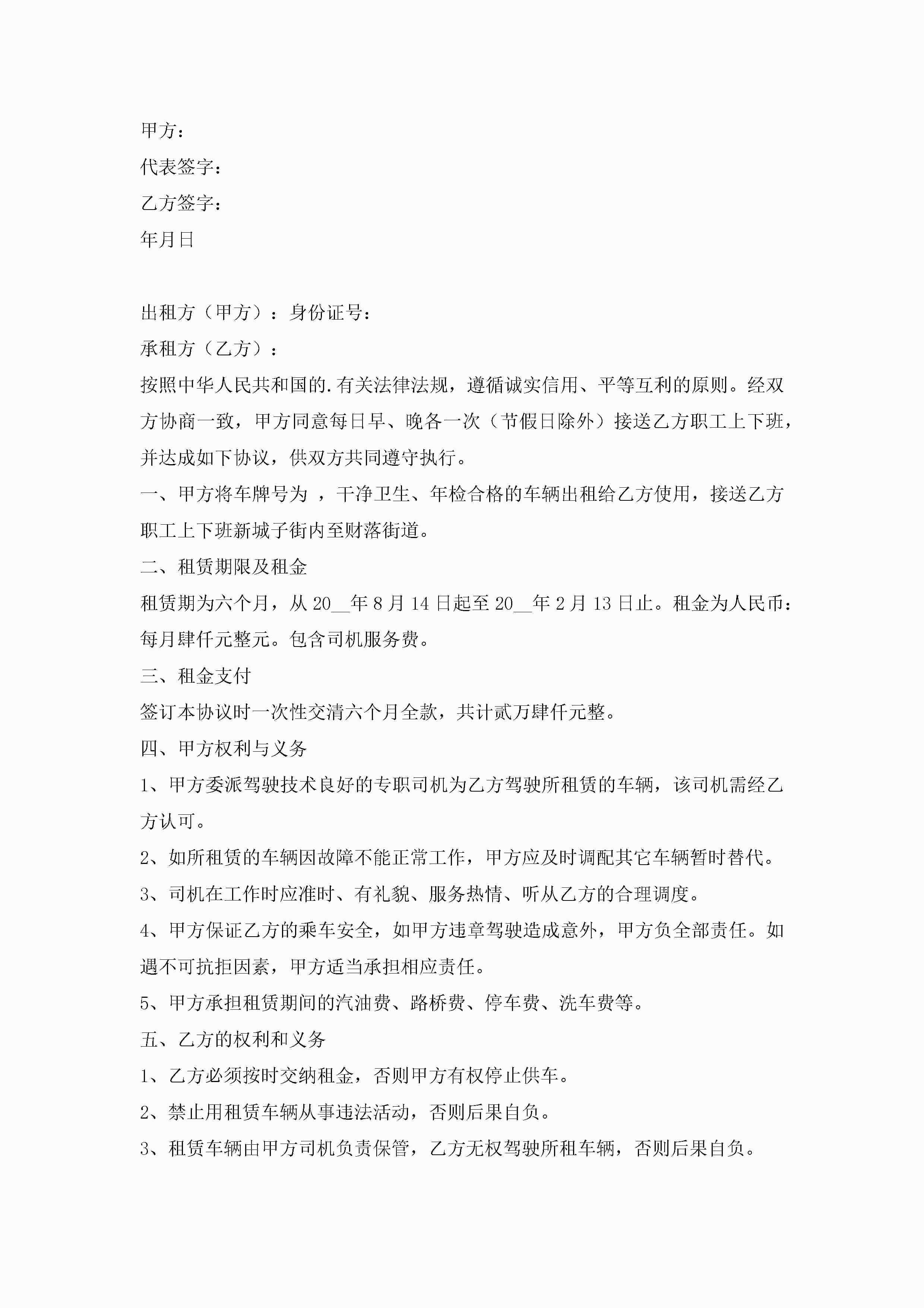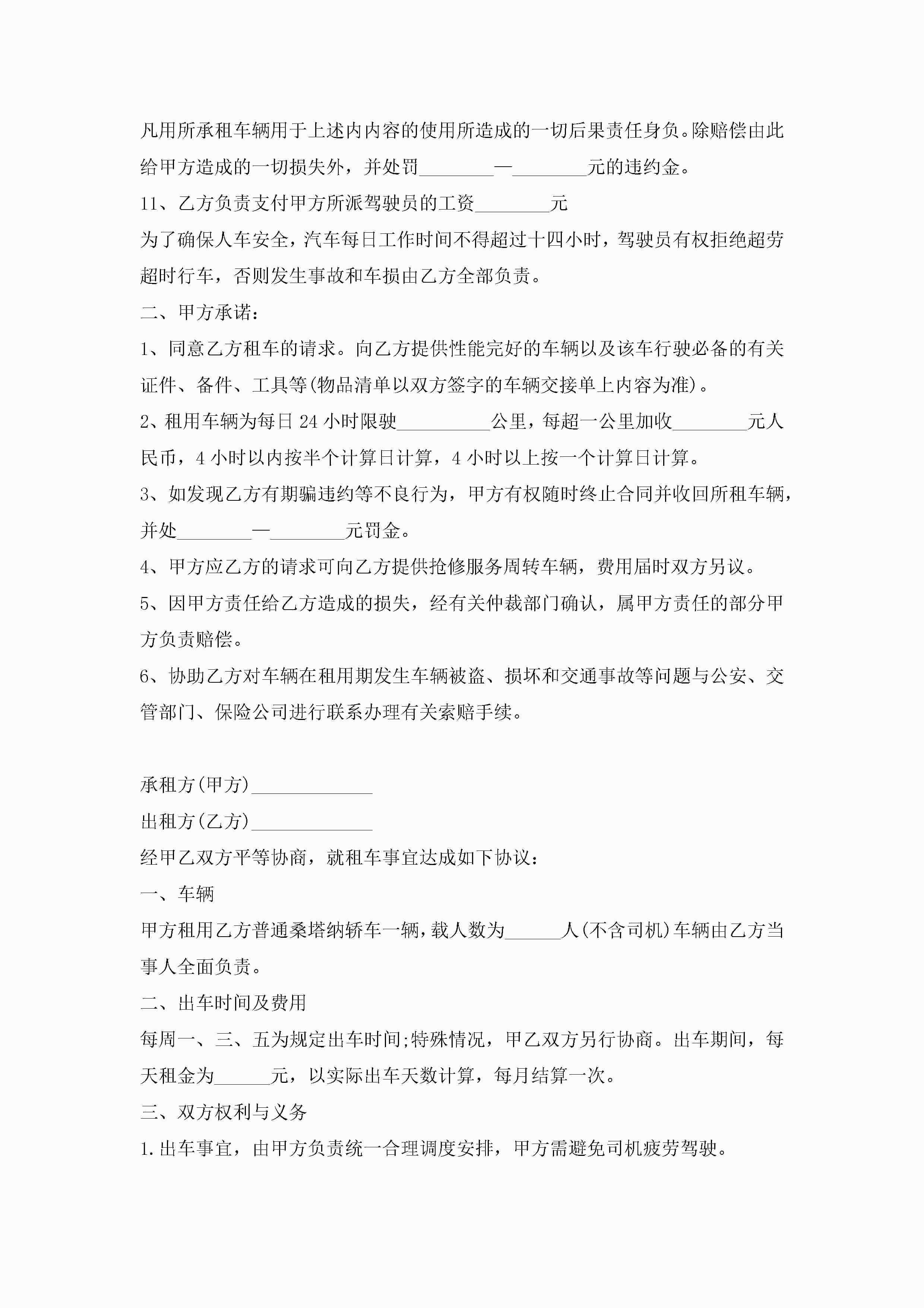 汽车租赁合同协议书万能7篇jugei3月23日 01:43发布关注191 汽车租赁合同协议书万能7篇此内容为付费资源,请付费后查看¥10.9 单篇文档限时特惠¥15个人会员开通企业会员开通立即下载无需登陆!可直接快捷下载单个模板付费资源© 版权声明THE ENDWord模板# 实用文档# 实用模板# 合同模板# 租赁合同 如有问题,可点击最底部“联系我们”联系客服 分享QQ空间微博QQ好友海报分享复制链接收藏