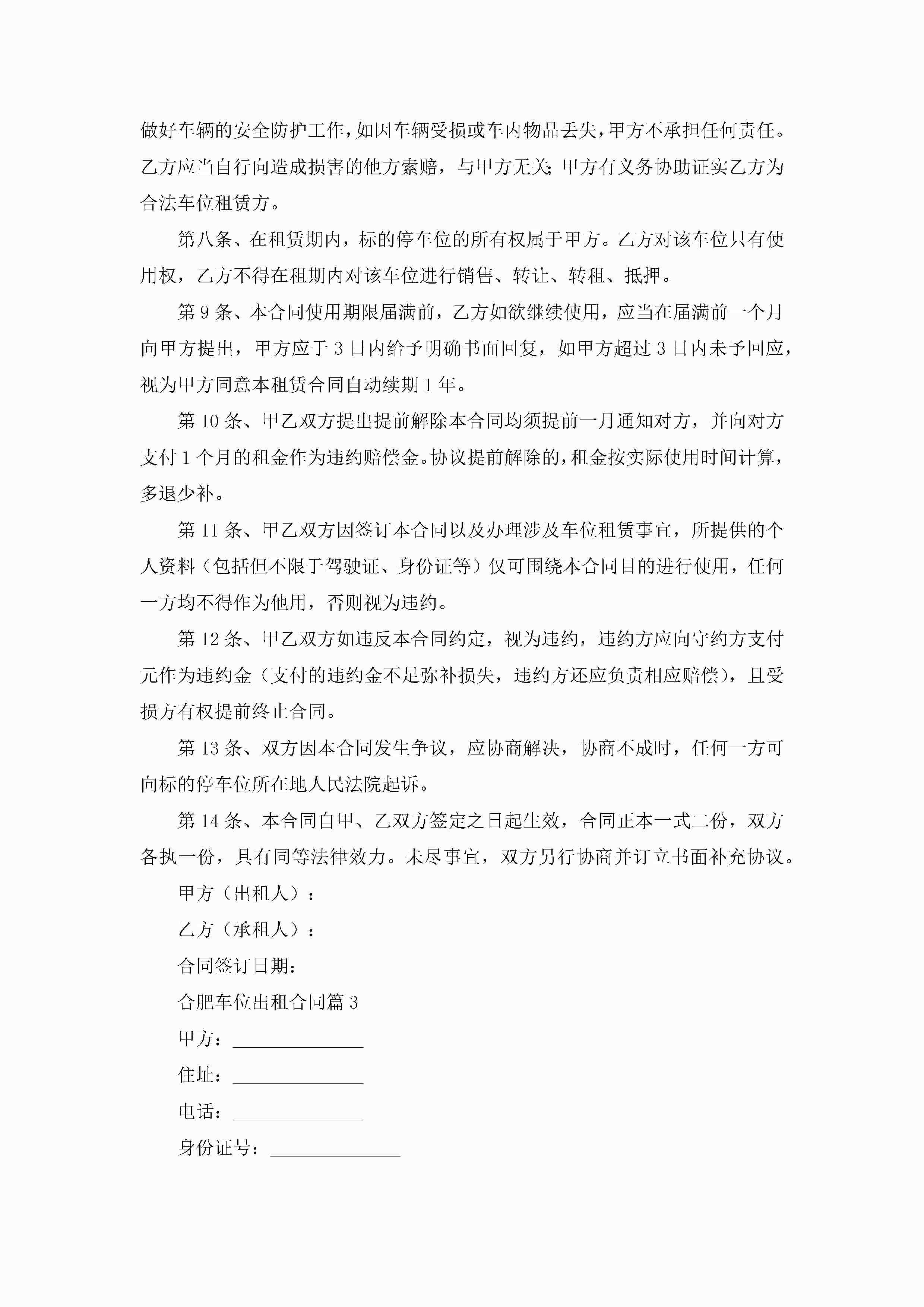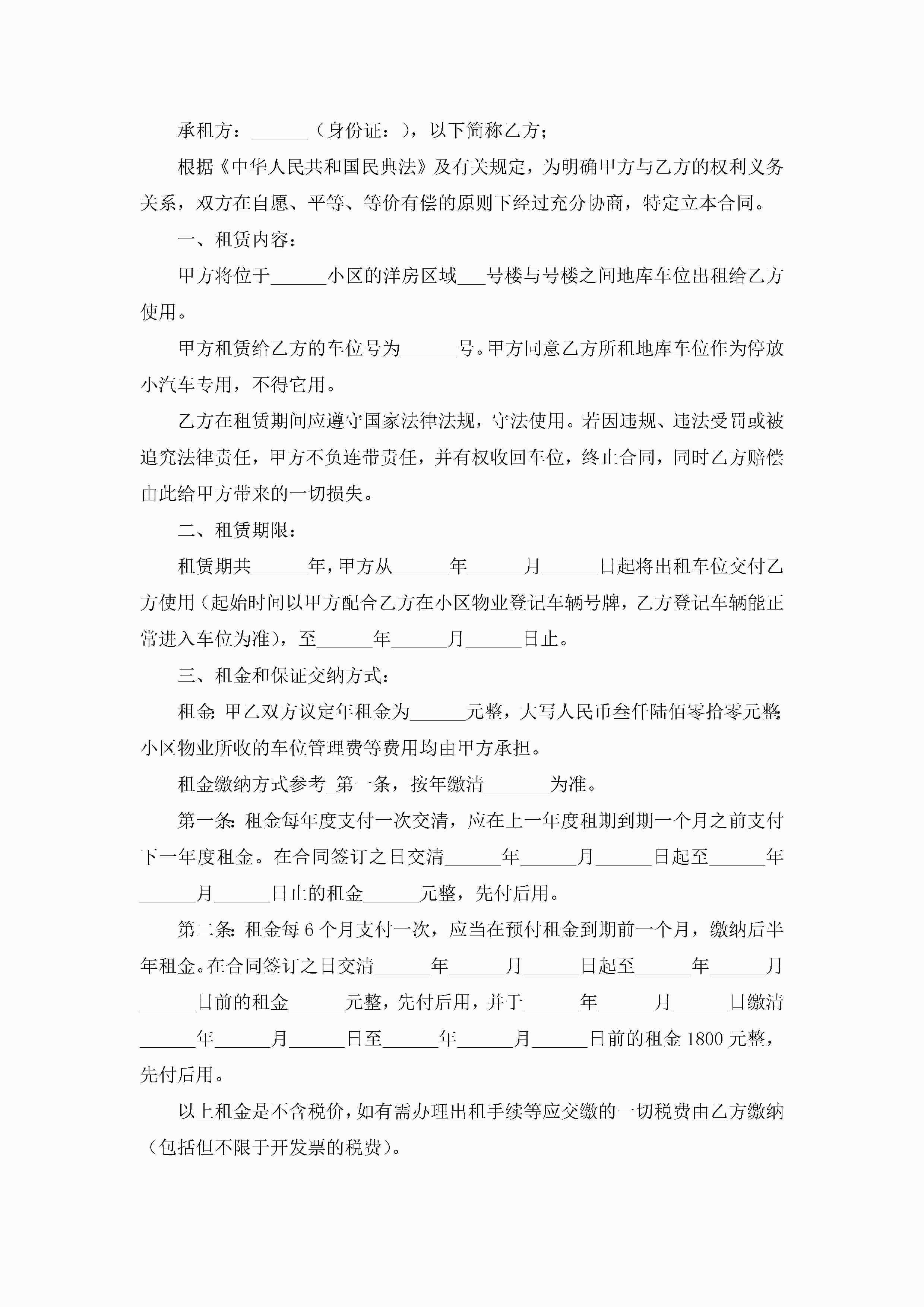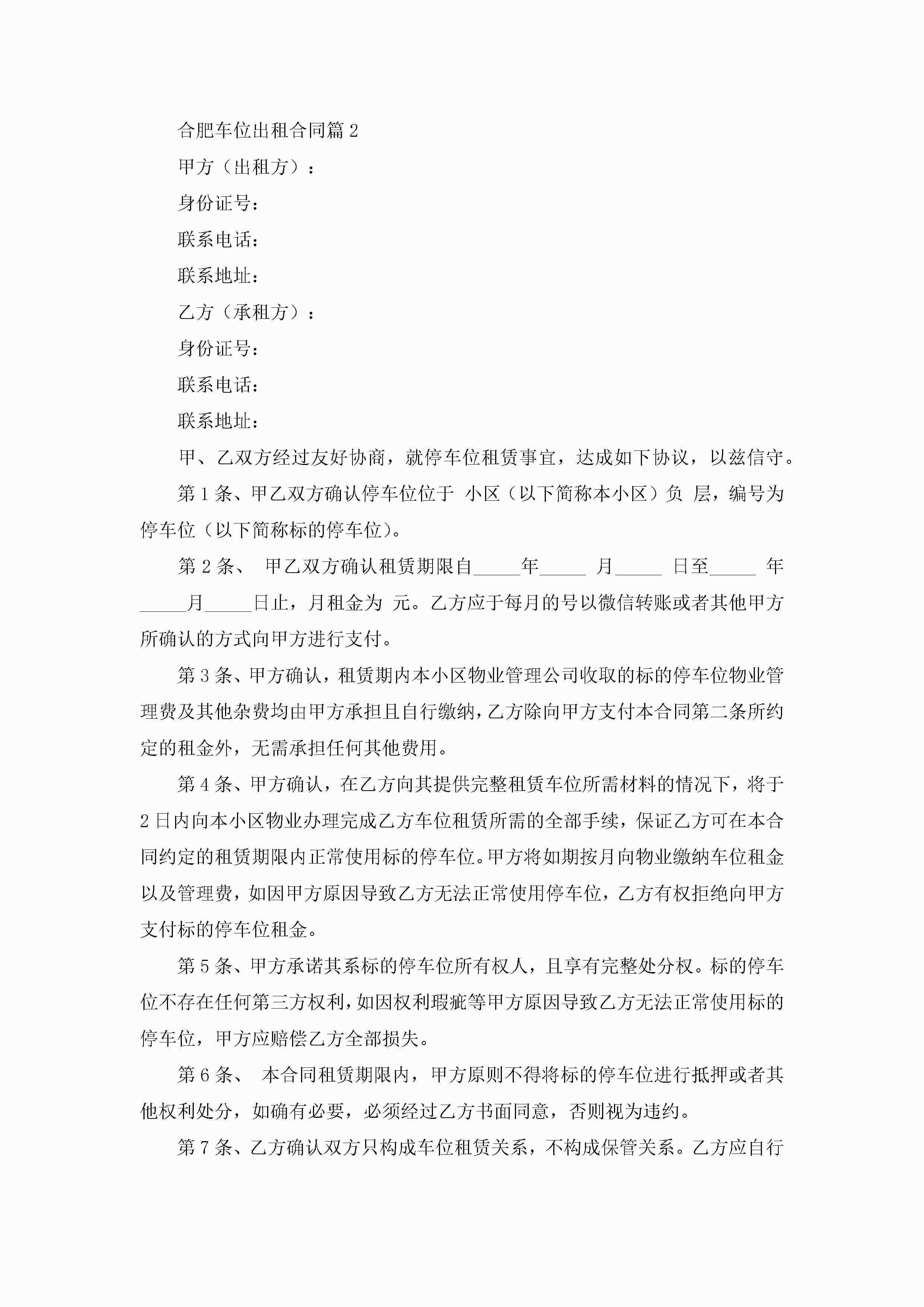 合肥车位出租合同7篇jugei3月23日 01:43发布关注187 合肥车位出租合同7篇此内容为付费资源,请付费后查看¥10.9 单篇文档限时特惠¥15个人会员开通企业会员开通立即下载无需登陆!可直接快捷下载单个模板付费资源© 版权声明THE ENDWord模板# 实用文档# 实用模板# 合同模板# 租赁合同 如有问题,可点击最底部“联系我们”联系客服 分享QQ空间微博QQ好友海报分享复制链接收藏