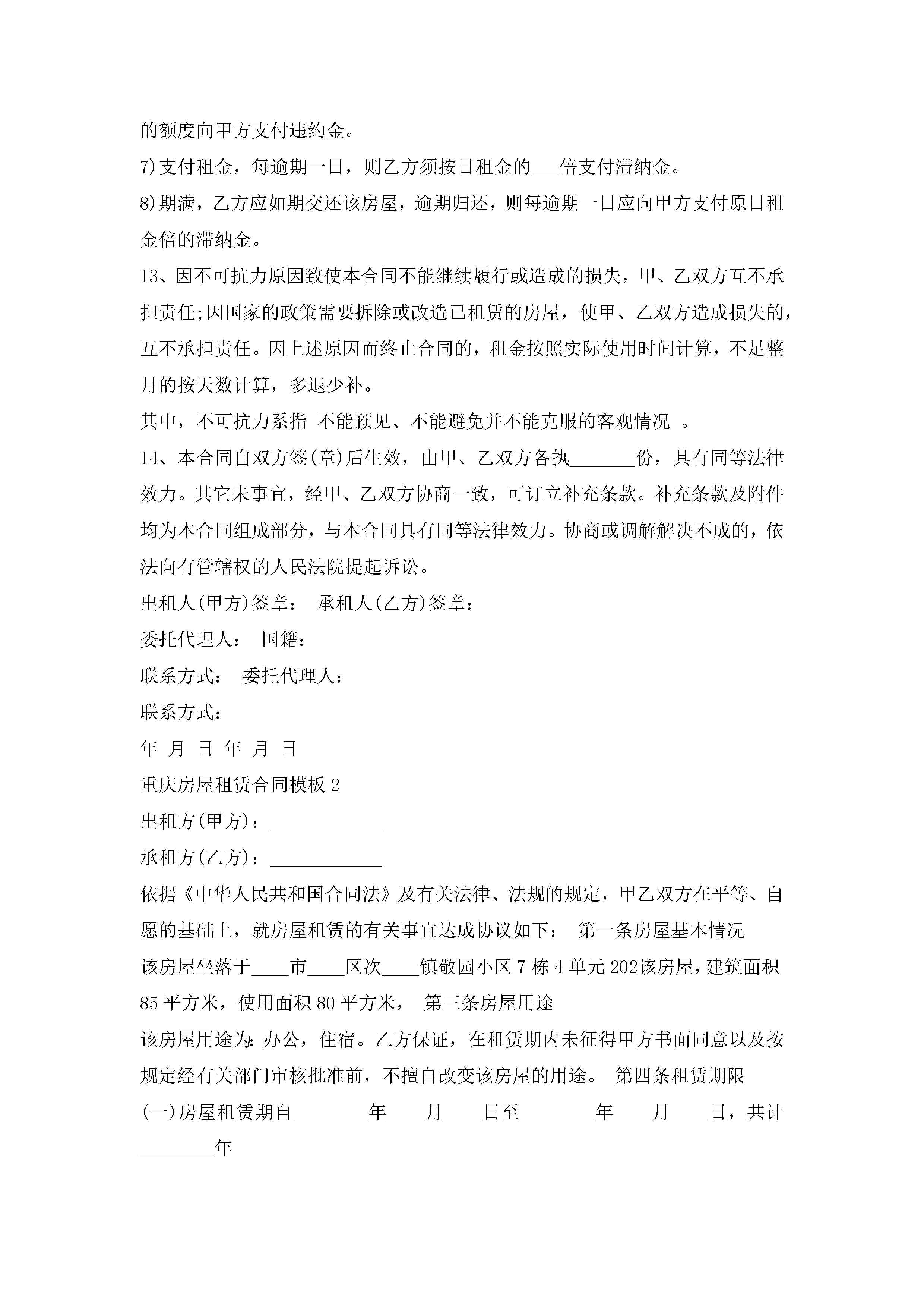 重庆房屋租赁合同模板5篇jugei3月23日 01:43发布关注185 重庆房屋租赁合同模板5篇此内容为付费资源,请付费后查看¥10.9 单篇文档限时特惠¥15个人会员开通企业会员开通立即下载无需登陆!可直接快捷下载单个模板付费资源© 版权声明THE ENDWord模板# 实用文档# 实用模板# 合同模板# 租赁合同 如有问题,可点击最底部“联系我们”联系客服 分享QQ空间微博QQ好友海报分享复制链接收藏