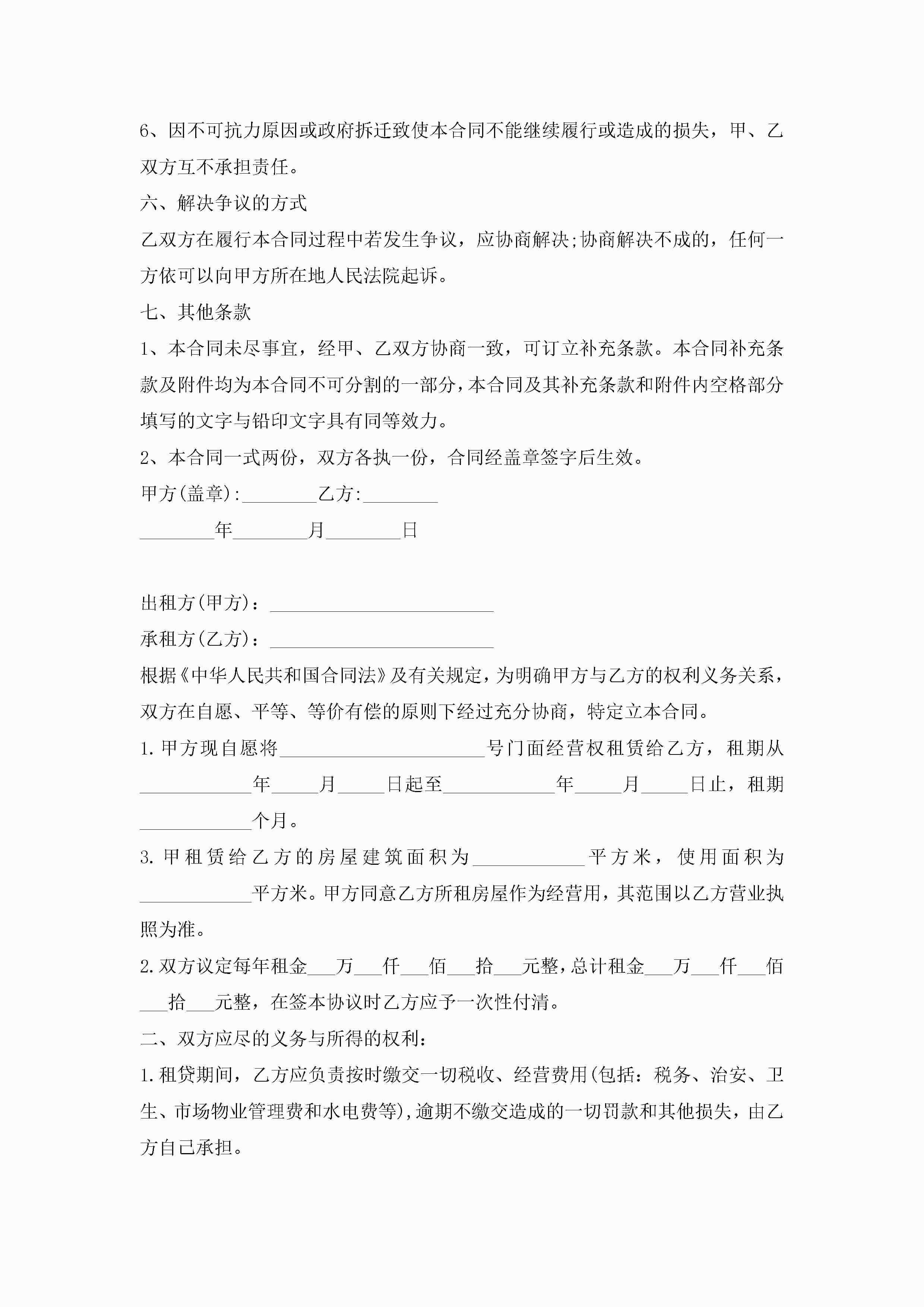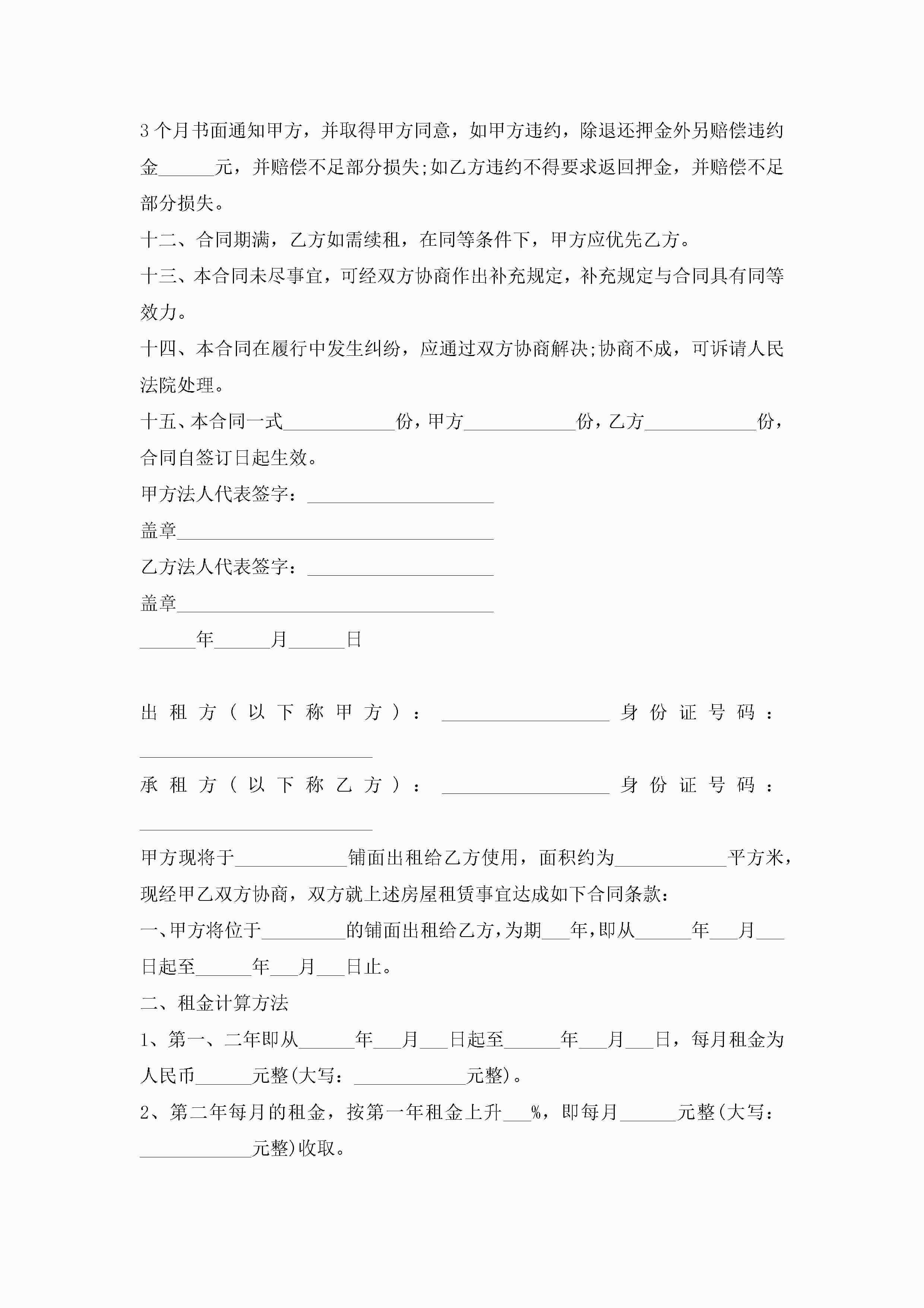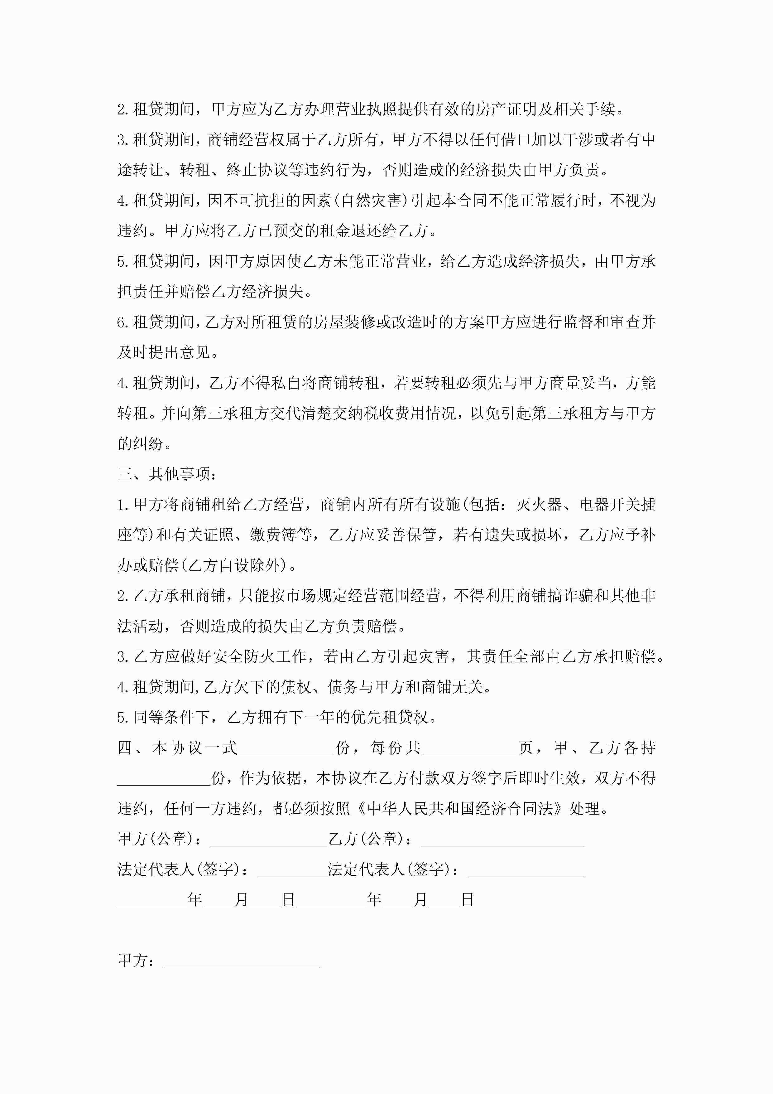 2022商铺租赁合同协议书最新8篇jugei3月23日 01:43发布关注200 2022商铺租赁合同协议书最新8篇此内容为付费资源,请付费后查看¥10.9 单篇文档限时特惠¥15个人会员开通企业会员开通立即下载无需登陆!可直接快捷下载单个模板付费资源© 版权声明THE ENDWord模板# 实用文档# 实用模板# 合同模板# 租赁合同 如有问题,可点击最底部“联系我们”联系客服 分享QQ空间微博QQ好友海报分享复制链接收藏