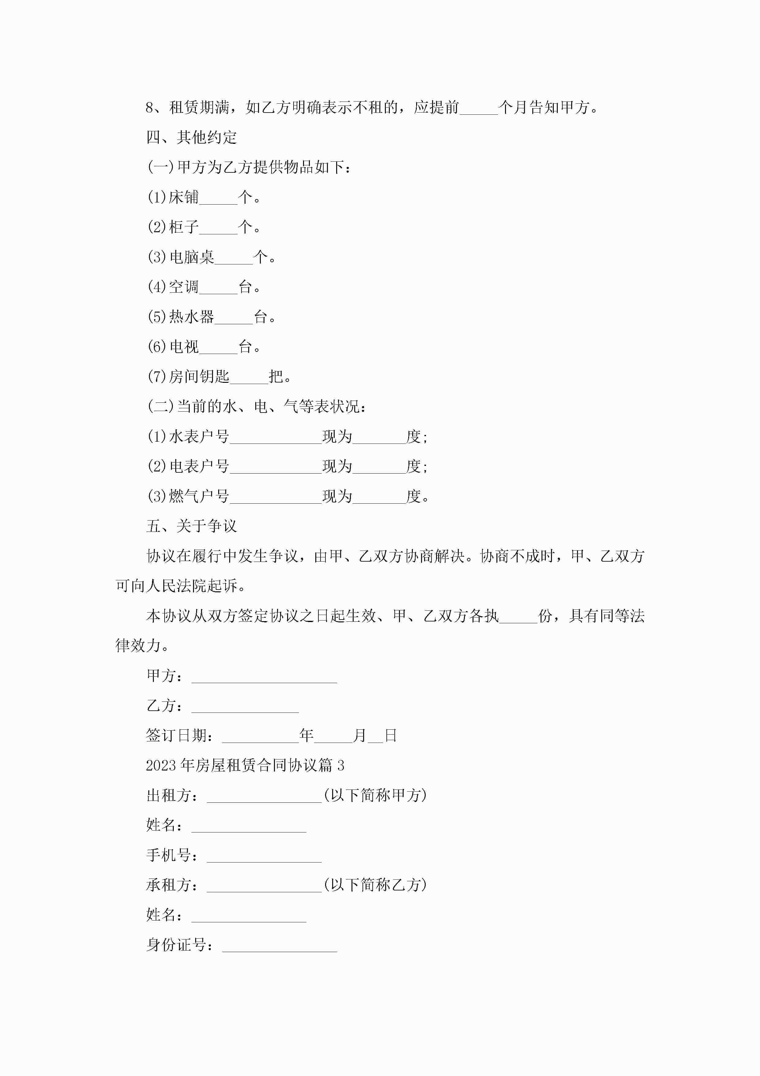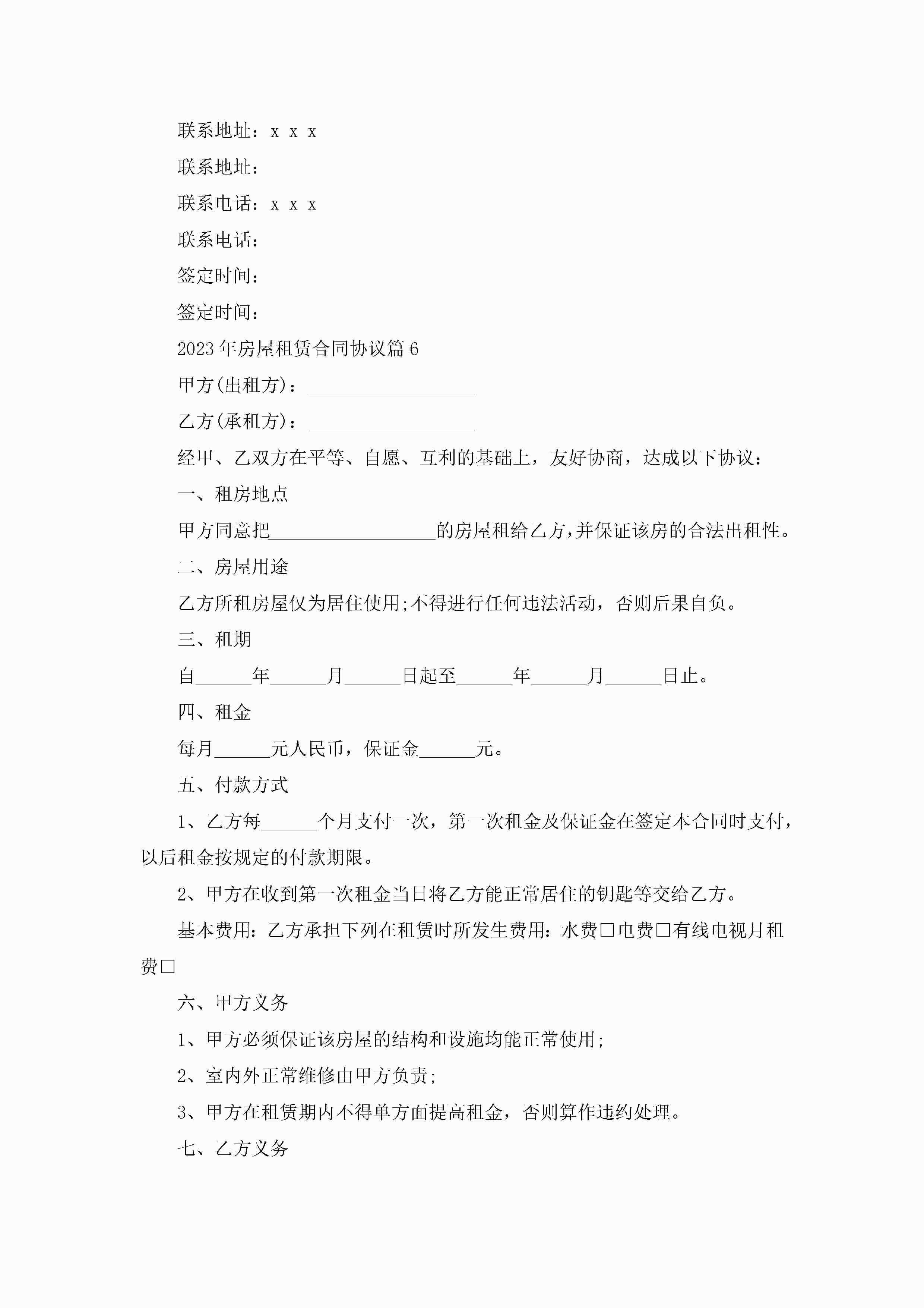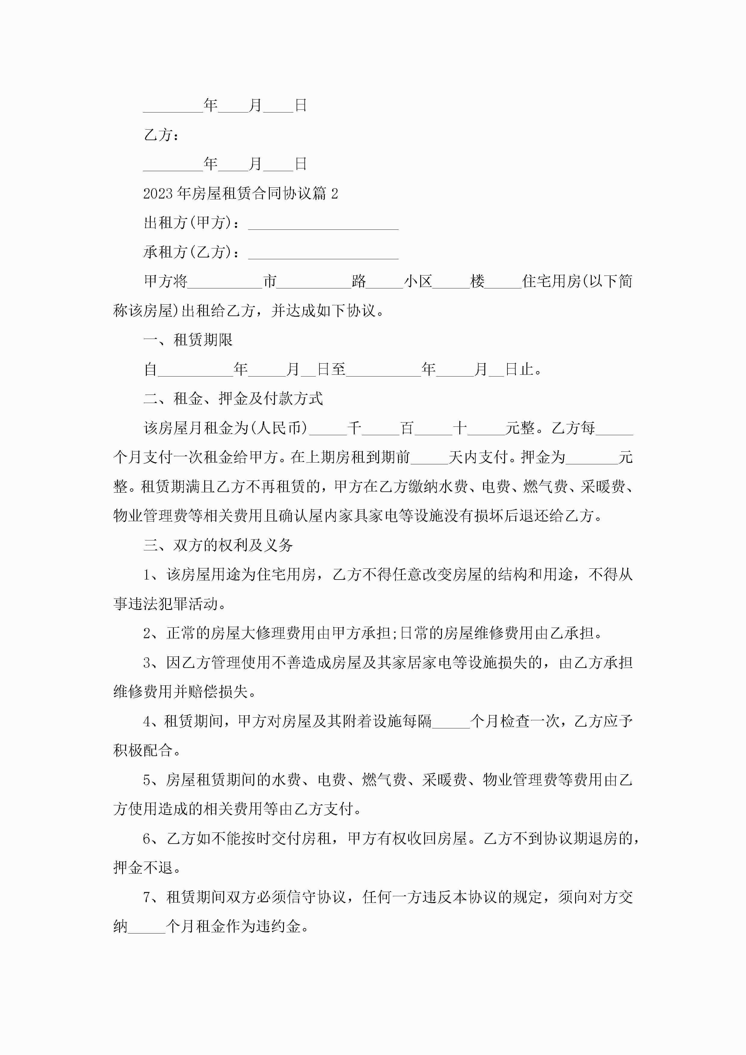2023年房屋租赁合同协议7篇jugei3月23日 01:43发布关注191 2023年房屋租赁合同协议7篇此内容为付费资源,请付费后查看¥10.9 单篇文档限时特惠¥15个人会员开通企业会员开通立即下载无需登陆!可直接快捷下载单个模板付费资源© 版权声明THE ENDWord模板# 实用文档# 合同模板# 租赁合同# 2023年房屋租赁合同协议 如有问题,可点击最底部“联系我们”联系客服 分享QQ空间微博QQ好友海报分享复制链接收藏