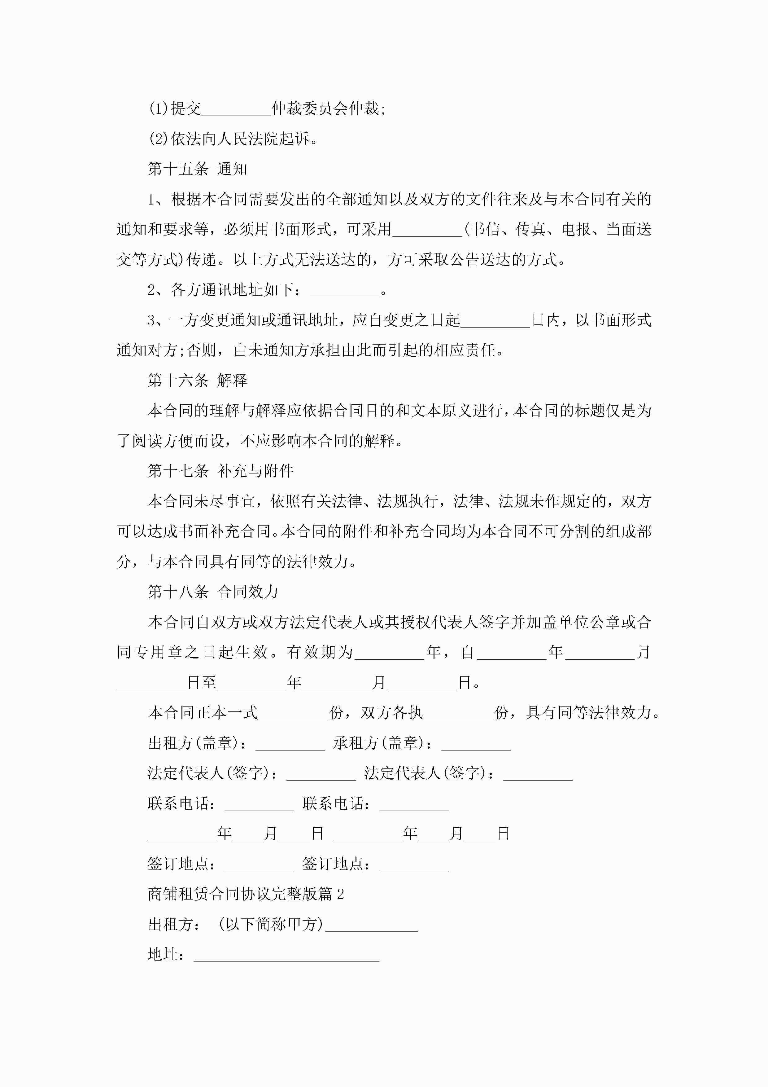 商铺租赁合同协议完整版【7篇】jugei3月23日 01:43发布关注231 商铺租赁合同协议完整版【7篇】此内容为付费资源,请付费后查看¥10.9 单篇文档限时特惠¥15个人会员开通企业会员开通立即下载无需登陆!可直接快捷下载单个模板付费资源© 版权声明THE ENDWord模板# 实用文档# 合同模板# 租赁合同# 商铺租赁合同协议完整版 如有问题,可点击最底部“联系我们”联系客服 分享QQ空间微博QQ好友海报分享复制链接收藏