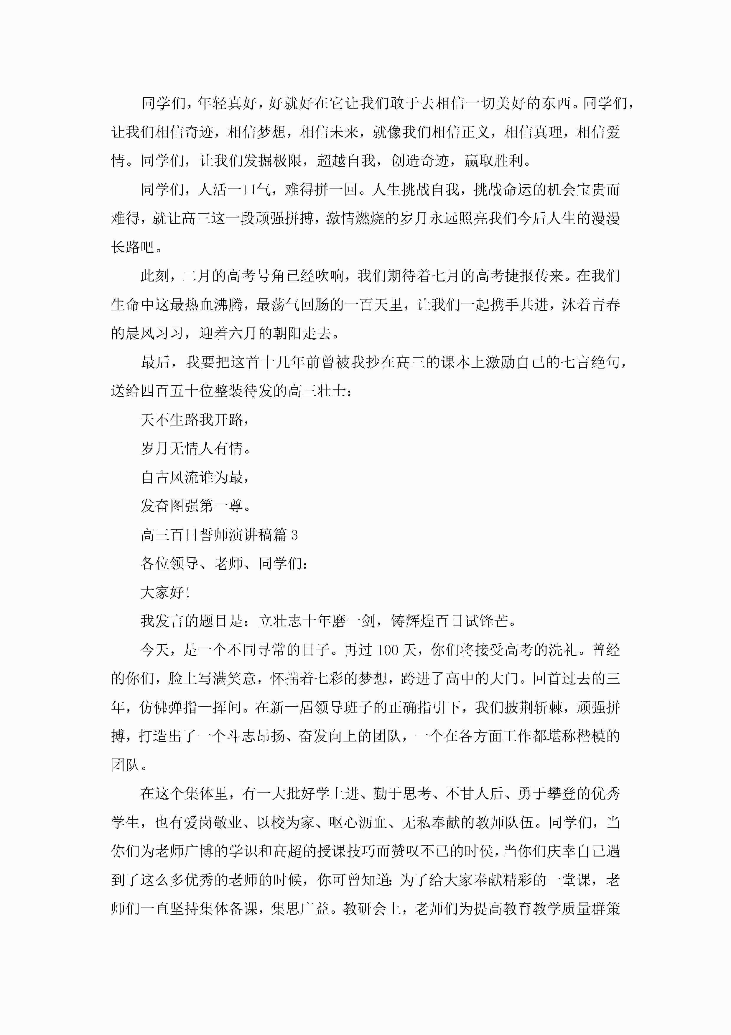 2023高三百日誓师演讲稿10篇jugei3月23日 01:43发布关注196 2023高三百日誓师演讲稿10篇此内容为付费资源,请付费后查看¥10.9 单篇文档限时特惠¥15个人会员开通企业会员开通立即下载无需登陆!可直接快捷下载单个模板付费资源© 版权声明THE ENDWord模板# 实用文档# 演讲稿# 经典演讲稿# 实用写作# 高三百日誓师演讲稿10篇 如有问题,可点击最底部“联系我们”联系客服 分享QQ空间微博QQ好友海报分享复制链接收藏