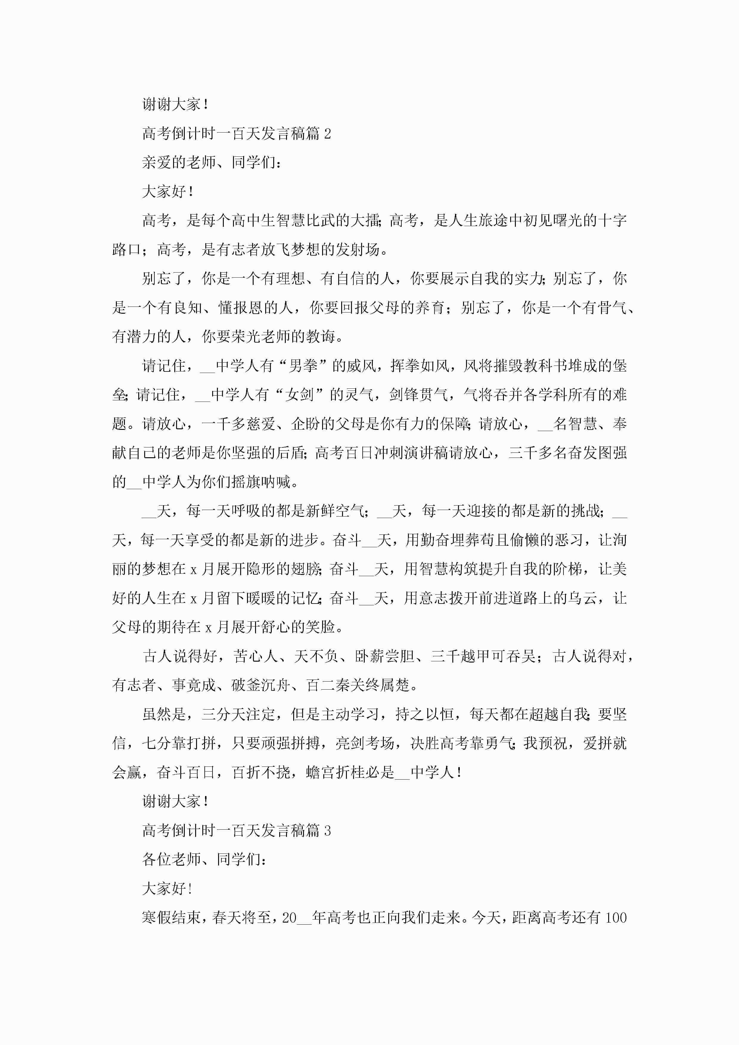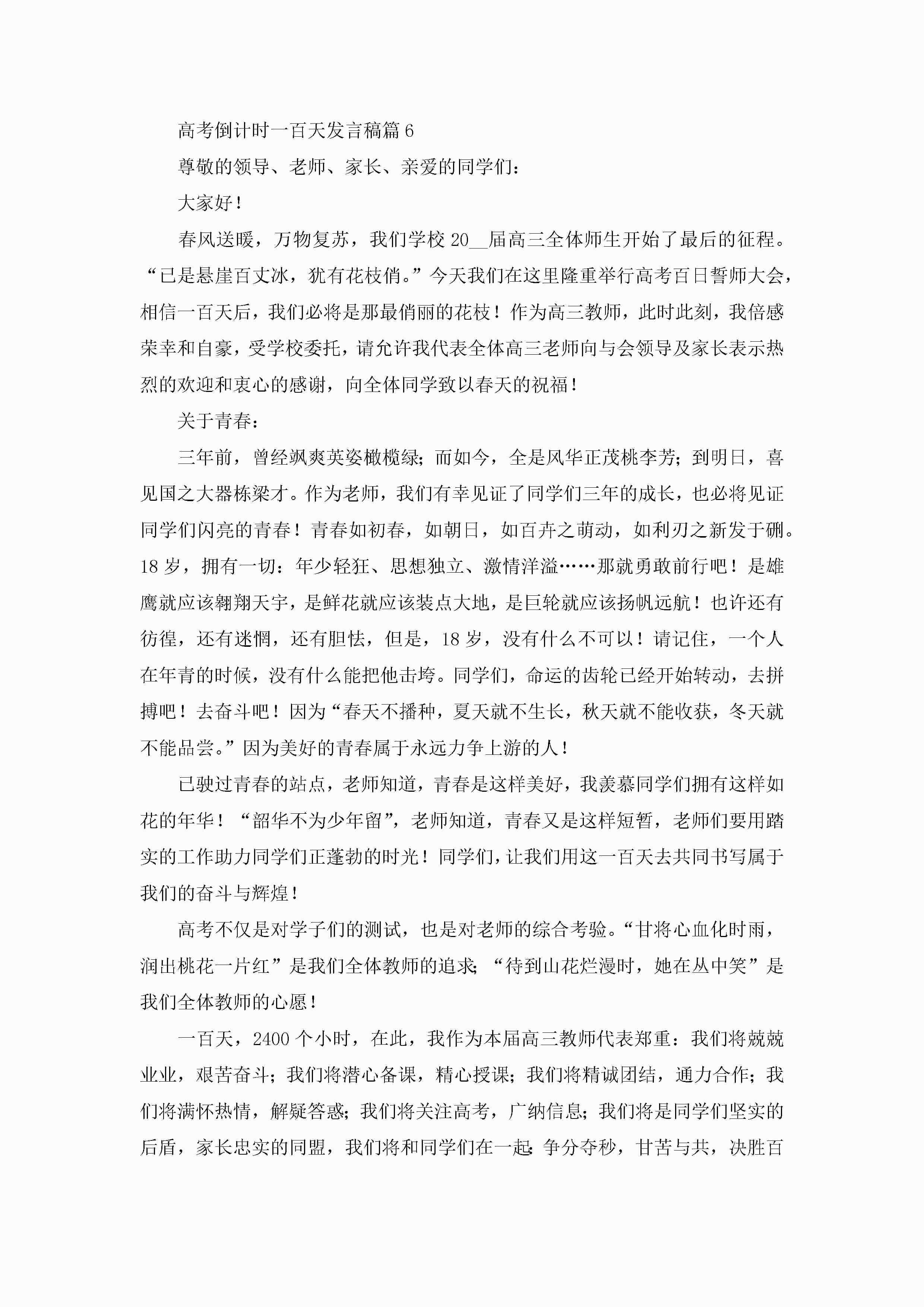 2023年高考倒计时一百天发言稿10篇jugei3月23日 01:43发布关注202 2023年高考倒计时一百天发言稿10篇此内容为付费资源,请付费后查看¥10.9 单篇文档限时特惠¥15个人会员开通企业会员开通立即下载无需登陆!可直接快捷下载单个模板付费资源© 版权声明THE ENDWord模板# 实用文档# 演讲稿# 经典演讲稿# 实用写作# 高考倒计时一百天发言稿10篇 如有问题,可点击最底部“联系我们”联系客服 分享QQ空间微博QQ好友海报分享复制链接收藏