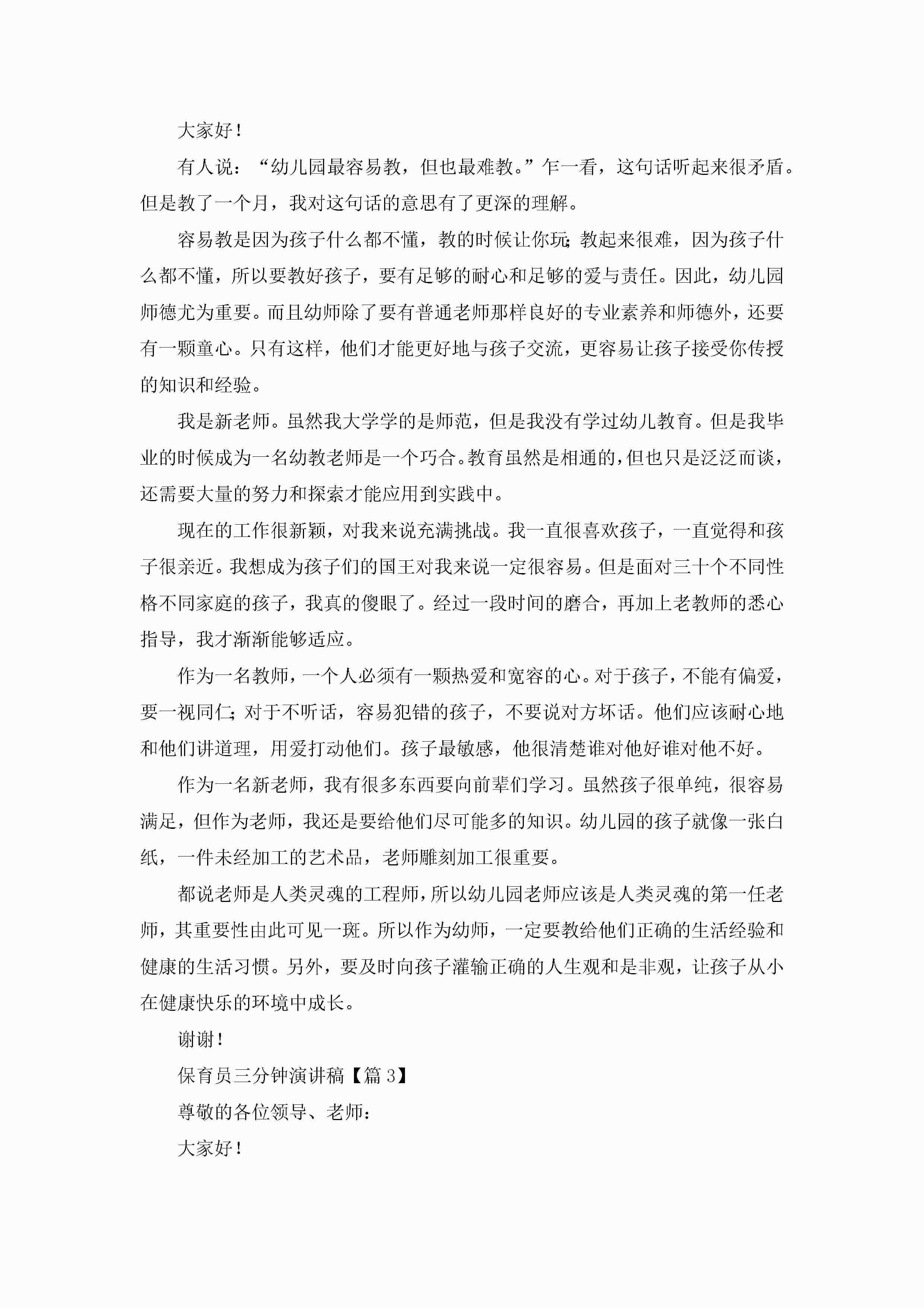 保育员三分钟演讲稿5篇jugei3月23日 01:43发布关注261 保育员三分钟演讲稿5篇此内容为付费资源,请付费后查看¥10.9 单篇文档限时特惠¥15个人会员开通企业会员开通立即下载无需登陆!可直接快捷下载单个模板付费资源© 版权声明THE ENDWord模板# 实用文档# 演讲稿# 经典演讲稿# 实用写作# 保育员三分钟演讲稿 如有问题,可点击最底部“联系我们”联系客服 分享QQ空间微博QQ好友海报分享复制链接收藏