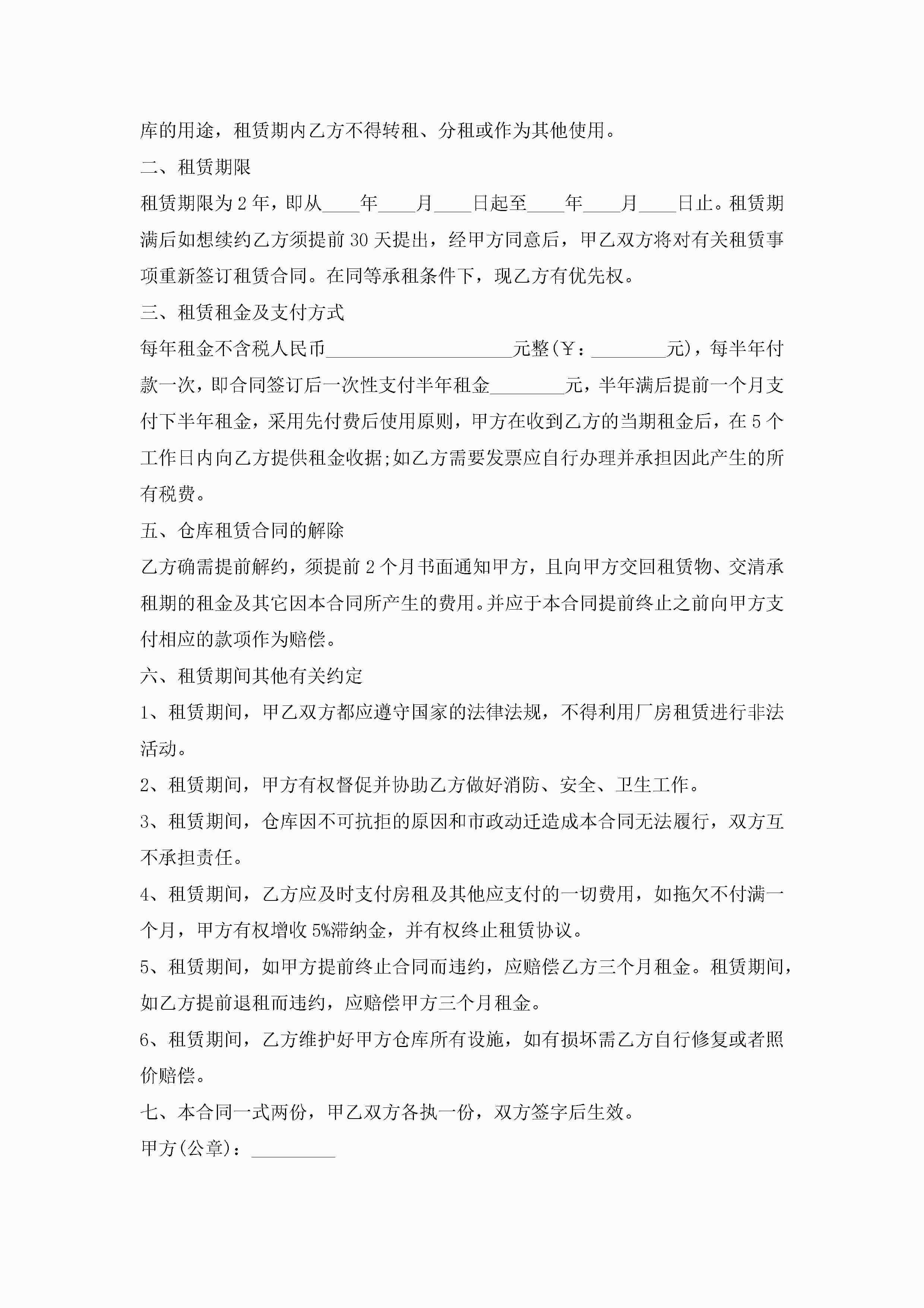 储备仓库租赁合同(7篇)jugei3月23日 01:43发布关注184 储备仓库租赁合同(7篇)此内容为付费资源,请付费后查看¥10.9 单篇文档限时特惠¥15个人会员开通企业会员开通立即下载无需登陆!可直接快捷下载单个模板付费资源© 版权声明THE ENDWord模板# 实用文档# 实用模板# 合同模板# 租赁合同 如有问题,可点击最底部“联系我们”联系客服 分享QQ空间微博QQ好友海报分享复制链接收藏