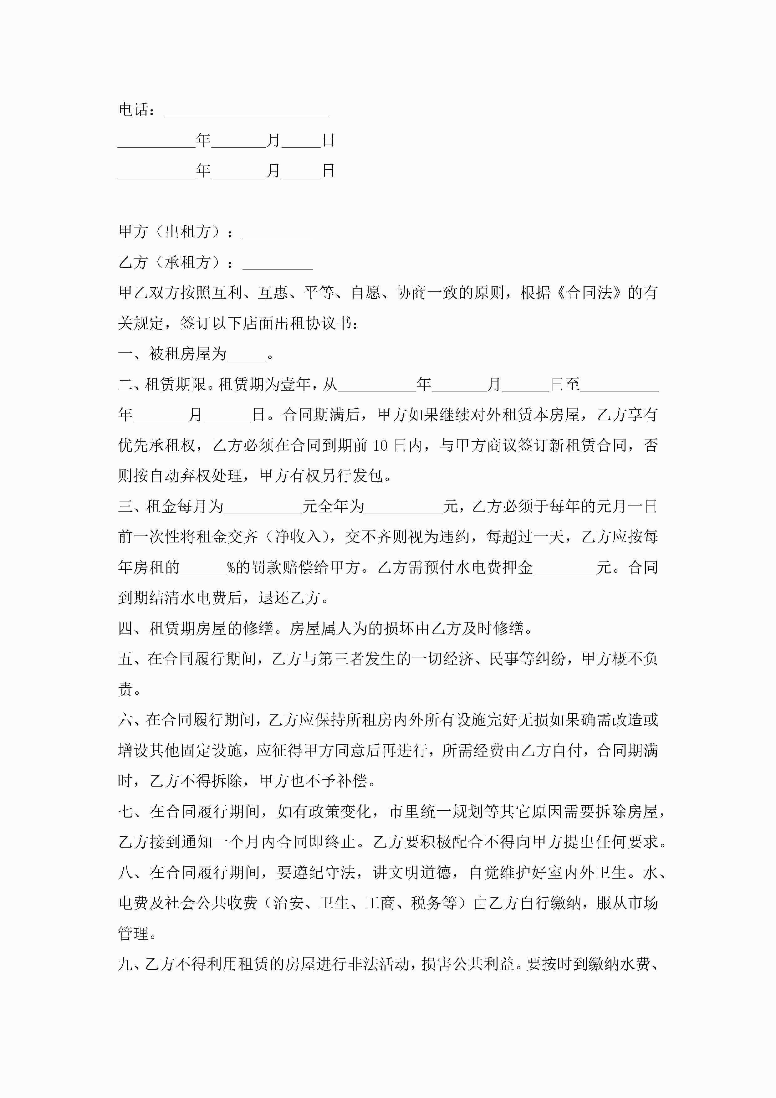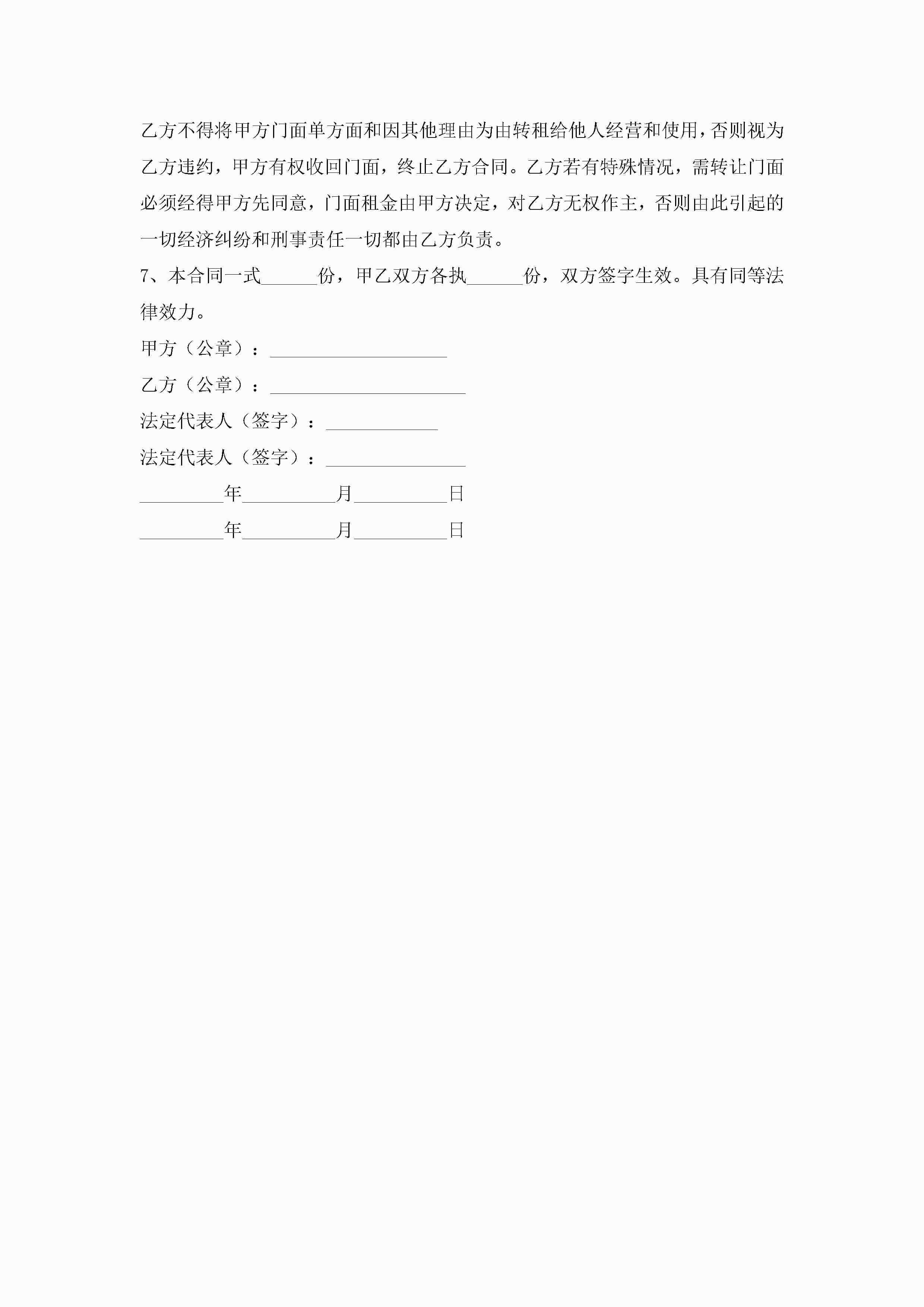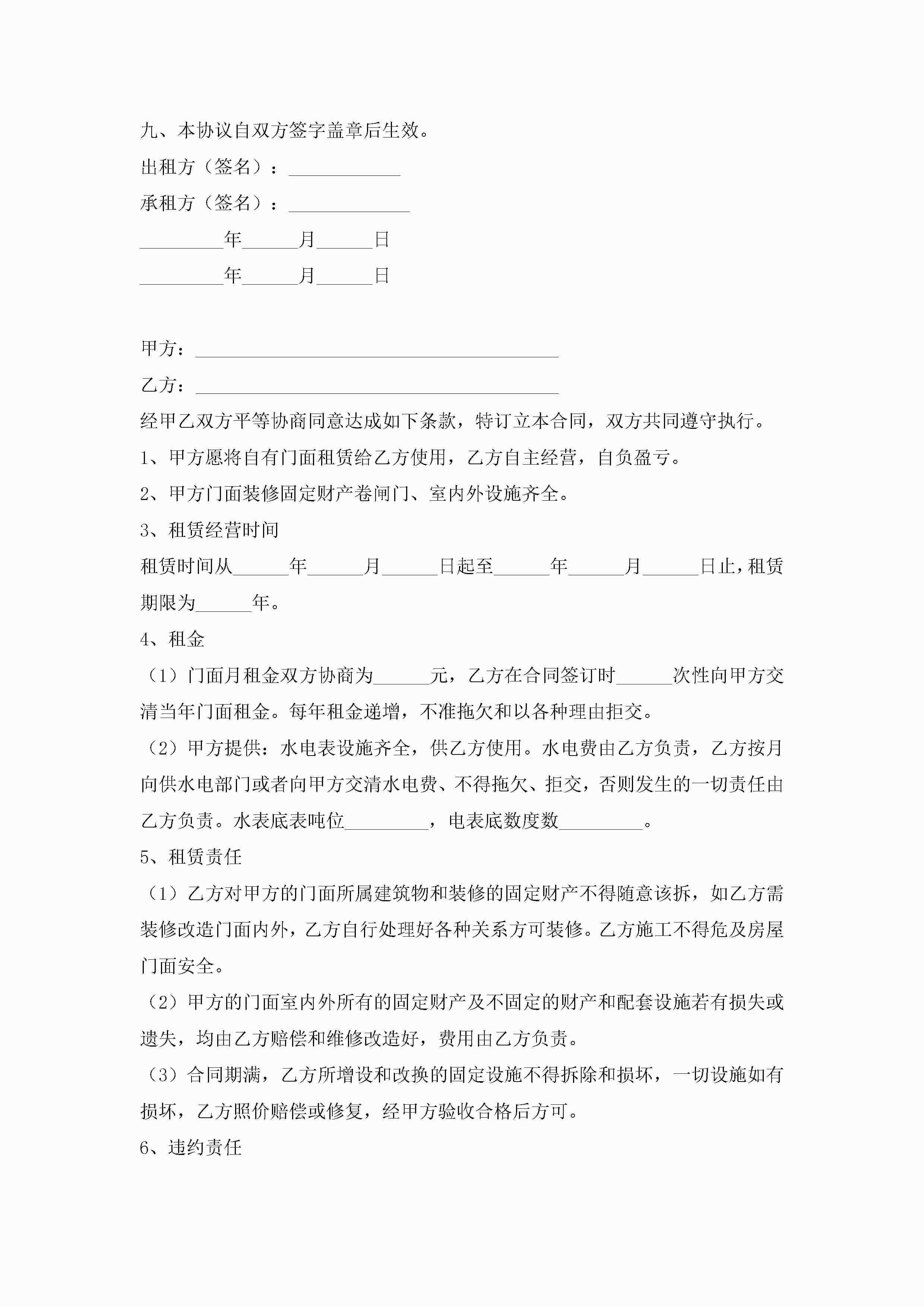 门面租赁协议合同5篇jugei3月23日 01:43发布关注189 门面租赁协议合同5篇此内容为付费资源,请付费后查看¥10.9 单篇文档限时特惠¥15个人会员开通企业会员开通立即下载无需登陆!可直接快捷下载单个模板付费资源© 版权声明THE ENDWord模板# 实用文档# 实用模板# 合同模板# 租赁合同 如有问题,可点击最底部“联系我们”联系客服 分享QQ空间微博QQ好友海报分享复制链接收藏