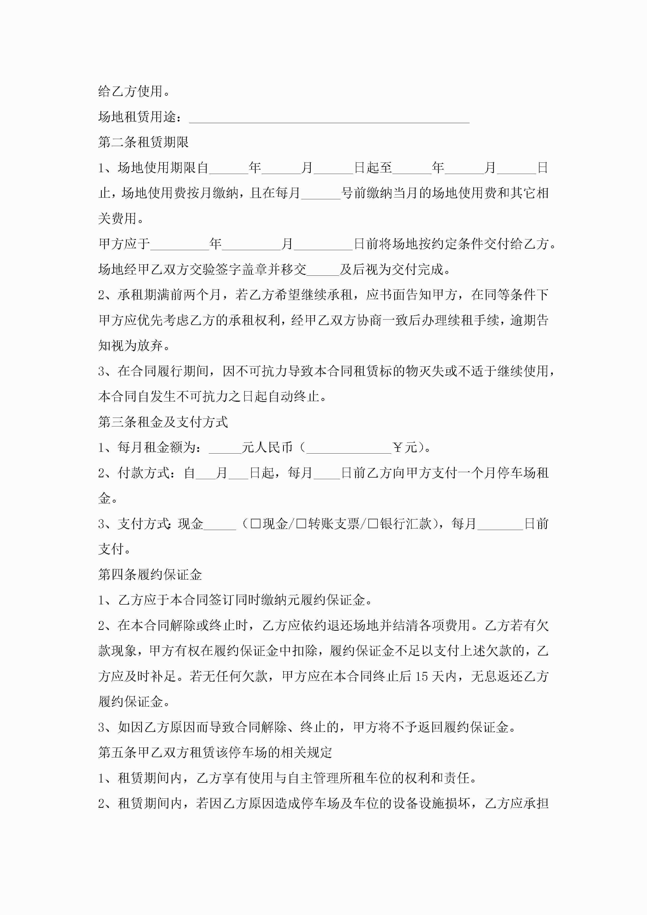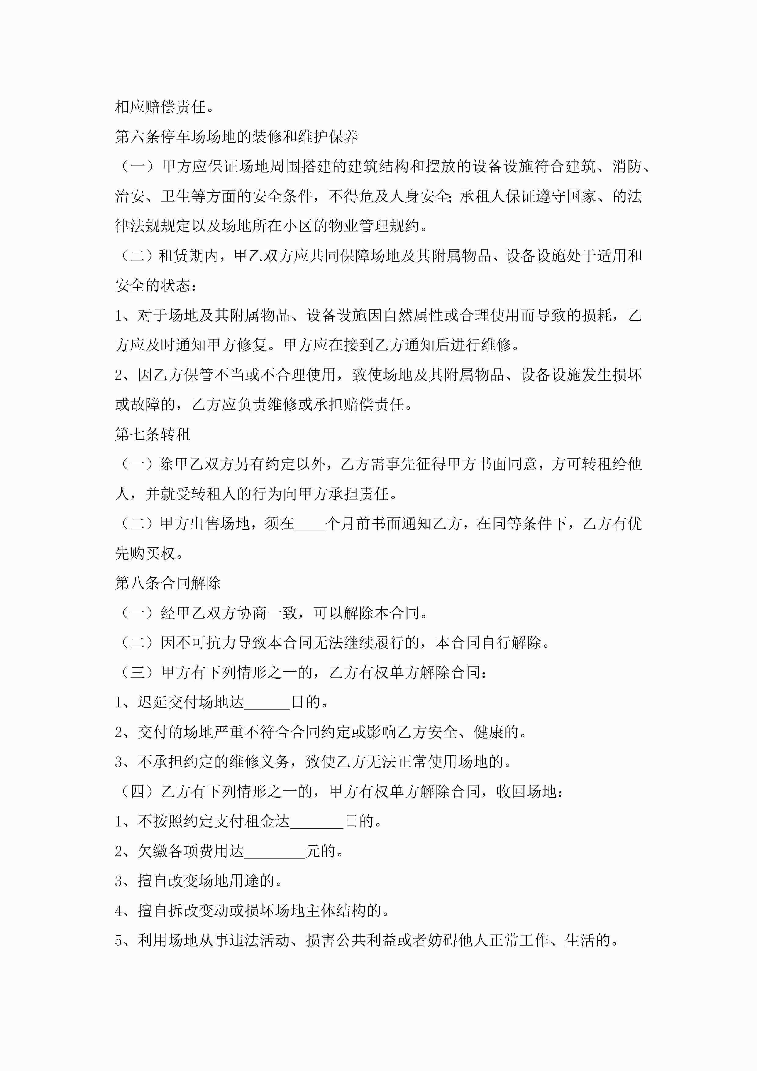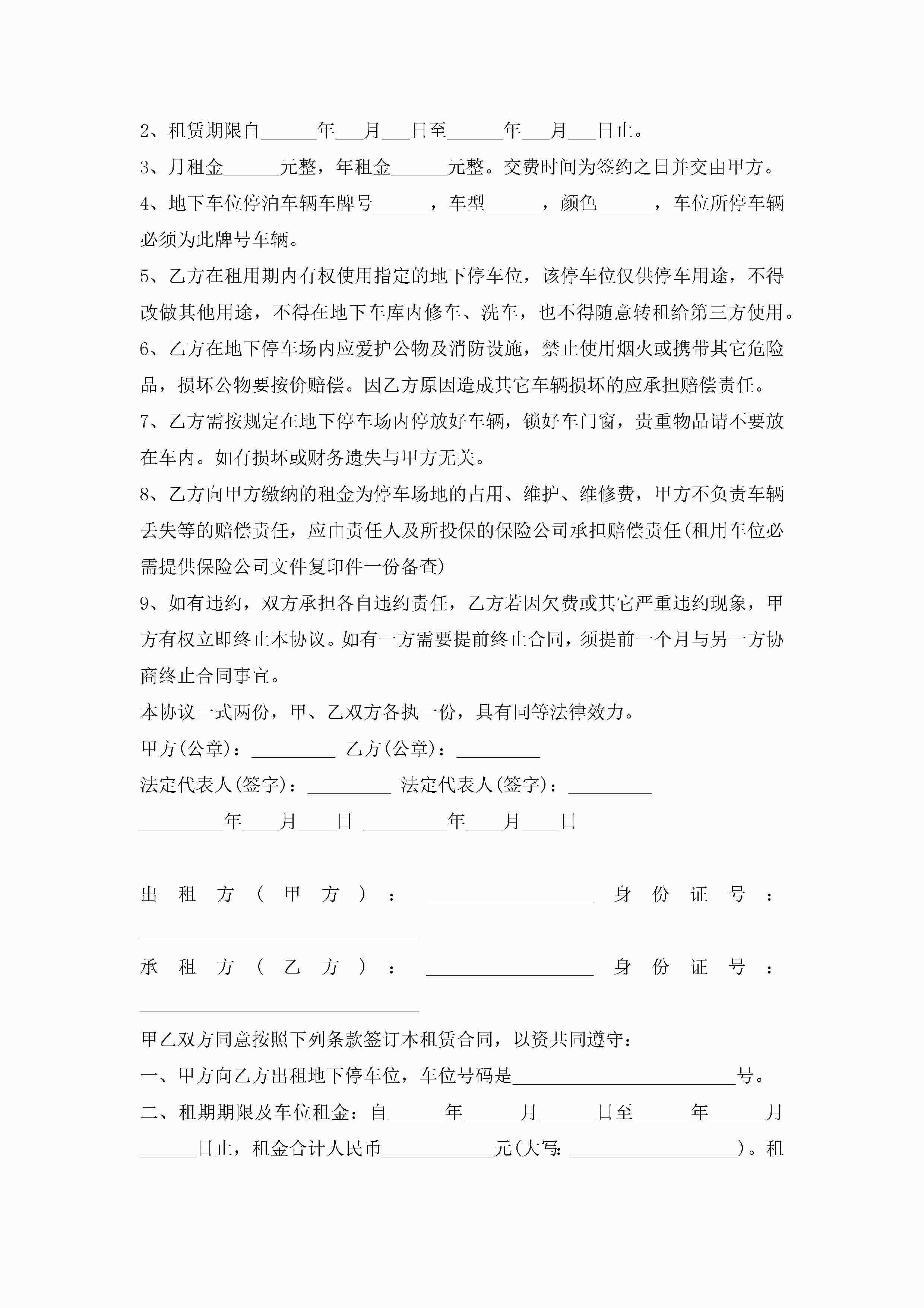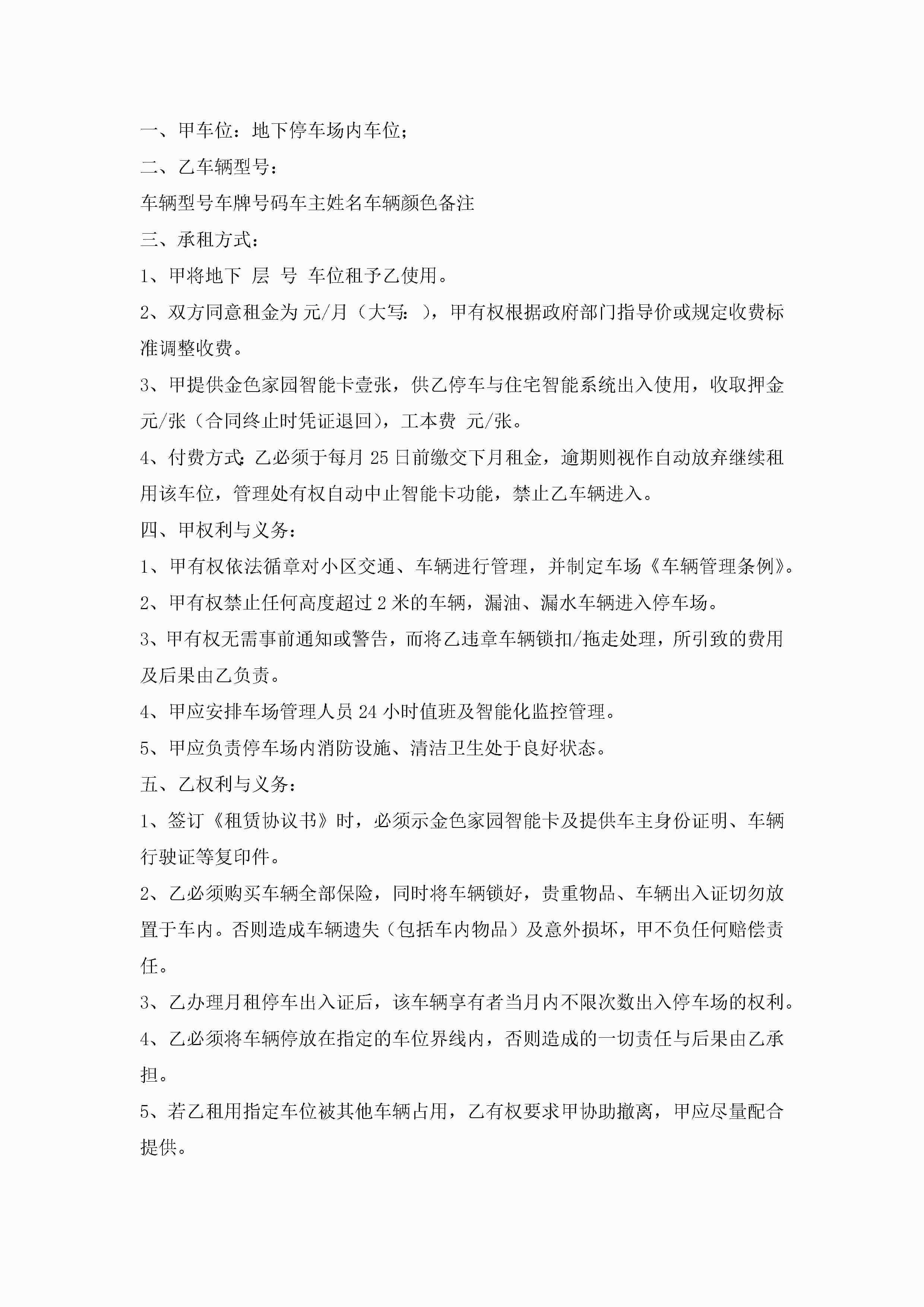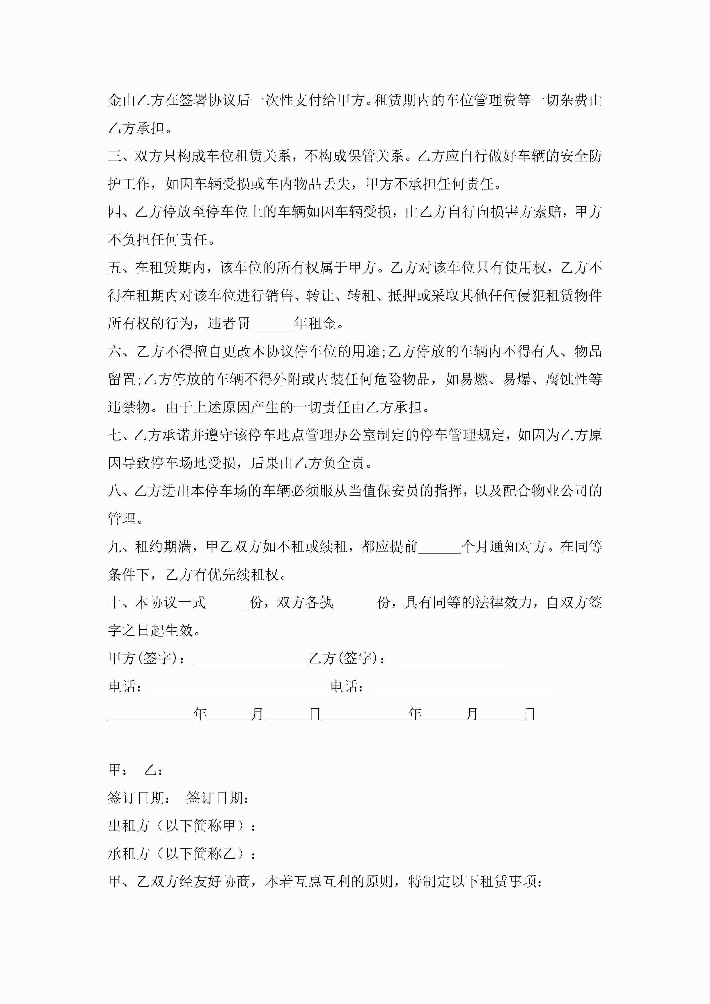 车位租赁合同协议书大全7篇jugei3月23日 01:43发布关注192 车位租赁合同协议书大全7篇此内容为付费资源,请付费后查看¥10.9 单篇文档限时特惠¥15个人会员开通企业会员开通立即下载无需登陆!可直接快捷下载单个模板付费资源© 版权声明THE ENDWord模板# 实用文档# 实用模板# 合同模板# 租赁合同 如有问题,可点击最底部“联系我们”联系客服 分享QQ空间微博QQ好友海报分享复制链接收藏