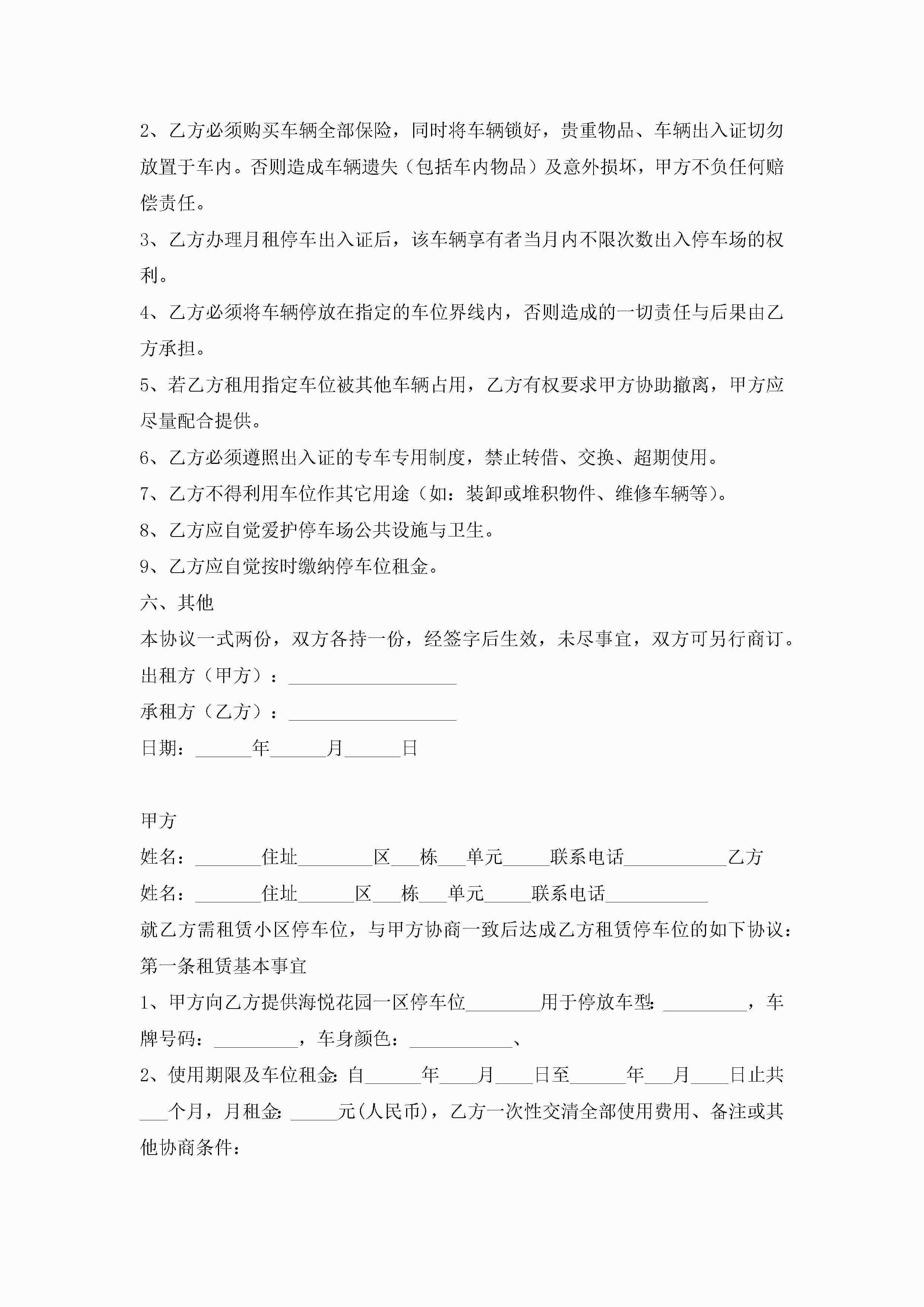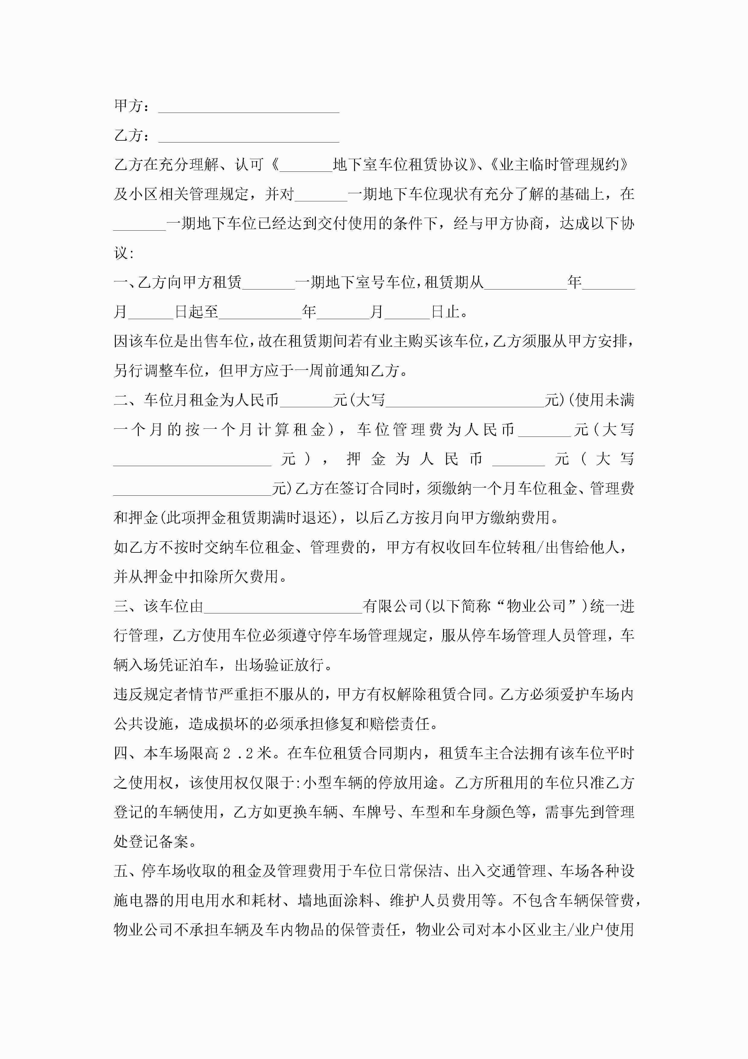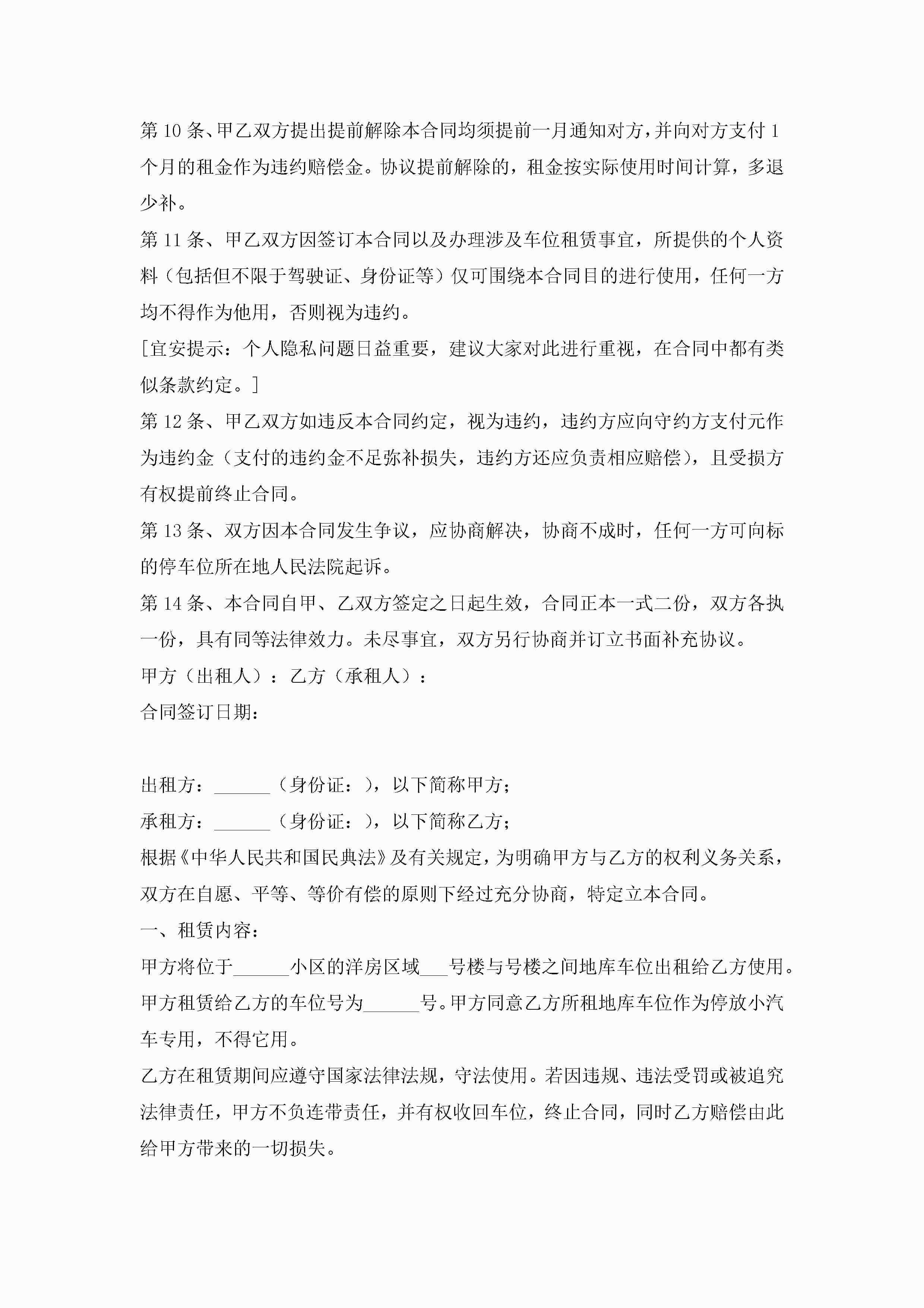 私人车位租赁合同范本7篇jugei3月23日 01:43发布关注256 私人车位租赁合同范本7篇此内容为付费资源,请付费后查看¥10.9 单篇文档限时特惠¥15个人会员开通企业会员开通立即下载无需登陆!可直接快捷下载单个模板付费资源© 版权声明THE ENDWord模板# 实用文档# 实用模板# 合同模板# 租赁合同 如有问题,可点击最底部“联系我们”联系客服 分享QQ空间微博QQ好友海报分享复制链接收藏