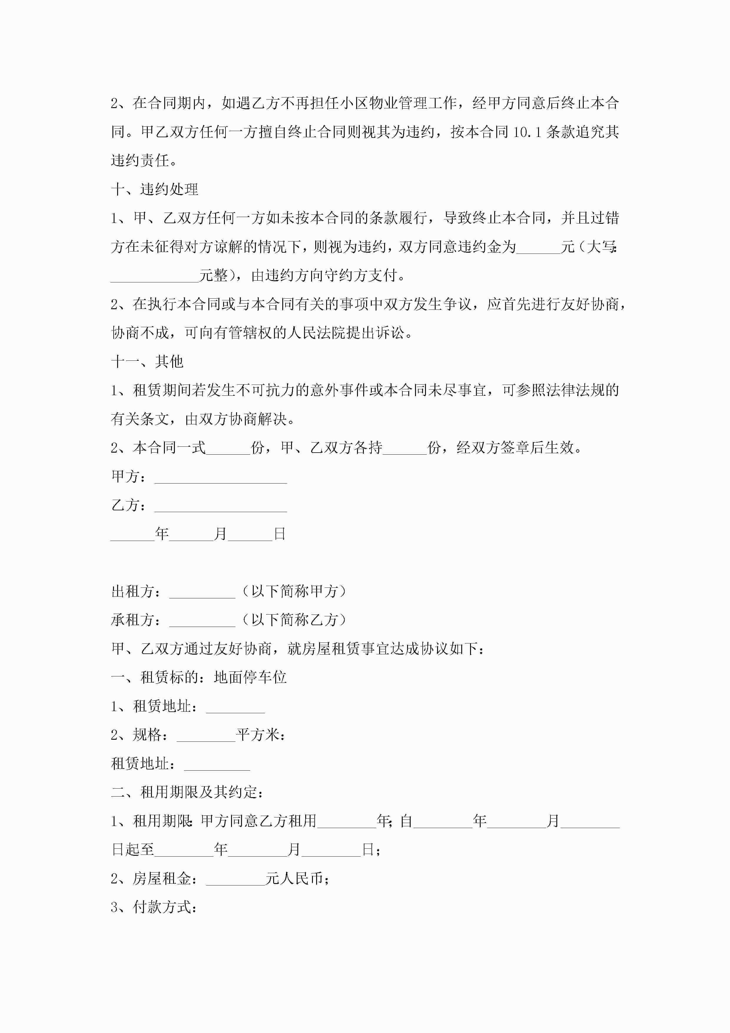 2022最新车位租赁合同7篇jugei3月23日 01:43发布关注370 2022最新车位租赁合同7篇此内容为付费资源,请付费后查看¥10.9 单篇文档限时特惠¥15个人会员开通企业会员开通立即下载无需登陆!可直接快捷下载单个模板付费资源© 版权声明THE ENDWord模板# 实用文档# 实用模板# 合同模板# 租赁合同 如有问题,可点击最底部“联系我们”联系客服 分享QQ空间微博QQ好友海报分享复制链接收藏