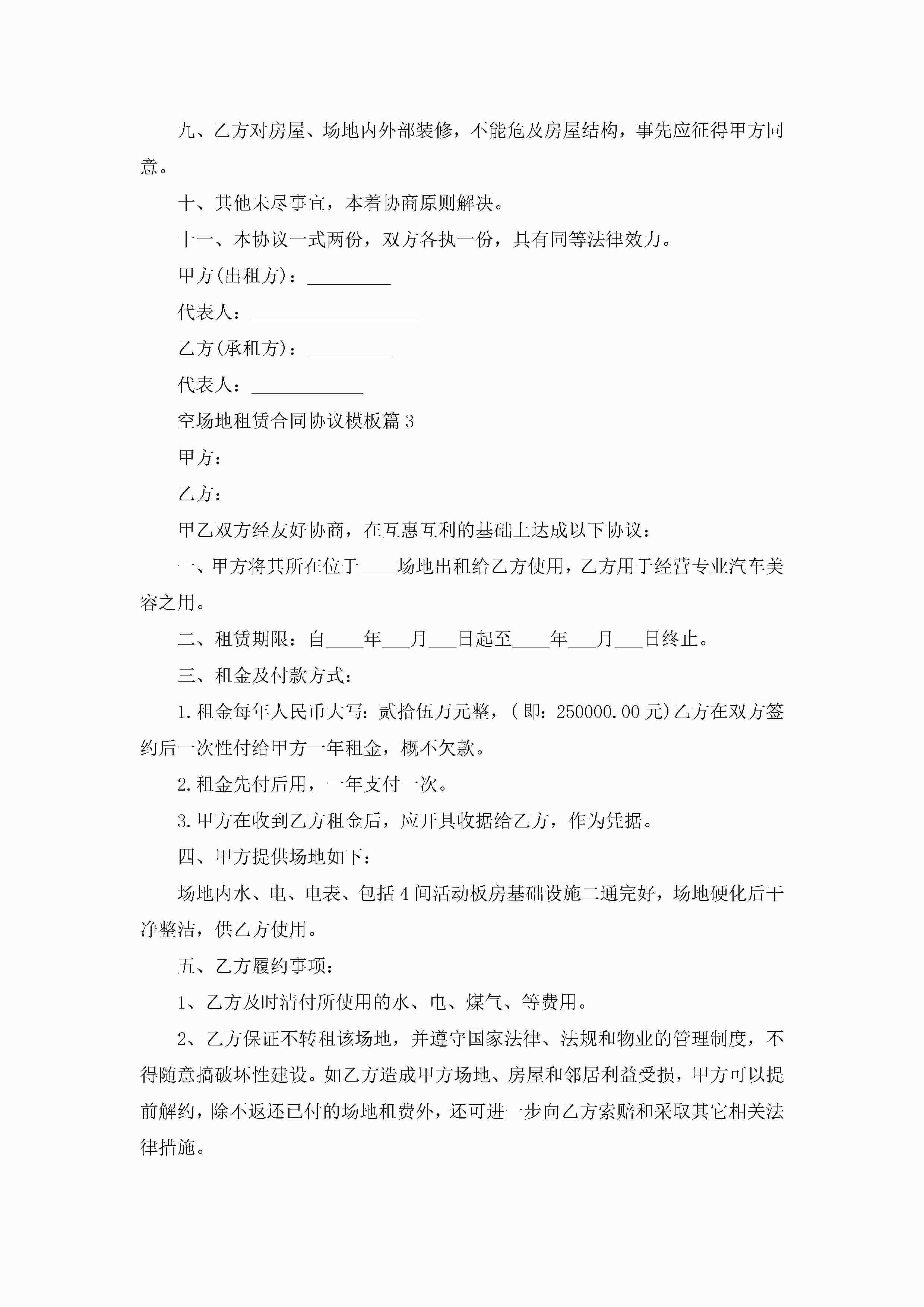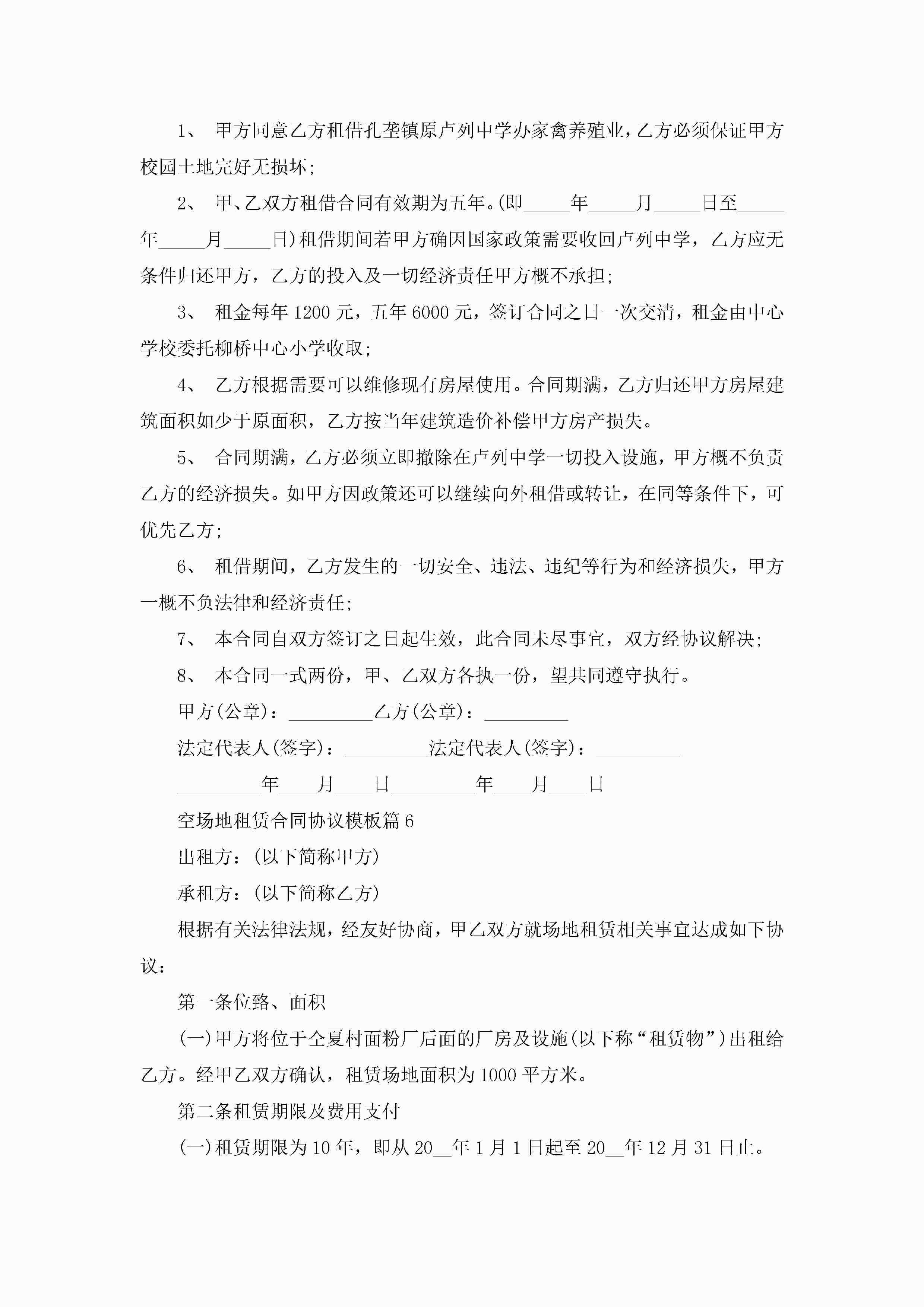 2023空场地租赁合同协议模板【10篇】jugei3月23日 01:43发布关注253 2023空场地租赁合同协议模板【10篇】此内容为付费资源,请付费后查看¥10.9 单篇文档限时特惠¥15个人会员开通企业会员开通立即下载无需登陆!可直接快捷下载单个模板付费资源© 版权声明THE ENDWord模板# 实用文档# 实用模板# 合同模板# 租赁合同 如有问题,可点击最底部“联系我们”联系客服 分享QQ空间微博QQ好友海报分享复制链接收藏