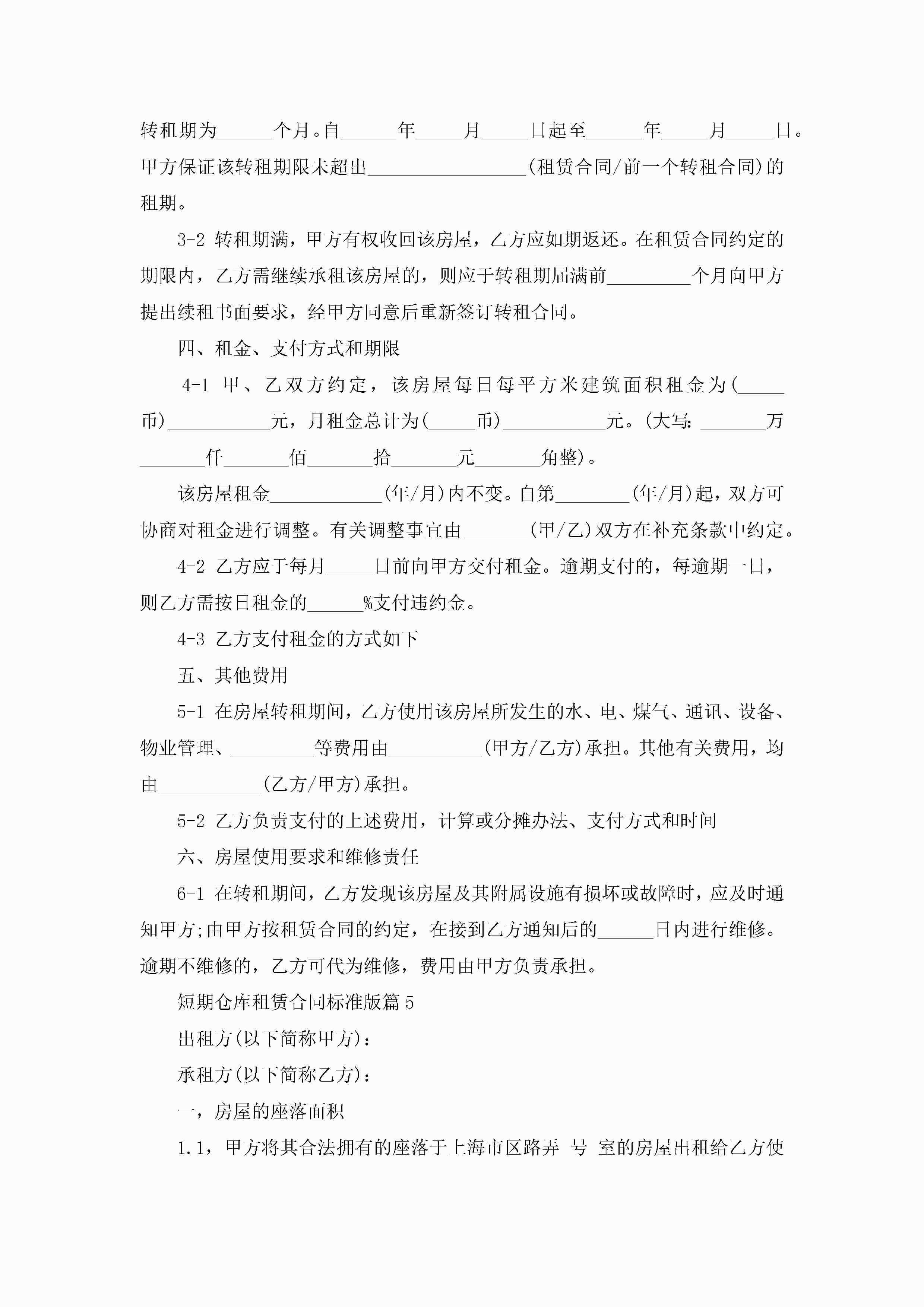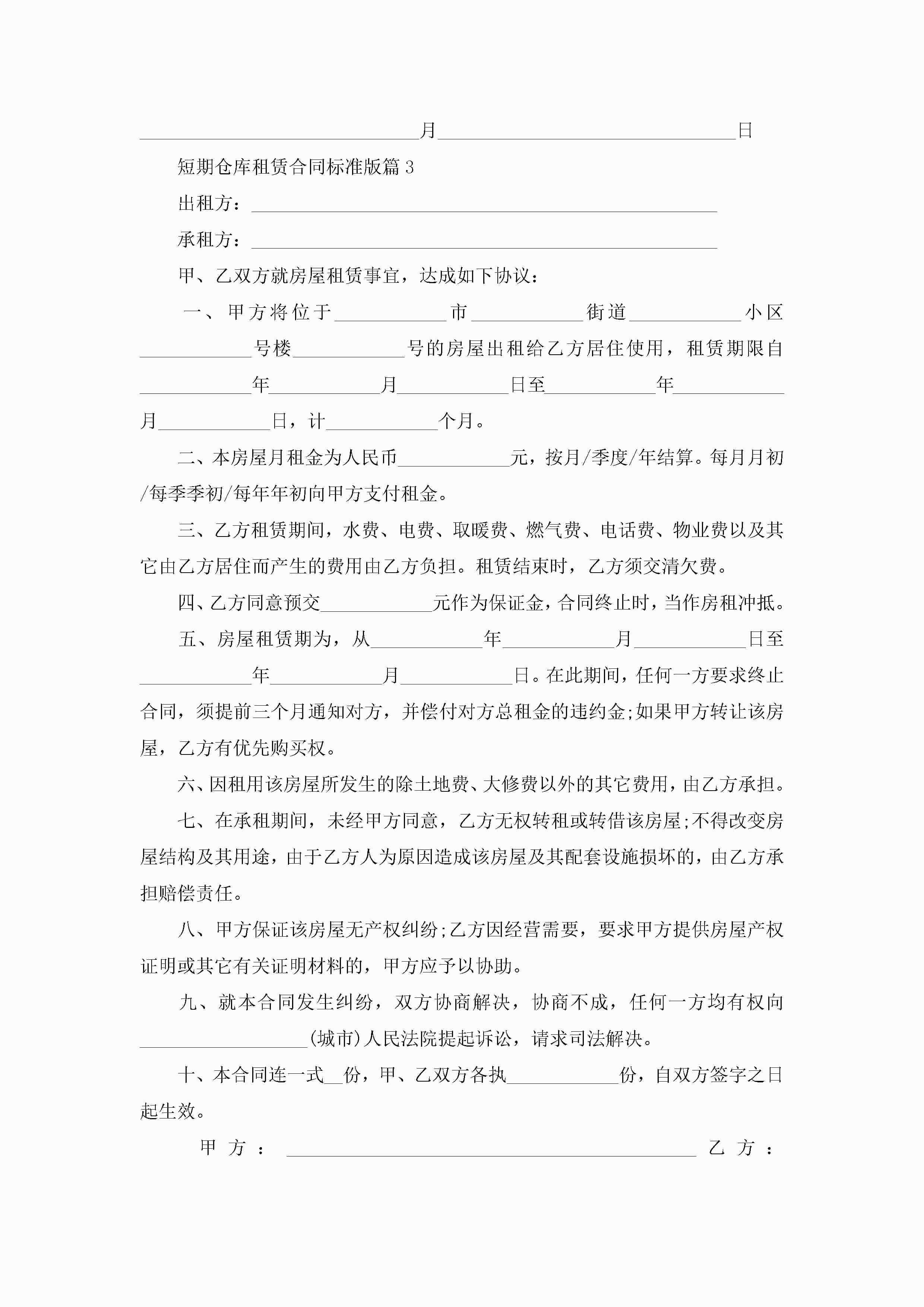 短期仓库租赁合同标准版(精选10篇)jugei3月23日 01:43发布关注269 短期仓库租赁合同标准版(精选10篇)此内容为付费资源,请付费后查看¥10.9 单篇文档限时特惠¥15个人会员开通企业会员开通立即下载无需登陆!可直接快捷下载单个模板付费资源© 版权声明THE ENDWord模板# 实用文档# 实用模板# 合同模板# 租赁合同 如有问题,可点击最底部“联系我们”联系客服 分享QQ空间微博QQ好友海报分享复制链接收藏