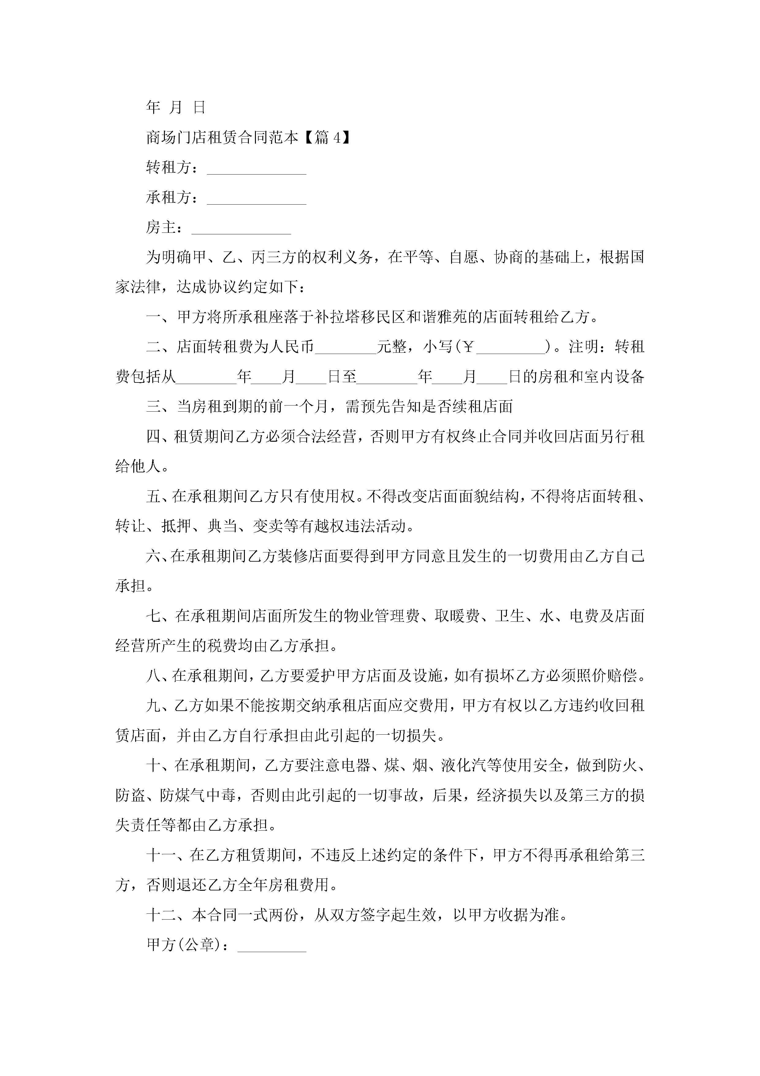 商场门店租赁合同范本7篇jugei3月23日 01:43发布关注350 商场门店租赁合同范本7篇此内容为付费资源,请付费后查看¥10.9 单篇文档限时特惠¥15个人会员开通企业会员开通立即下载无需登陆!可直接快捷下载单个模板付费资源© 版权声明THE ENDWord模板# 实用文档# 实用模板# 合同模板# 租赁合同 如有问题,可点击最底部“联系我们”联系客服 分享QQ空间微博QQ好友海报分享复制链接收藏