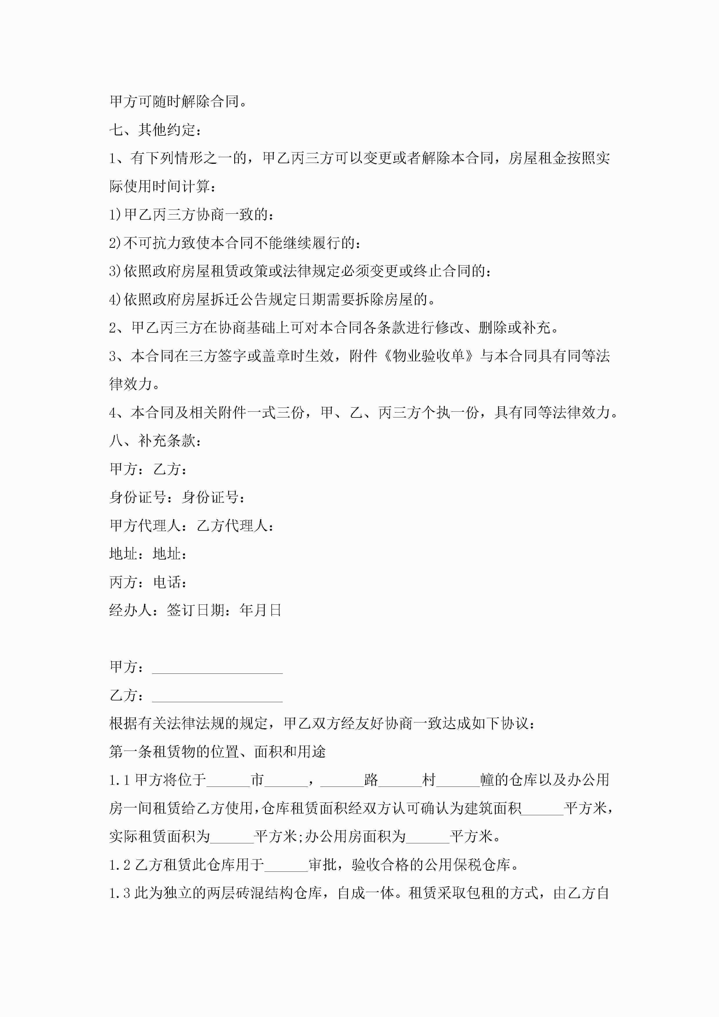 临时快递仓库租赁合同7篇jugei3月23日 01:43发布关注274 临时快递仓库租赁合同7篇此内容为付费资源,请付费后查看¥10.9 单篇文档限时特惠¥15个人会员开通企业会员开通立即下载无需登陆!可直接快捷下载单个模板付费资源© 版权声明THE ENDWord模板# 实用文档# 实用模板# 合同模板# 租赁合同 如有问题,可点击最底部“联系我们”联系客服 分享QQ空间微博QQ好友海报分享复制链接收藏
