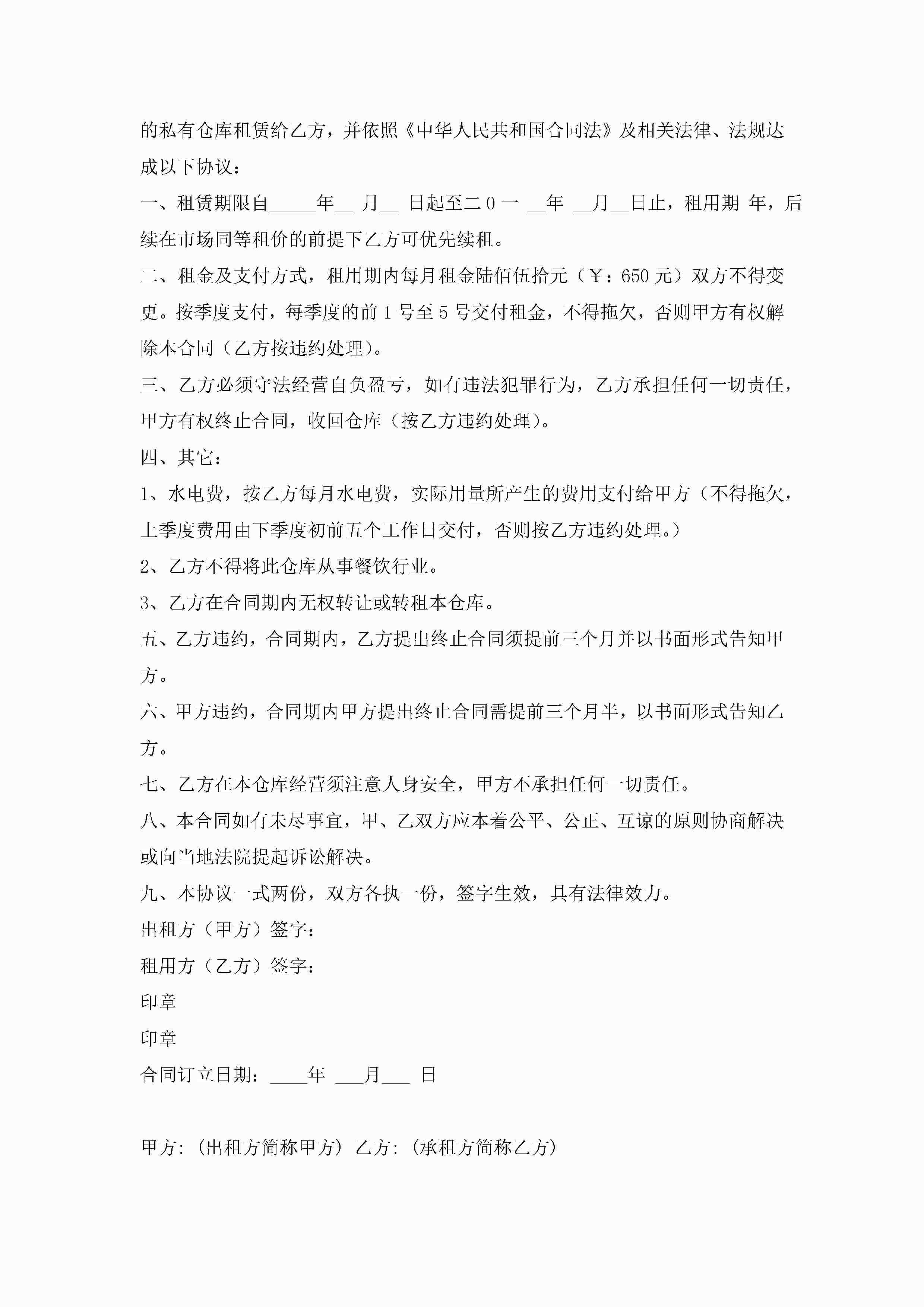 物流暂存仓库租赁合同7篇jugei3月23日 01:43发布关注414 物流暂存仓库租赁合同7篇此内容为付费资源,请付费后查看¥10.9 单篇文档限时特惠¥15个人会员开通企业会员开通立即下载无需登陆!可直接快捷下载单个模板付费资源© 版权声明THE ENDWord模板# 实用文档# 实用模板# 合同模板# 租赁合同 如有问题,可点击最底部“联系我们”联系客服 分享QQ空间微博QQ好友海报分享复制链接收藏