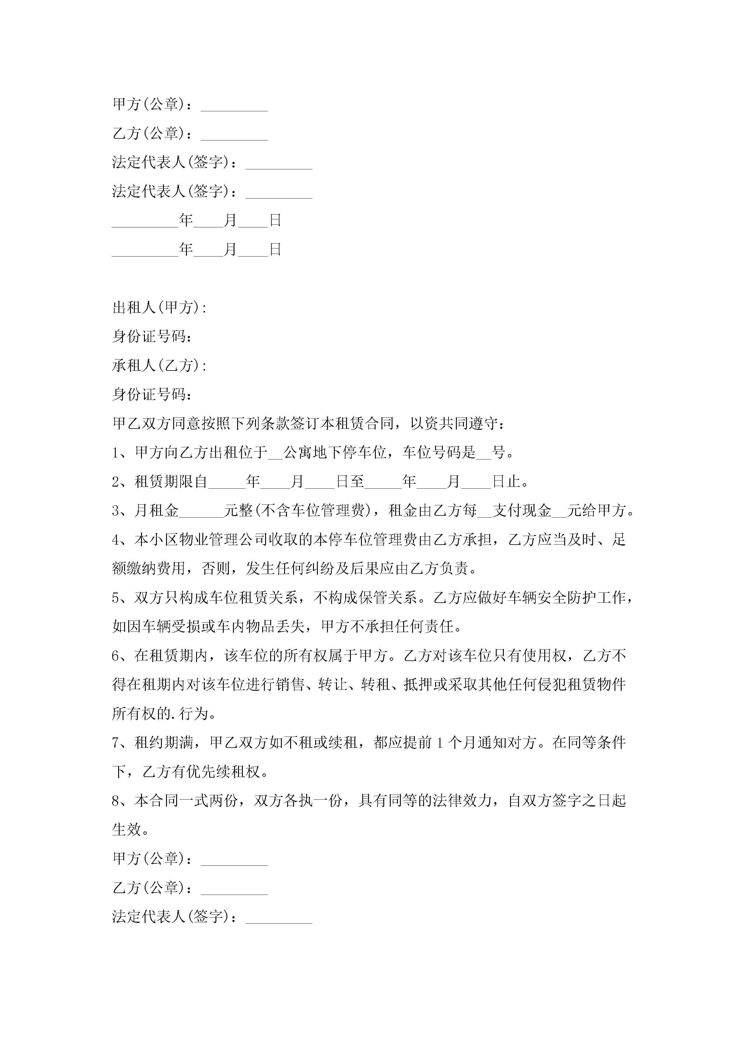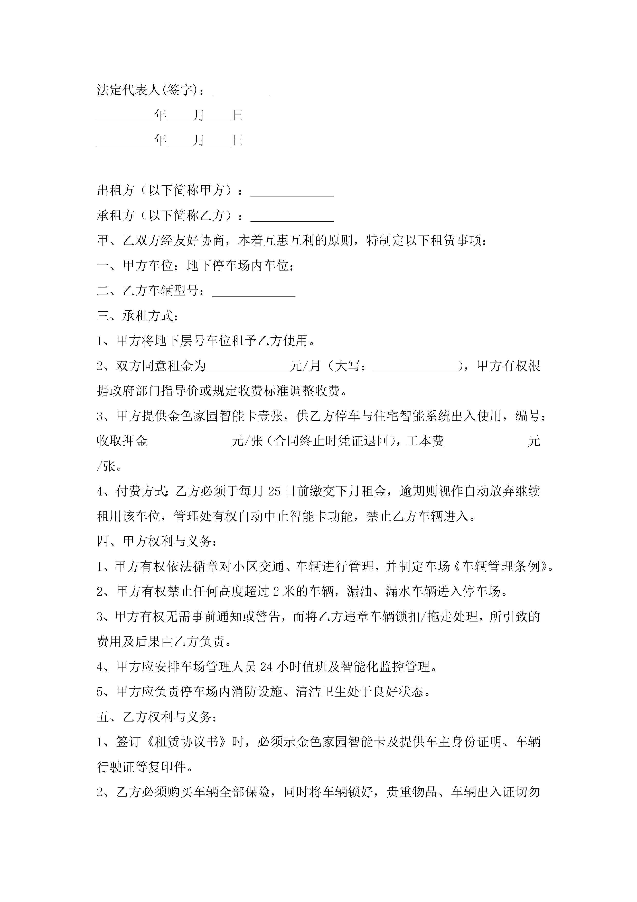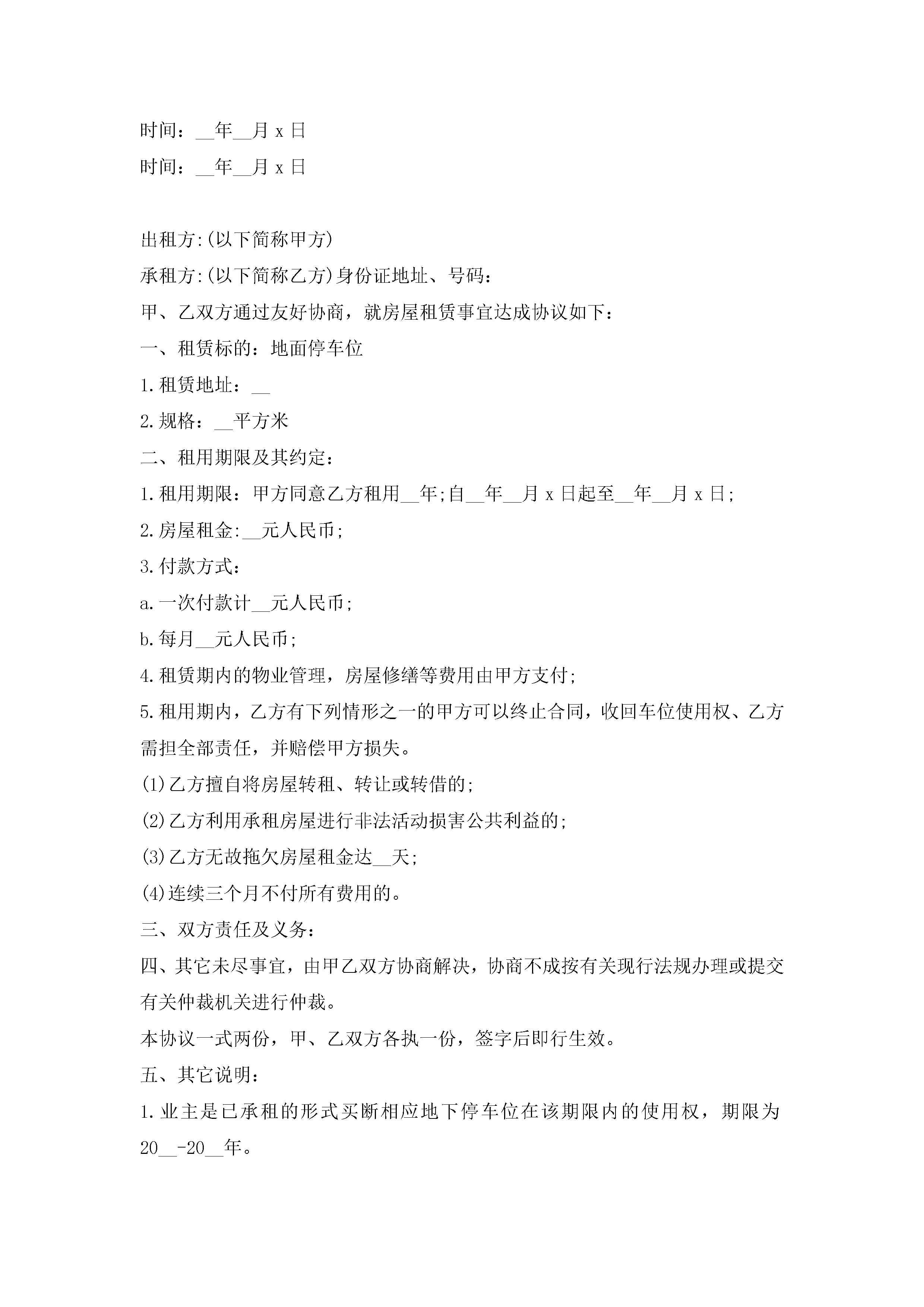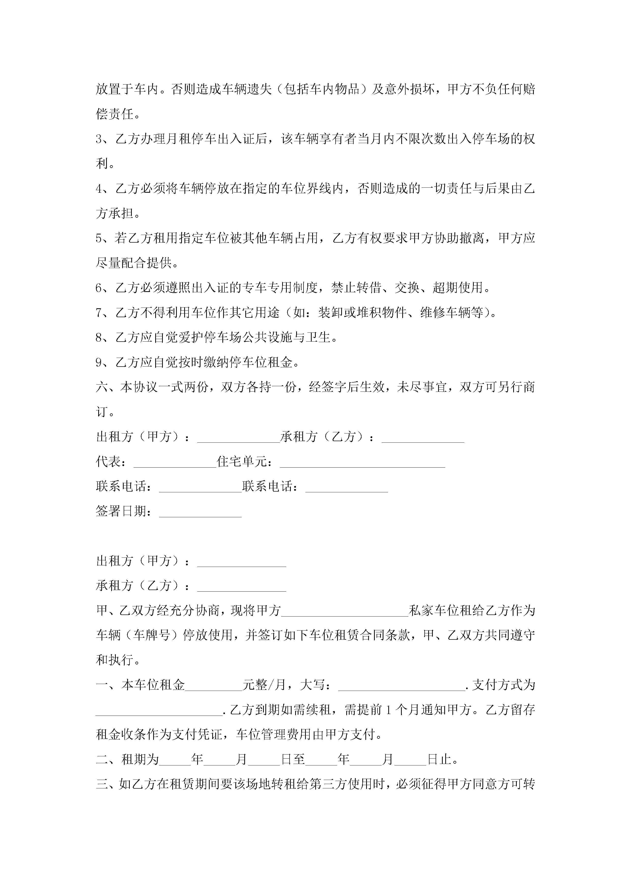 停车位租赁合同协议书7篇jugei3月23日 01:43发布关注187 停车位租赁合同协议书7篇此内容为付费资源,请付费后查看¥10.9 单篇文档限时特惠¥15个人会员开通企业会员开通立即下载无需登陆!可直接快捷下载单个模板付费资源© 版权声明THE ENDWord模板# 实用文档# 实用模板# 合同模板# 租赁合同 如有问题,可点击最底部“联系我们”联系客服 分享QQ空间微博QQ好友海报分享复制链接收藏