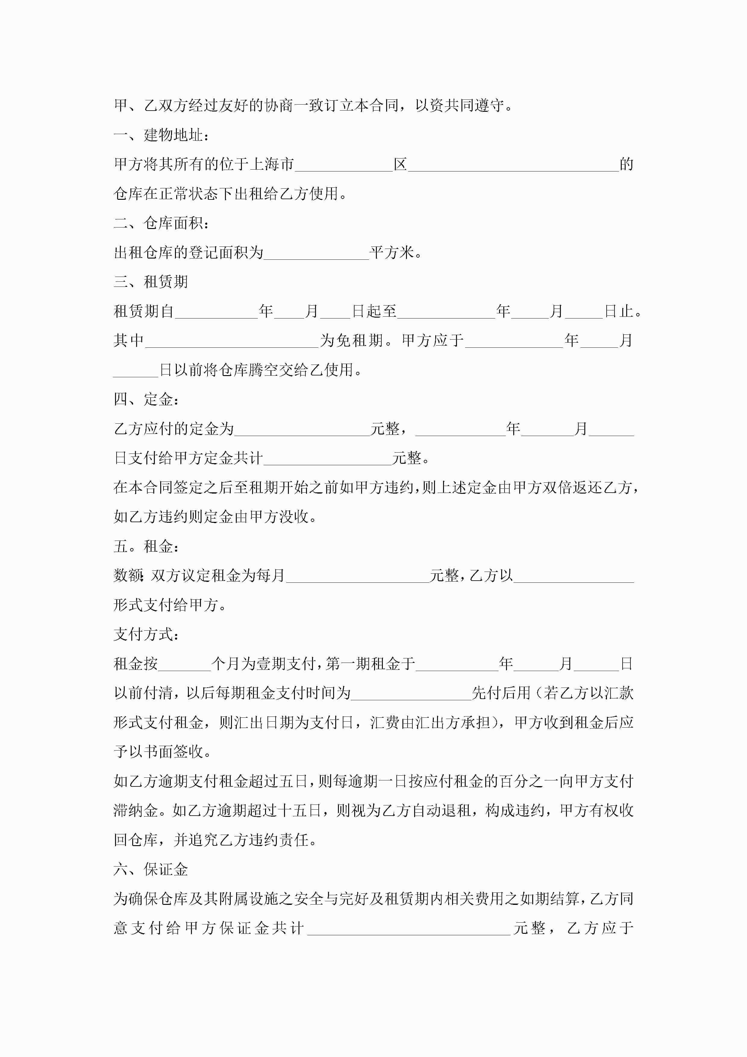 上海物流仓库租赁合同大全7篇jugei3月23日 01:43发布关注352 上海物流仓库租赁合同大全7篇此内容为付费资源,请付费后查看¥10.9 单篇文档限时特惠¥15个人会员开通企业会员开通立即下载无需登陆!可直接快捷下载单个模板付费资源© 版权声明THE ENDWord模板# 实用文档# 实用模板# 合同模板# 租赁合同 如有问题,可点击最底部“联系我们”联系客服 分享QQ空间微博QQ好友海报分享复制链接收藏