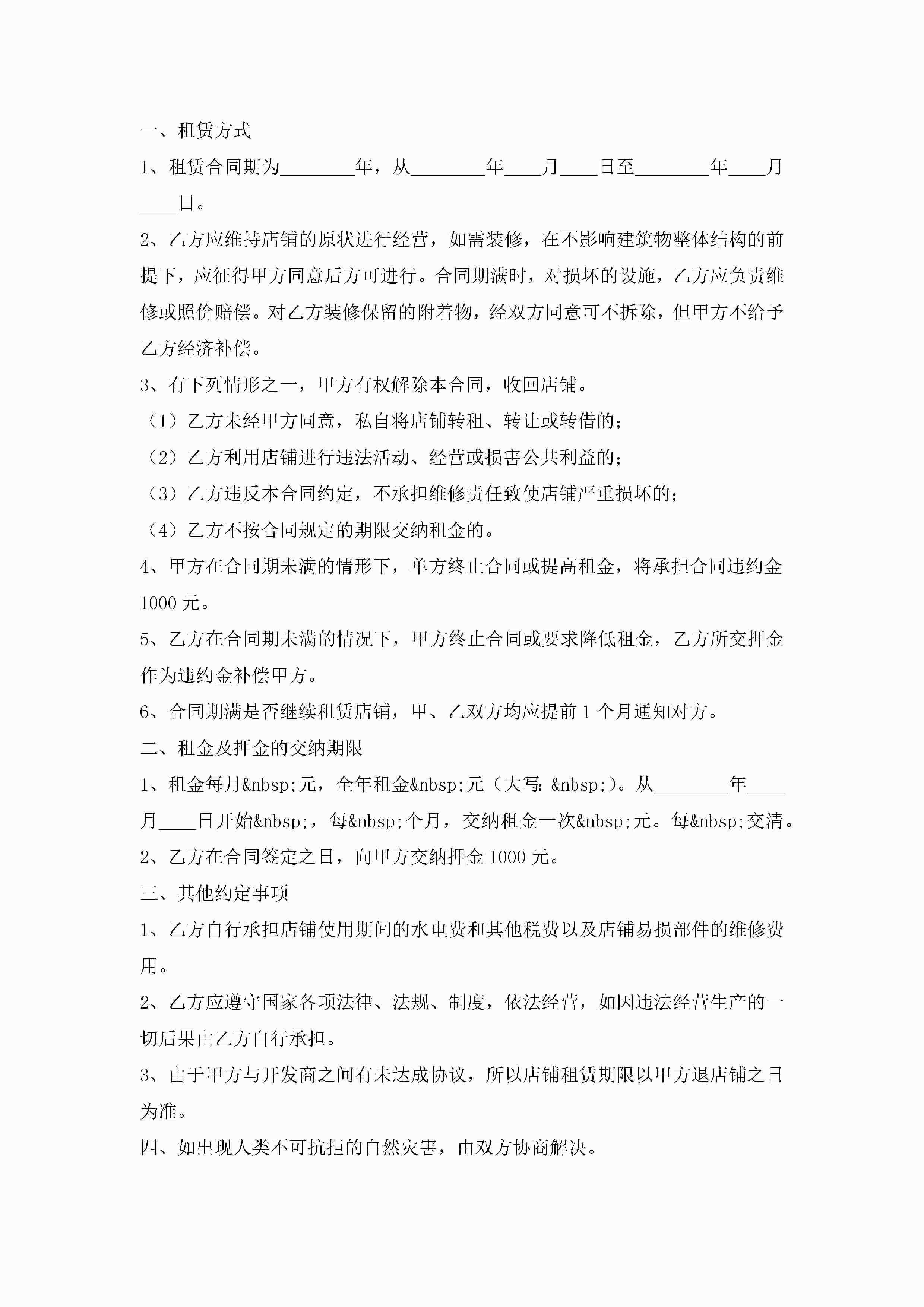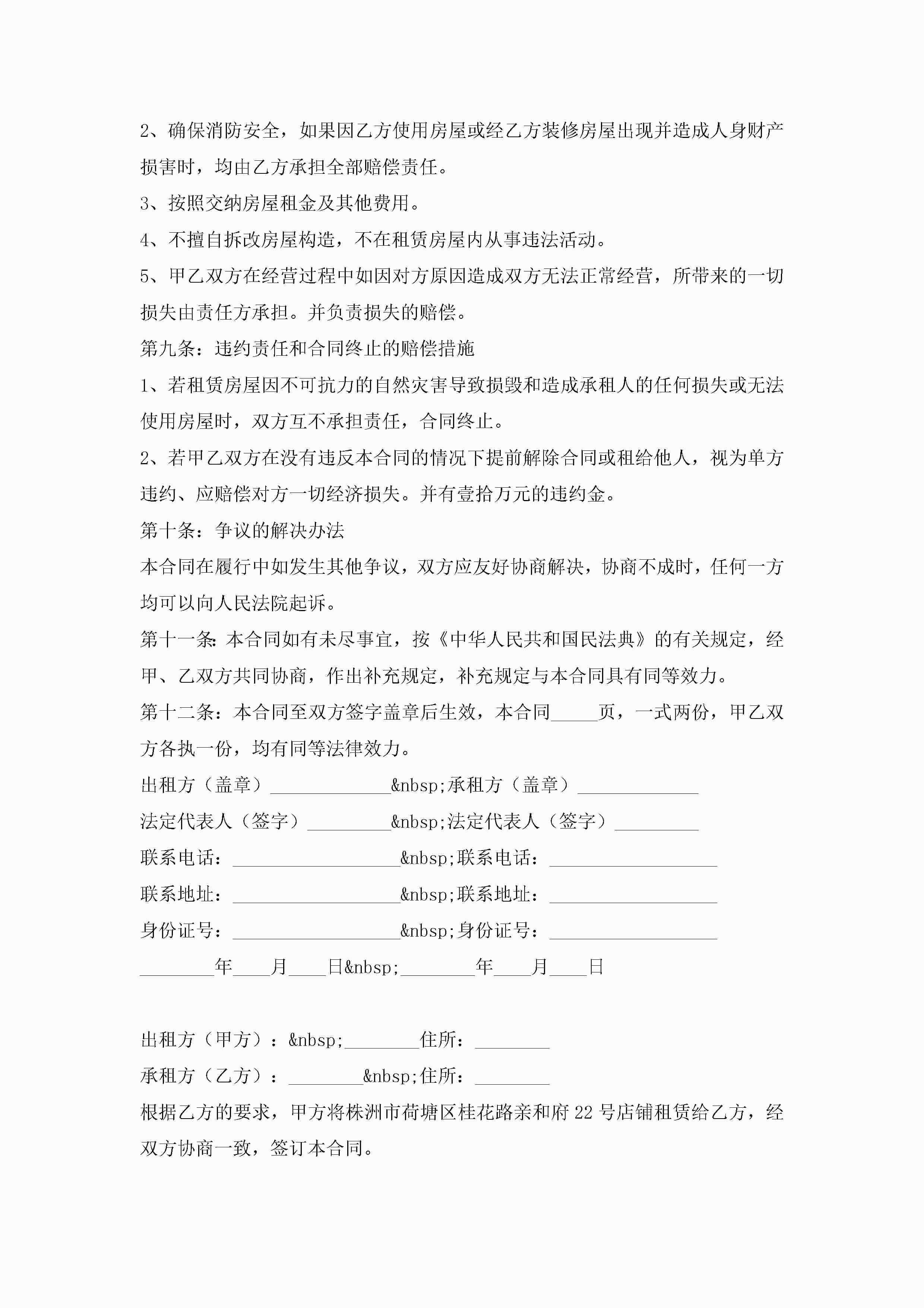 2022商铺租赁合同通用5篇jugei3月23日 01:43发布关注185 2022商铺租赁合同通用5篇此内容为付费资源,请付费后查看¥10.9 单篇文档限时特惠¥15个人会员开通企业会员开通立即下载无需登陆!可直接快捷下载单个模板付费资源© 版权声明THE ENDWord模板# 实用文档# 实用模板# 合同模板# 租赁合同 如有问题,可点击最底部“联系我们”联系客服 分享QQ空间微博QQ好友海报分享复制链接收藏
