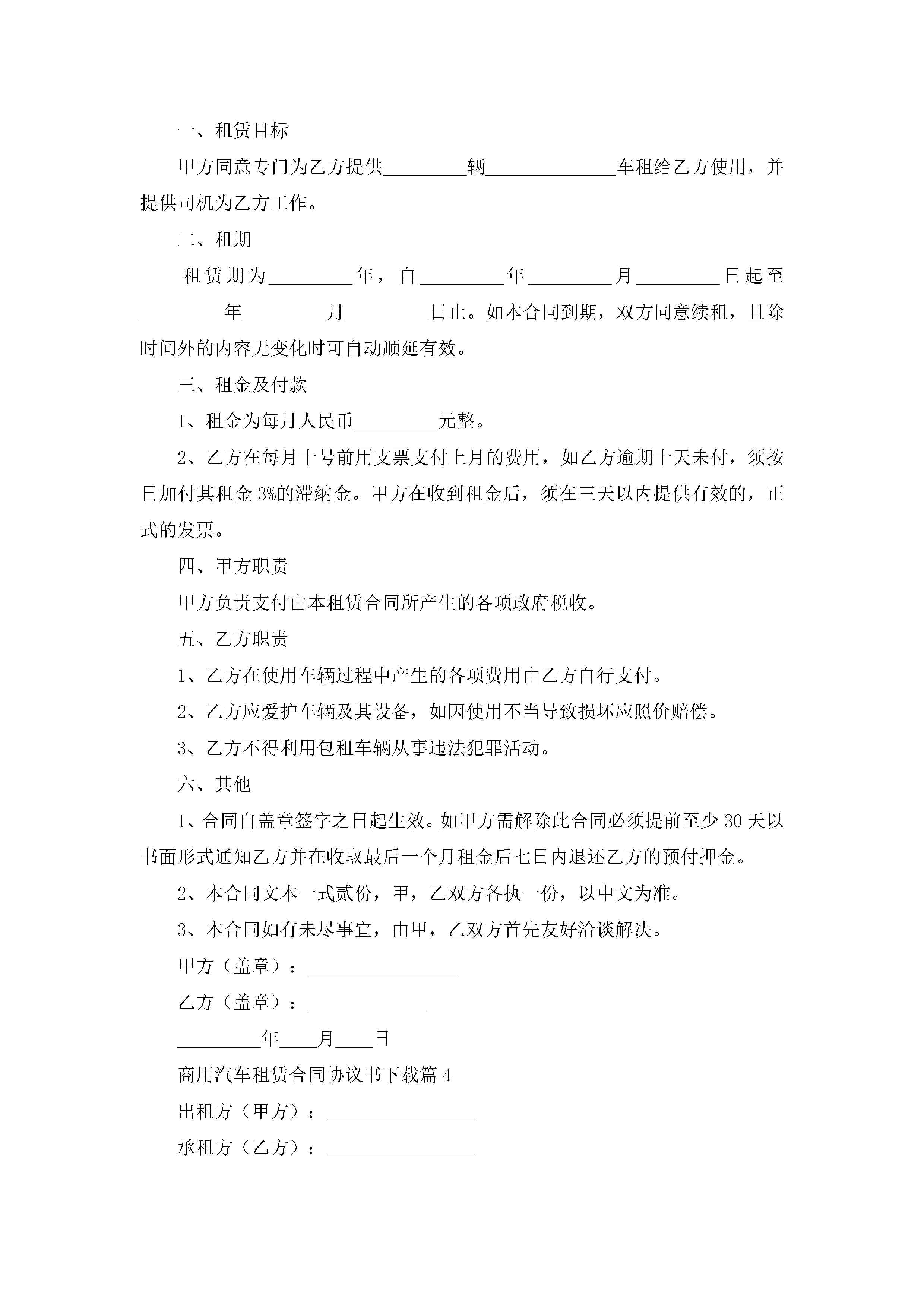 商用汽车租赁合同协议书下载7篇jugei3月23日 01:43发布关注250 商用汽车租赁合同协议书下载7篇此内容为付费资源,请付费后查看¥10.9 单篇文档限时特惠¥15个人会员开通企业会员开通立即下载无需登陆!可直接快捷下载单个模板付费资源© 版权声明THE ENDWord模板# 实用文档# 实用模板# 合同模板# 租赁合同 如有问题,可点击最底部“联系我们”联系客服 分享QQ空间微博QQ好友海报分享复制链接收藏
