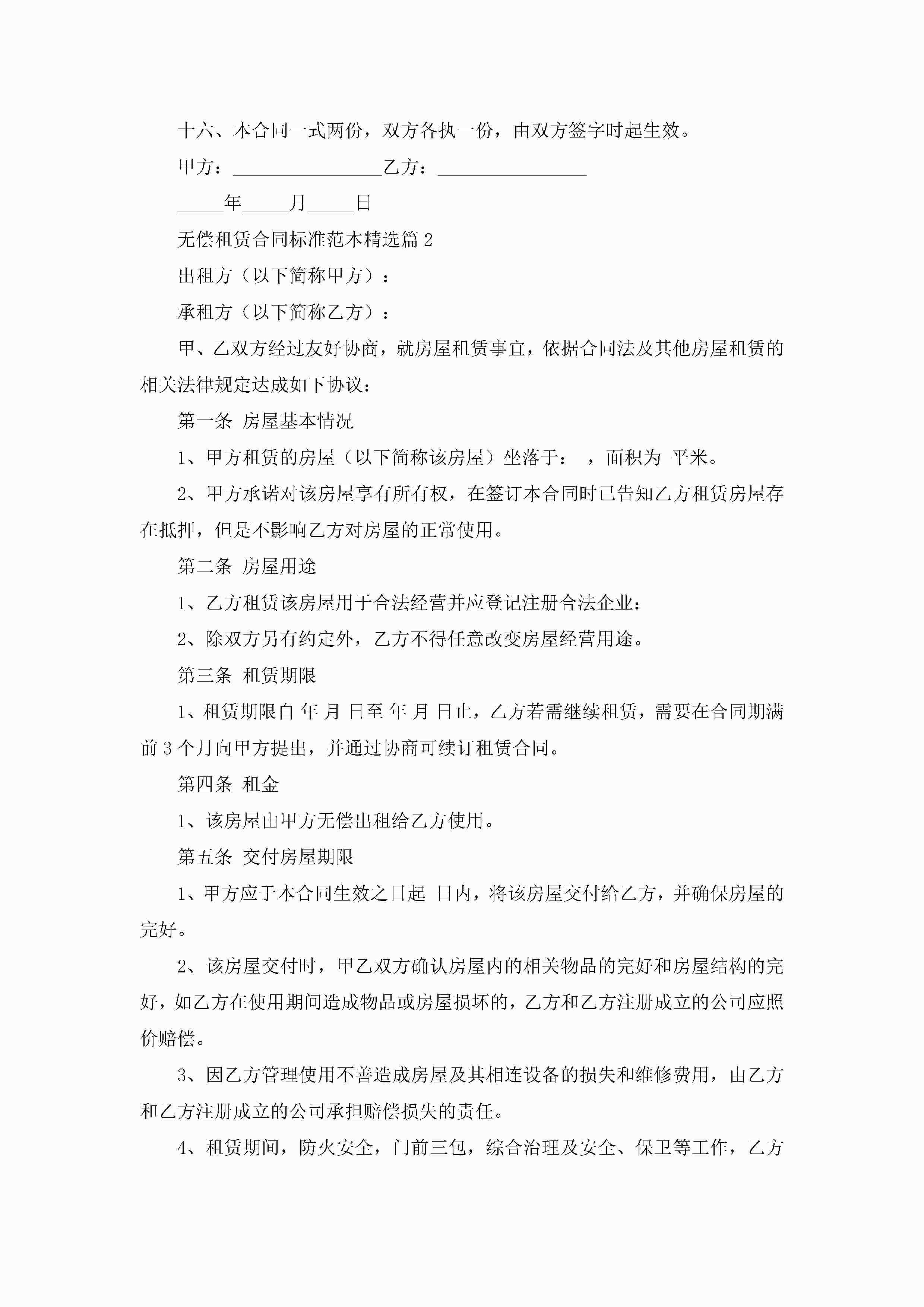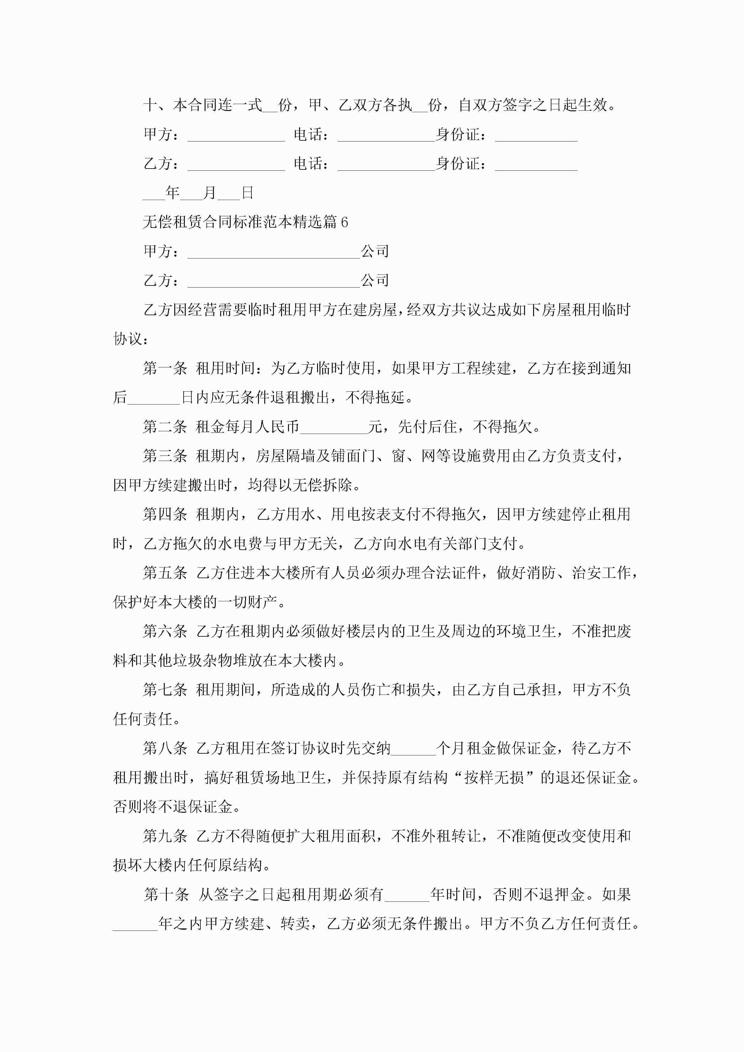 无偿租赁合同标准范本【通用7篇】jugei3月23日 01:43发布关注189 无偿租赁合同标准范本【通用7篇】此内容为付费资源,请付费后查看¥10.9 单篇文档限时特惠¥15个人会员开通企业会员开通立即下载无需登陆!可直接快捷下载单个模板付费资源© 版权声明THE ENDWord模板# 实用文档# 实用模板# 合同模板# 租赁合同 如有问题,可点击最底部“联系我们”联系客服 分享QQ空间微博QQ好友海报分享复制链接收藏