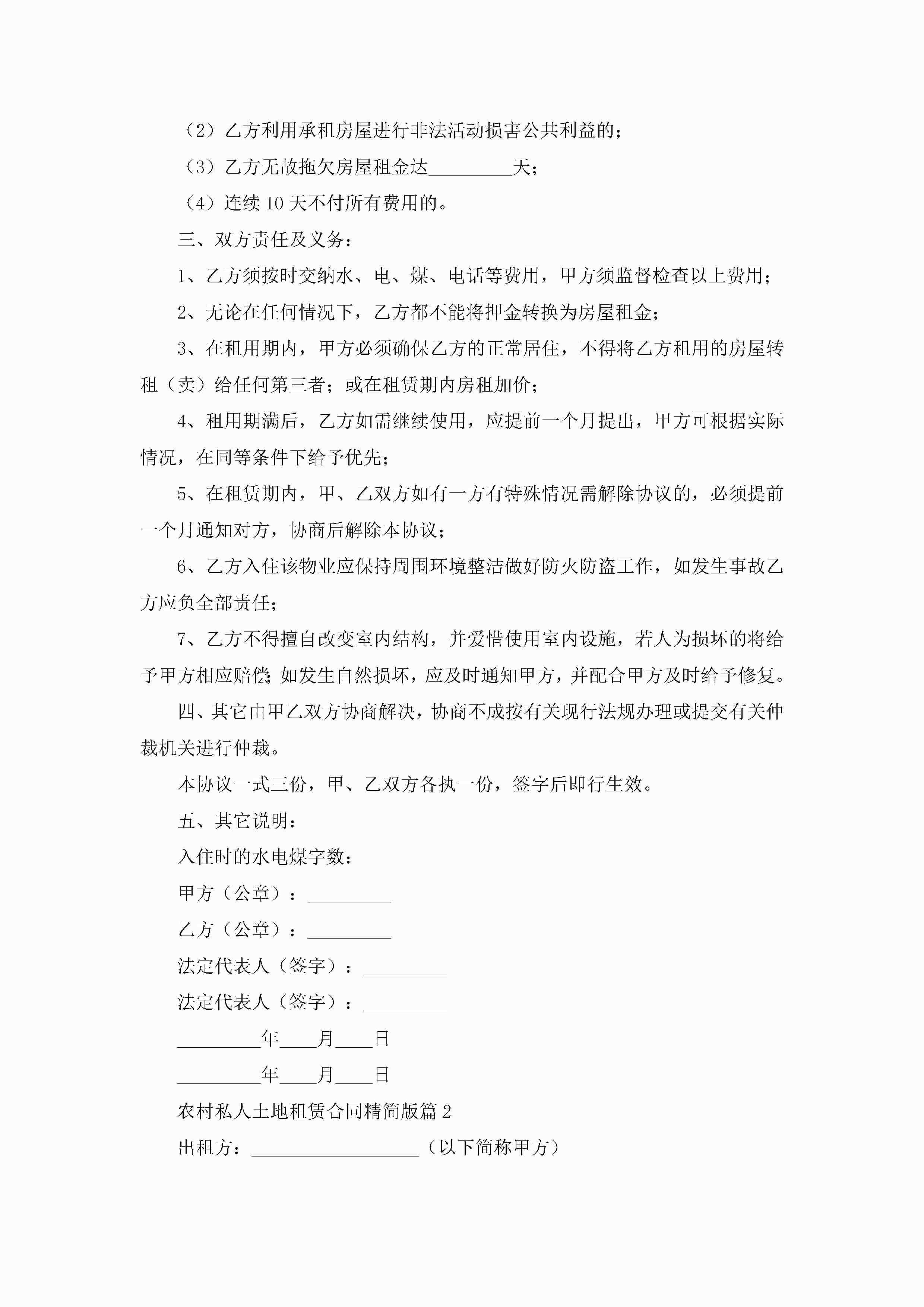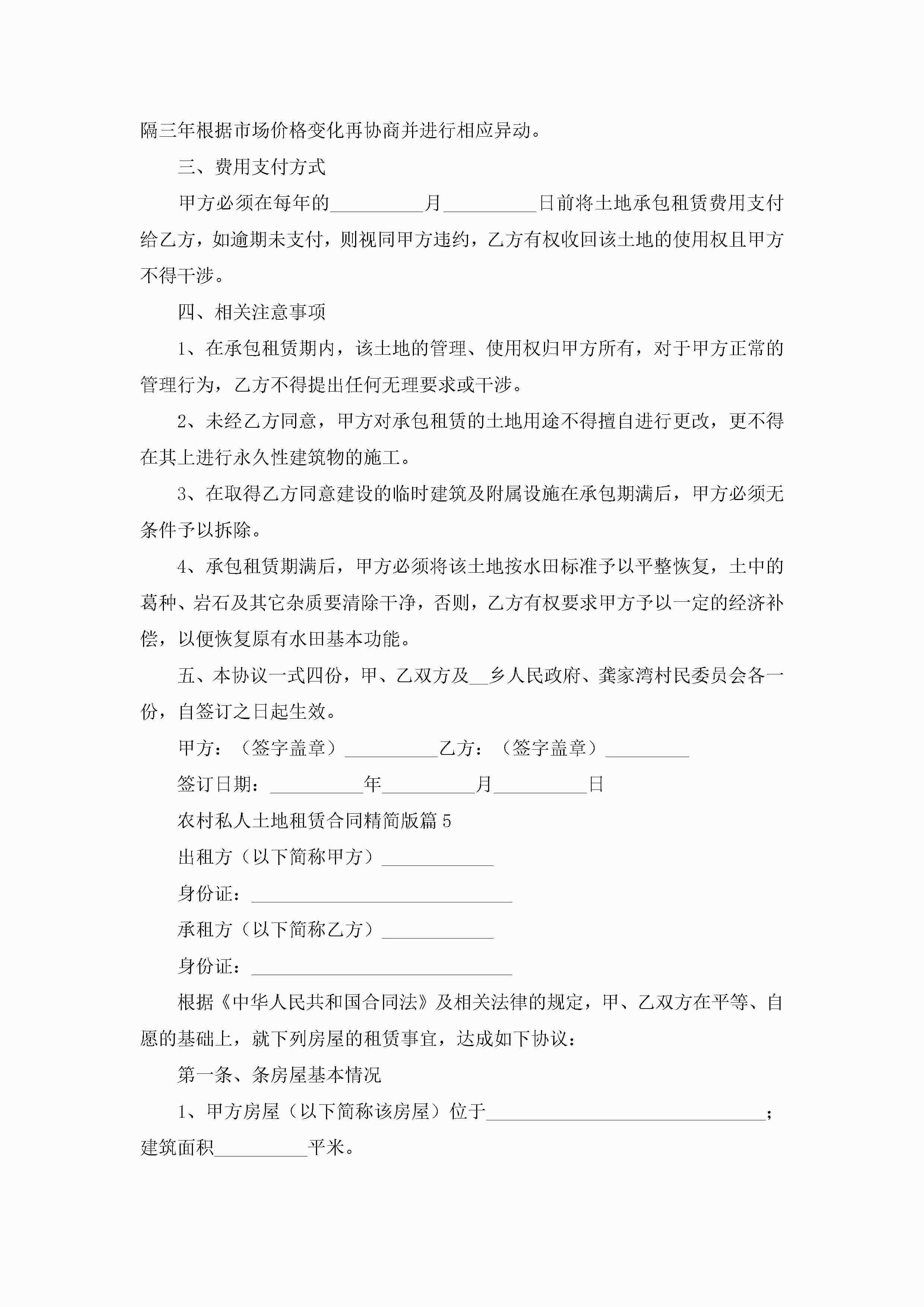 农村私人土地租赁合同精简版(精选7篇)jugei3月23日 01:43发布关注327 农村私人土地租赁合同精简版(精选7篇)此内容为付费资源,请付费后查看¥10.9 单篇文档限时特惠¥15个人会员开通企业会员开通立即下载无需登陆!可直接快捷下载单个模板付费资源© 版权声明THE ENDWord模板# 实用文档# 实用模板# 合同模板# 租赁合同 如有问题,可点击最底部“联系我们”联系客服 分享QQ空间微博QQ好友海报分享复制链接收藏
