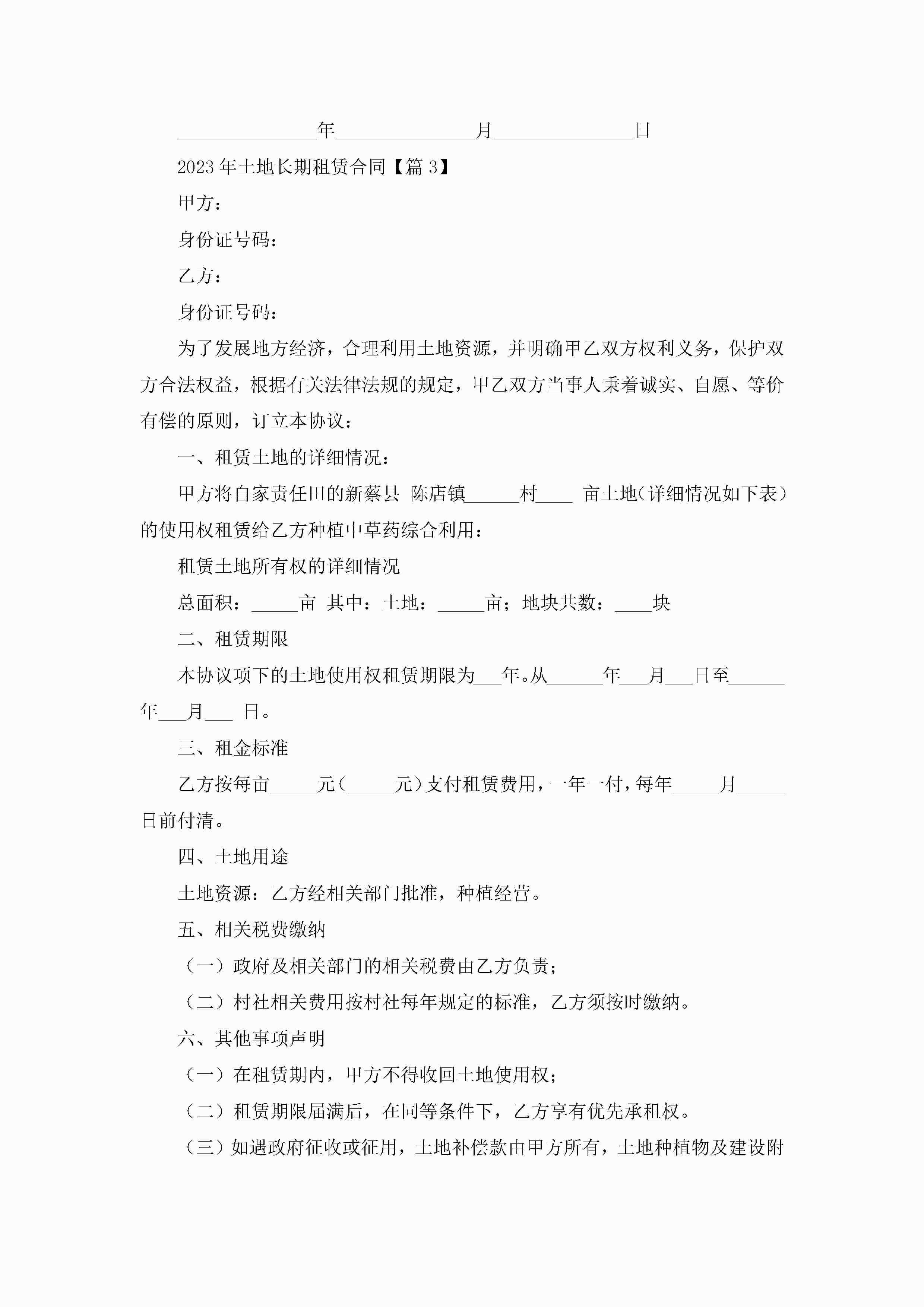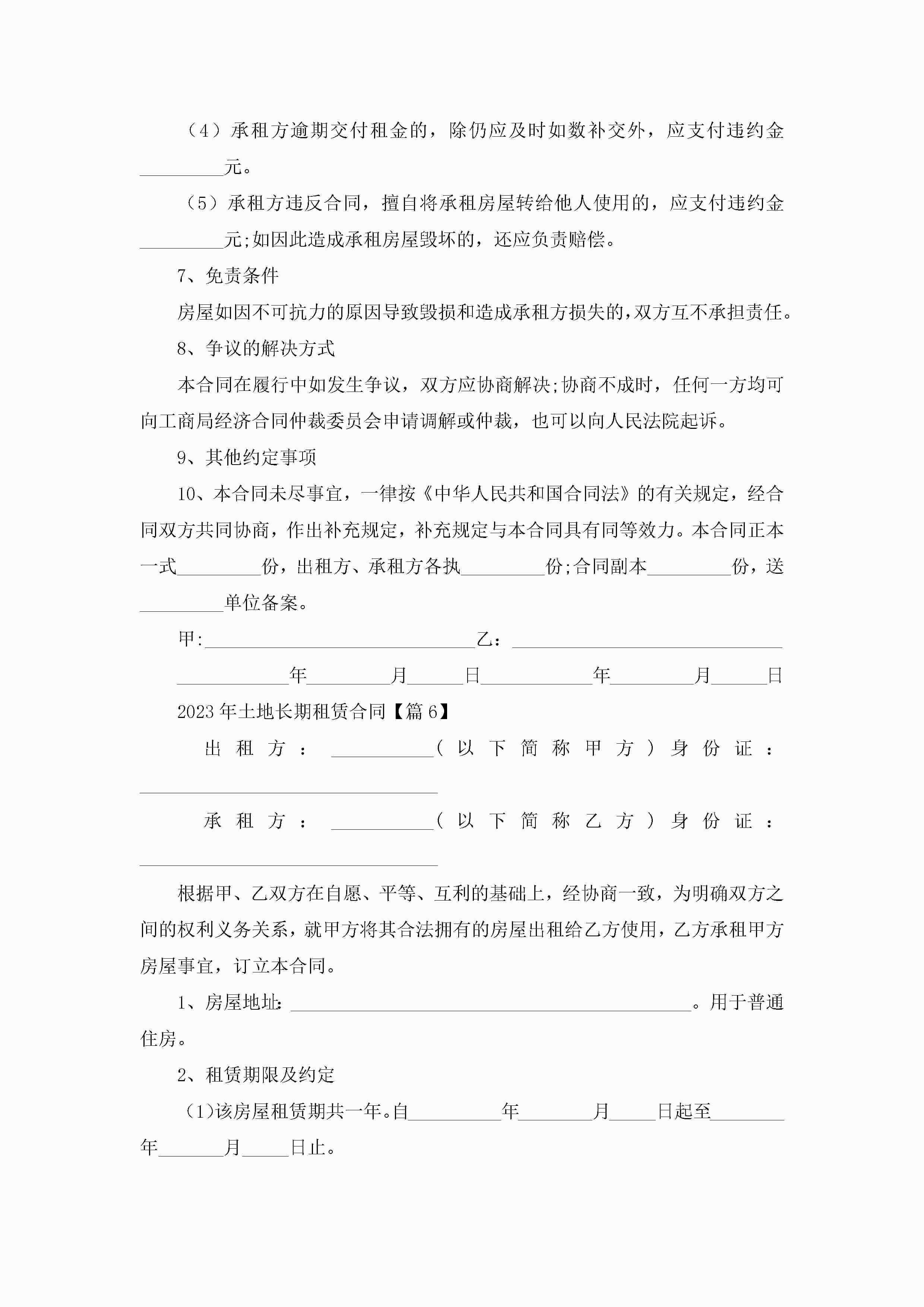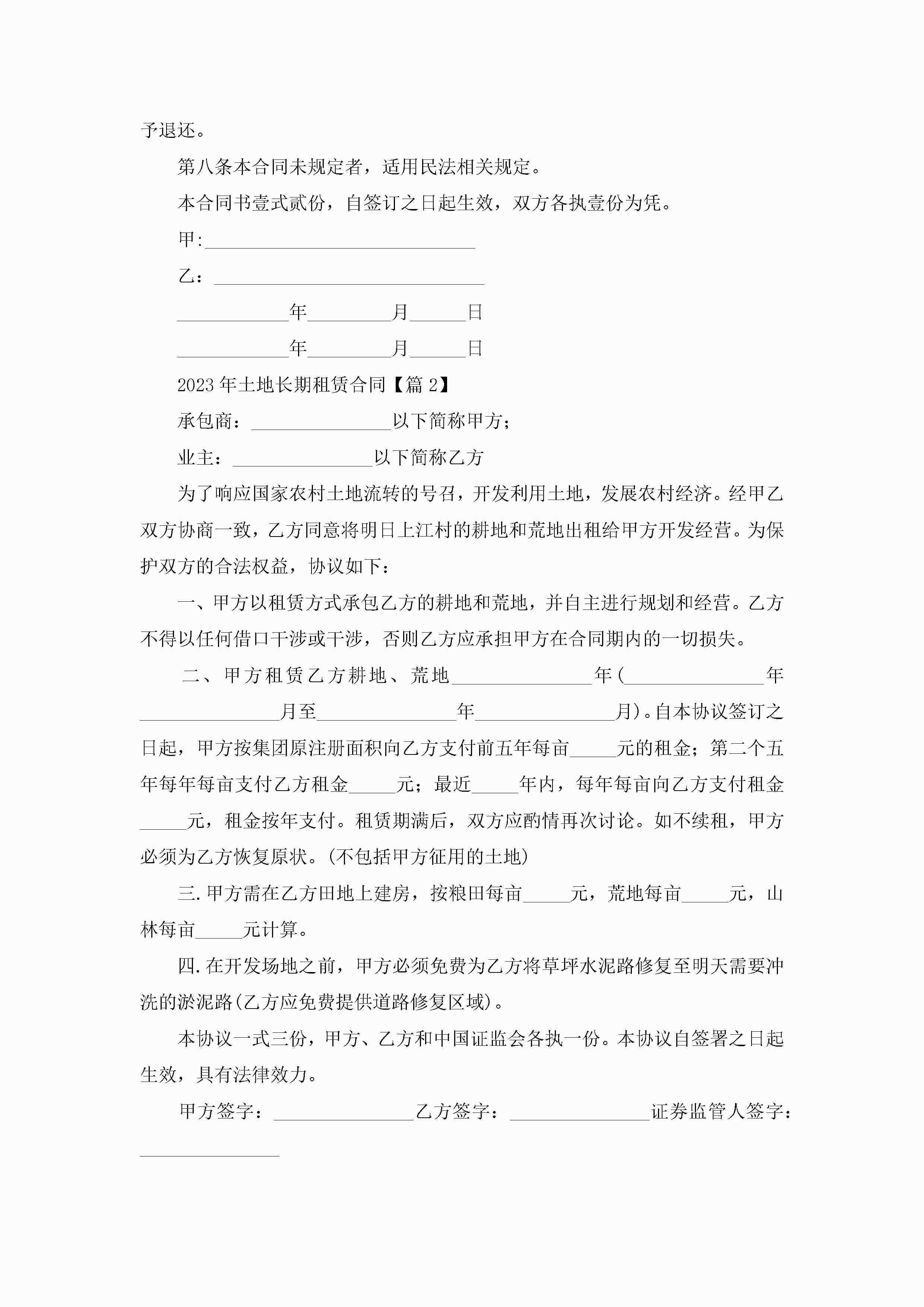 2023年土地长期租赁合同(精选7篇)jugei3月23日 01:43发布关注192 2023年土地长期租赁合同(精选7篇)此内容为付费资源,请付费后查看¥10.9 单篇文档限时特惠¥15个人会员开通企业会员开通立即下载无需登陆!可直接快捷下载单个模板付费资源© 版权声明THE ENDWord模板# 实用文档# 实用模板# 合同模板# 租赁合同 如有问题,可点击最底部“联系我们”联系客服 分享QQ空间微博QQ好友海报分享复制链接收藏