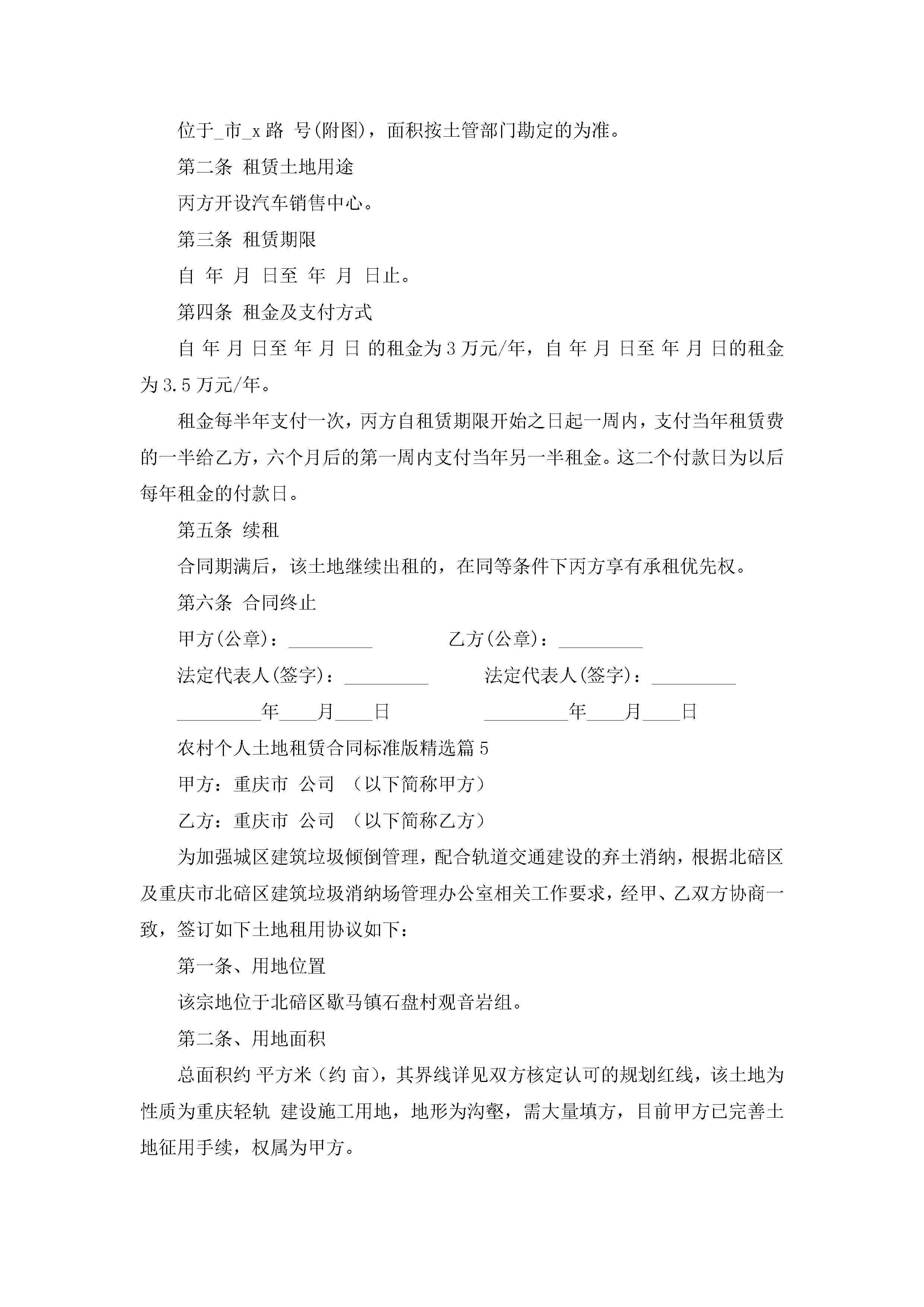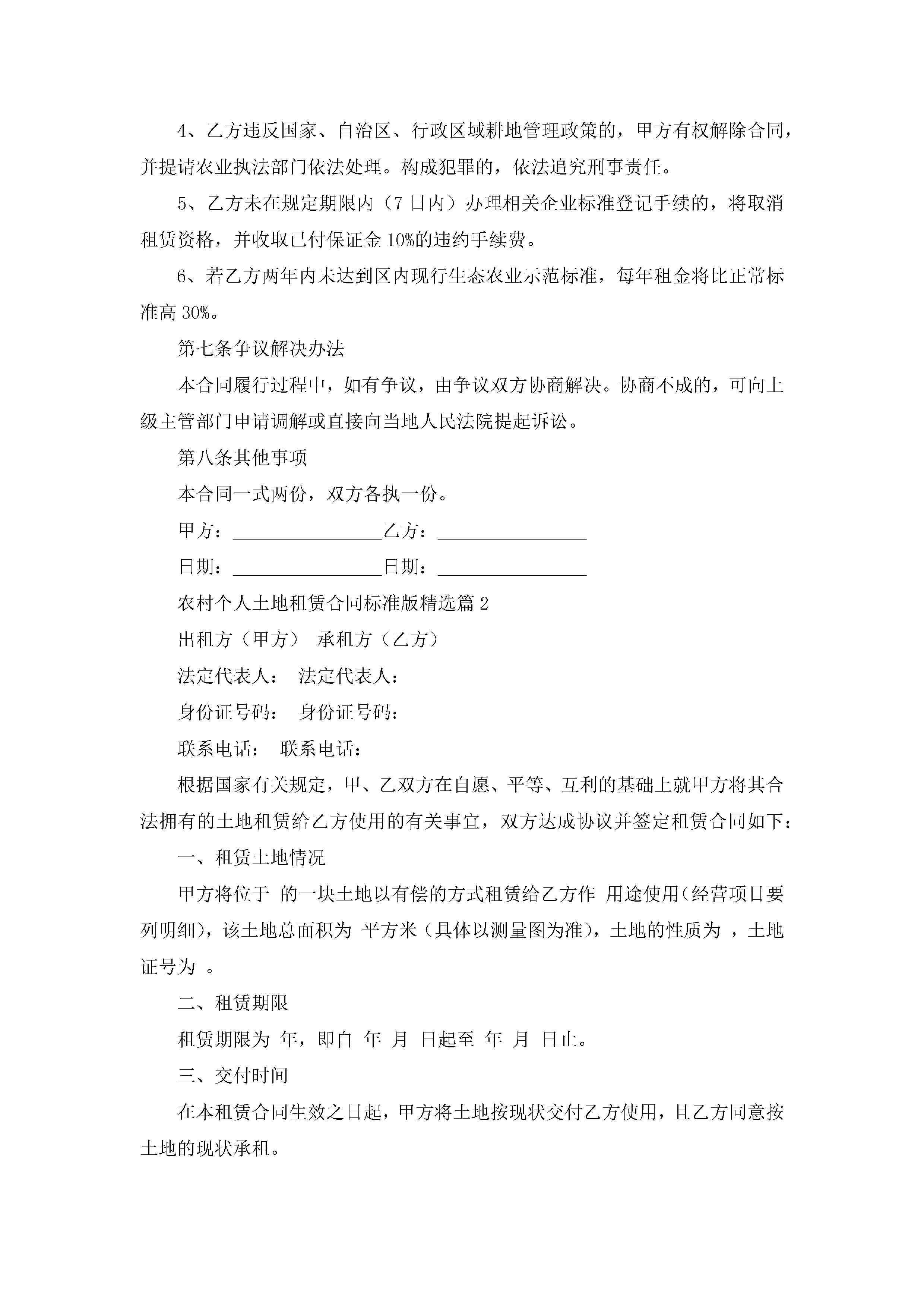农村个人土地租赁合同标准版(精选7篇)jugei3月23日 01:43发布关注200 农村个人土地租赁合同标准版(精选7篇)此内容为付费资源,请付费后查看¥10.9 单篇文档限时特惠¥15个人会员开通企业会员开通立即下载无需登陆!可直接快捷下载单个模板付费资源© 版权声明THE ENDWord模板# 实用文档# 实用模板# 合同模板# 租赁合同 如有问题,可点击最底部“联系我们”联系客服 分享QQ空间微博QQ好友海报分享复制链接收藏
