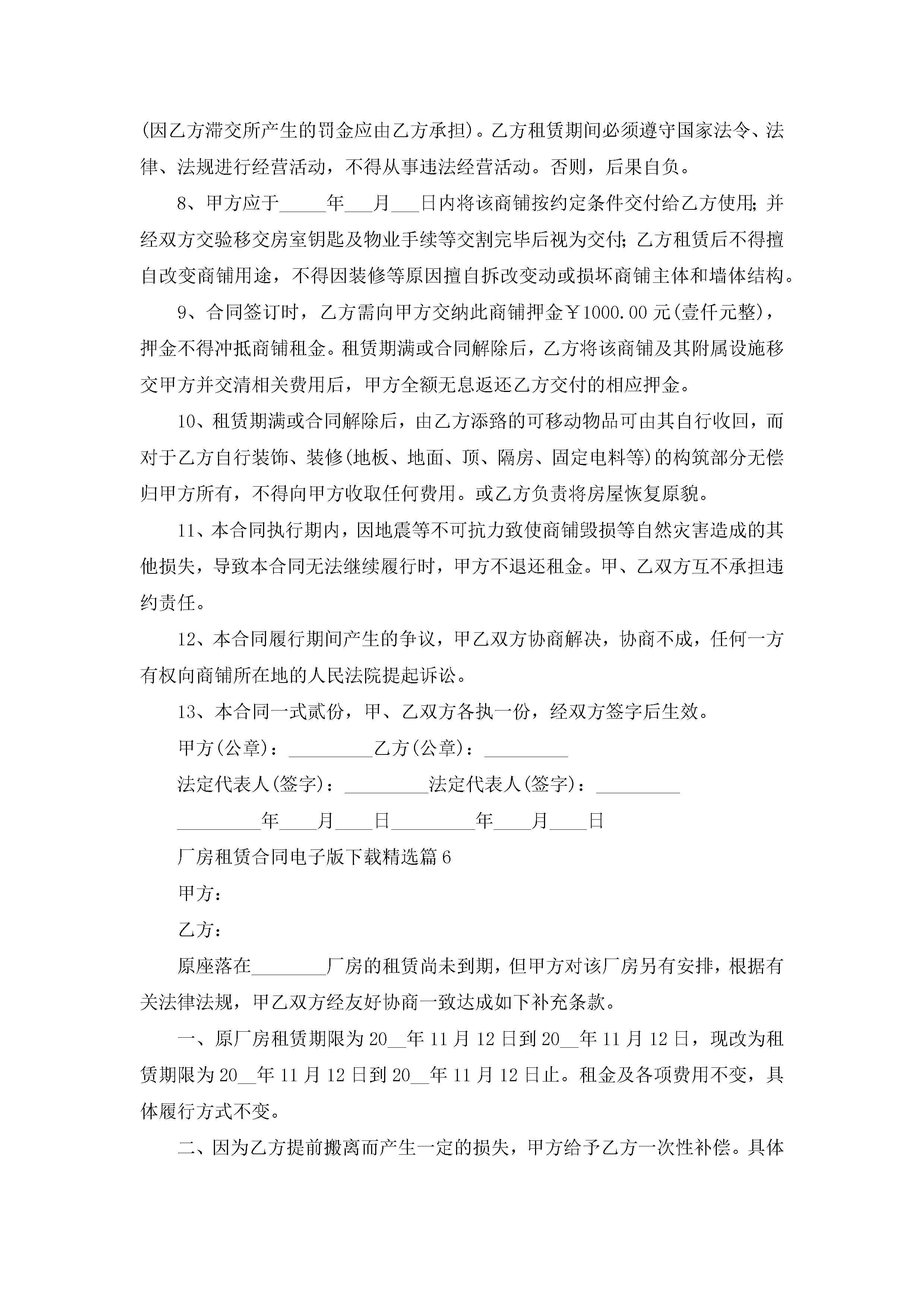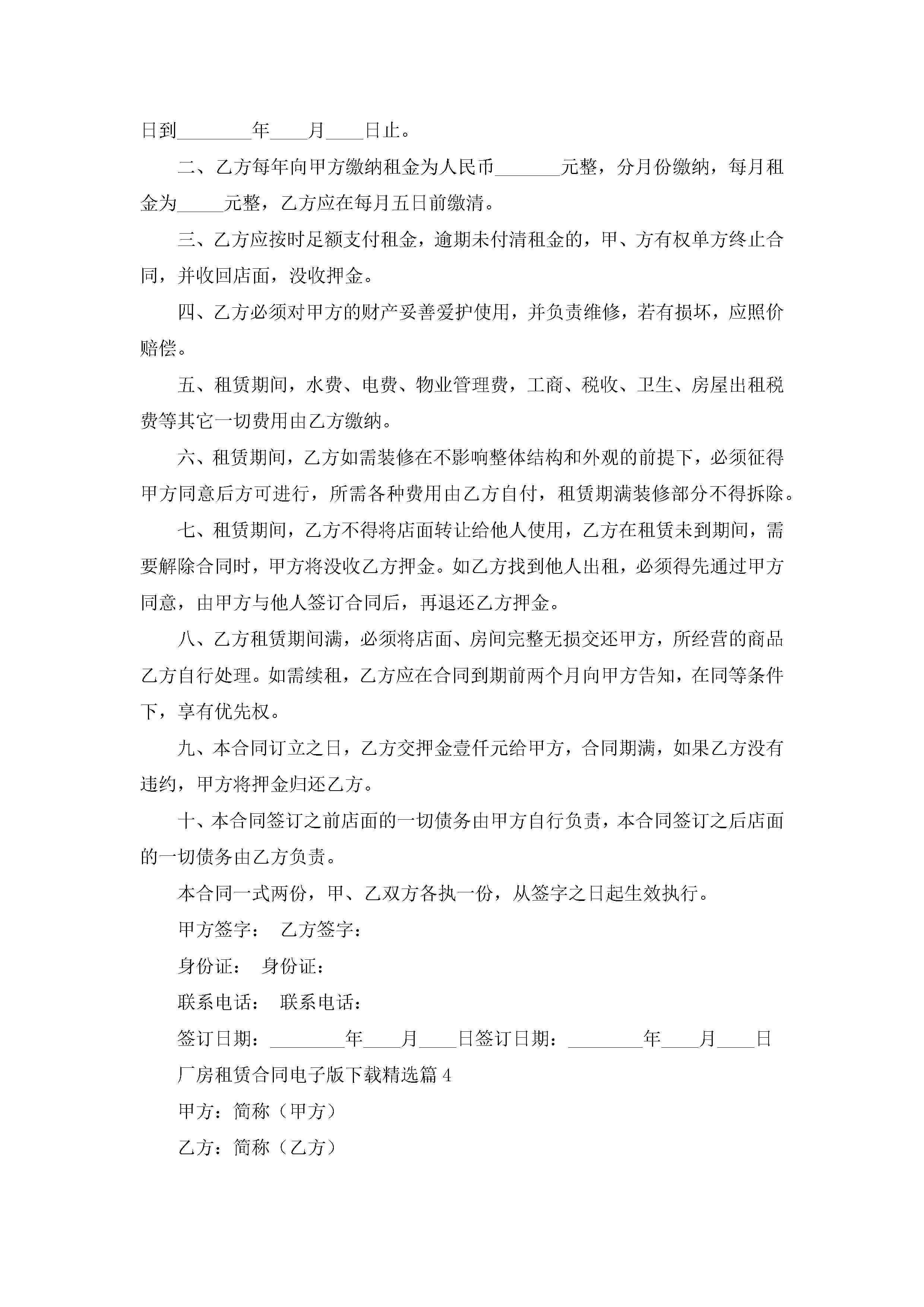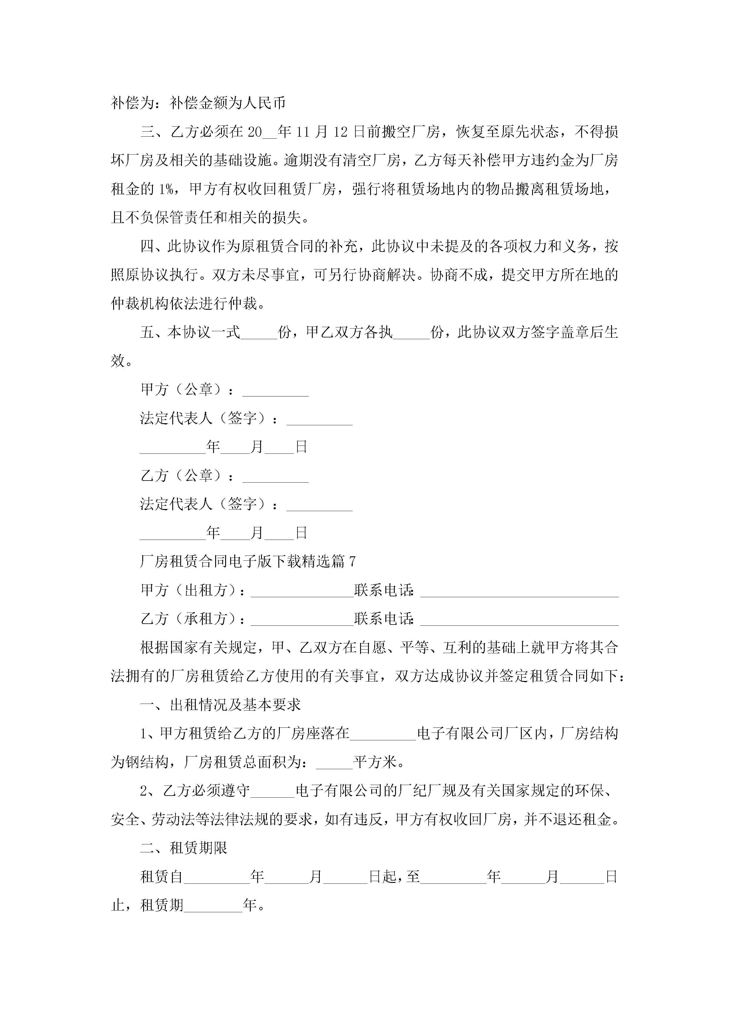 厂房租赁合同电子版下载7篇jugei3月23日 01:43发布关注258 厂房租赁合同电子版下载7篇此内容为付费资源,请付费后查看¥10.9 单篇文档限时特惠¥15个人会员开通企业会员开通立即下载无需登陆!可直接快捷下载单个模板付费资源© 版权声明THE ENDWord模板# 实用文档# 实用模板# 合同模板# 租赁合同 如有问题,可点击最底部“联系我们”联系客服 分享QQ空间微博QQ好友海报分享复制链接收藏