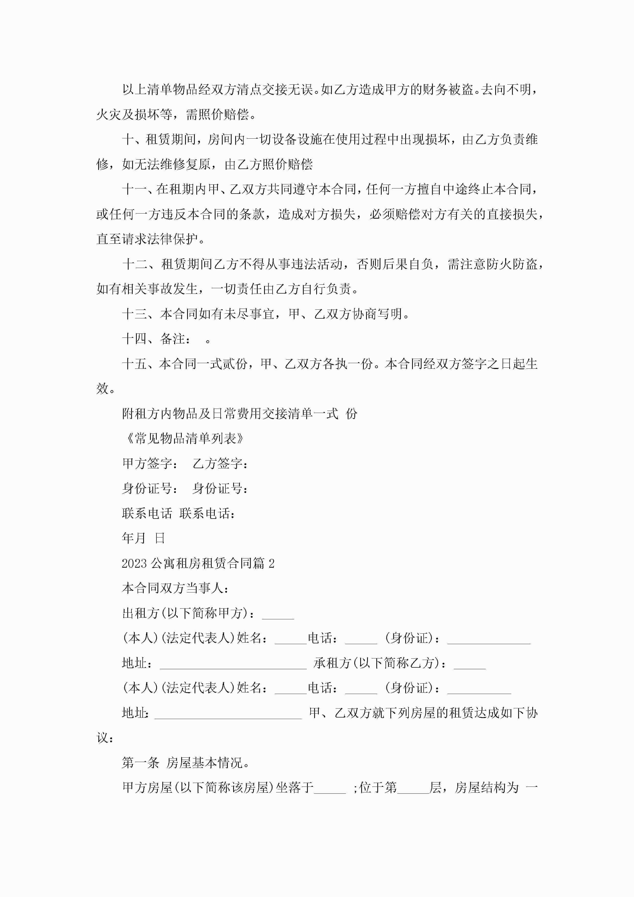 2023公寓租房租赁合同(7篇)jugei3月23日 01:43发布关注186 2023公寓租房租赁合同(7篇)此内容为付费资源,请付费后查看¥10.9 单篇文档限时特惠¥15个人会员开通企业会员开通立即下载无需登陆!可直接快捷下载单个模板付费资源© 版权声明THE ENDWord模板# 实用文档# 合同模板# 租赁合同# 2023公寓租房租赁合同 如有问题,可点击最底部“联系我们”联系客服 分享QQ空间微博QQ好友海报分享复制链接收藏