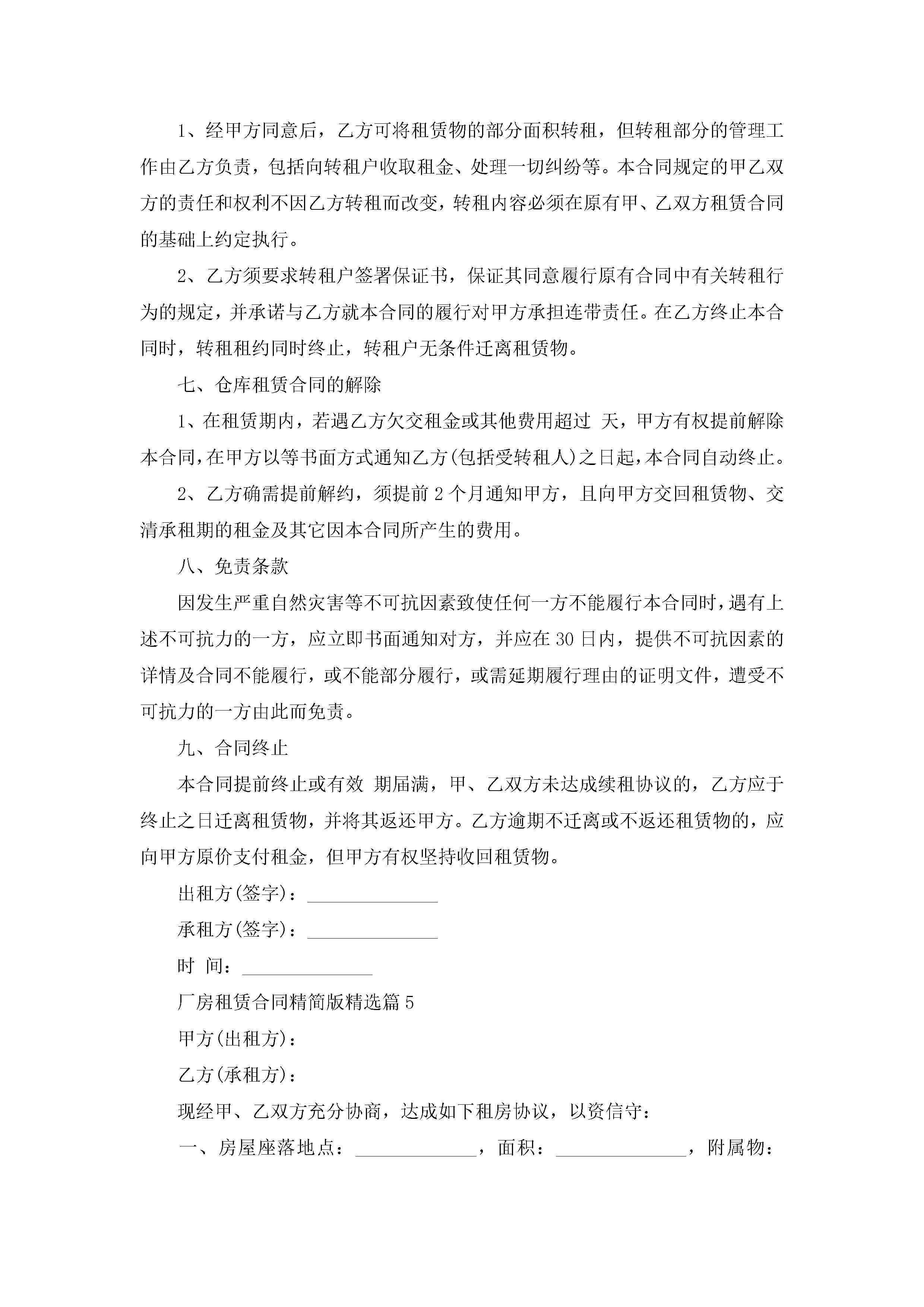 厂房租赁合同精简版7篇jugei3月23日 01:43发布关注355 厂房租赁合同精简版7篇此内容为付费资源,请付费后查看¥10.9 单篇文档限时特惠¥15个人会员开通企业会员开通立即下载无需登陆!可直接快捷下载单个模板付费资源© 版权声明THE ENDWord模板# 实用文档# 实用模板# 合同模板# 租赁合同 如有问题,可点击最底部“联系我们”联系客服 分享QQ空间微博QQ好友海报分享复制链接收藏