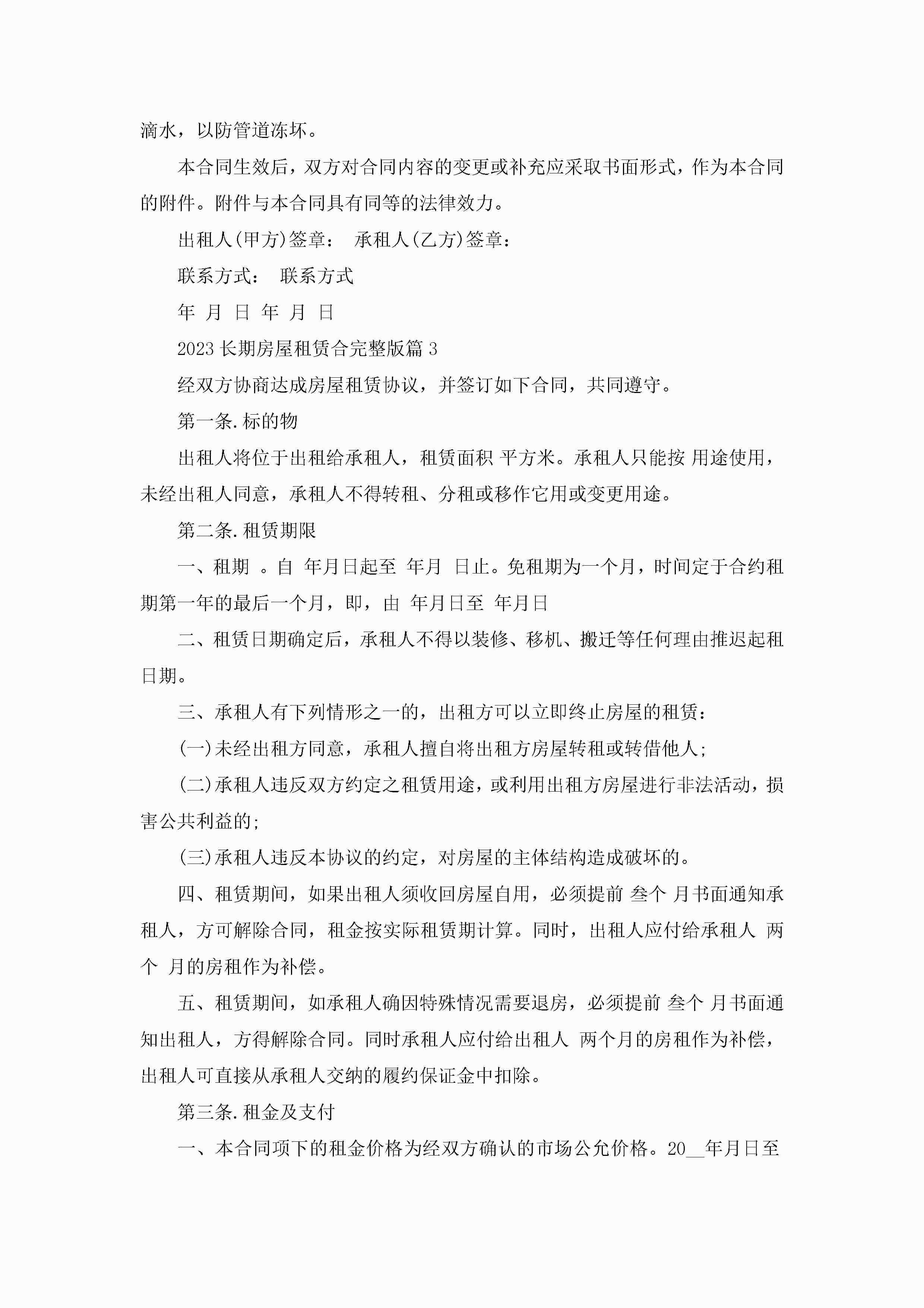 2023长期房屋租赁合同完整版(7篇)jugei3月23日 01:43发布关注194 2023长期房屋租赁合同完整版(7篇)此内容为付费资源,请付费后查看¥10.9 单篇文档限时特惠¥15个人会员开通企业会员开通立即下载无需登陆!可直接快捷下载单个模板付费资源© 版权声明THE ENDWord模板# 实用文档# 合同模板# 租赁合同# 2023长期房屋租赁合完整版 如有问题,可点击最底部“联系我们”联系客服 分享QQ空间微博QQ好友海报分享复制链接收藏