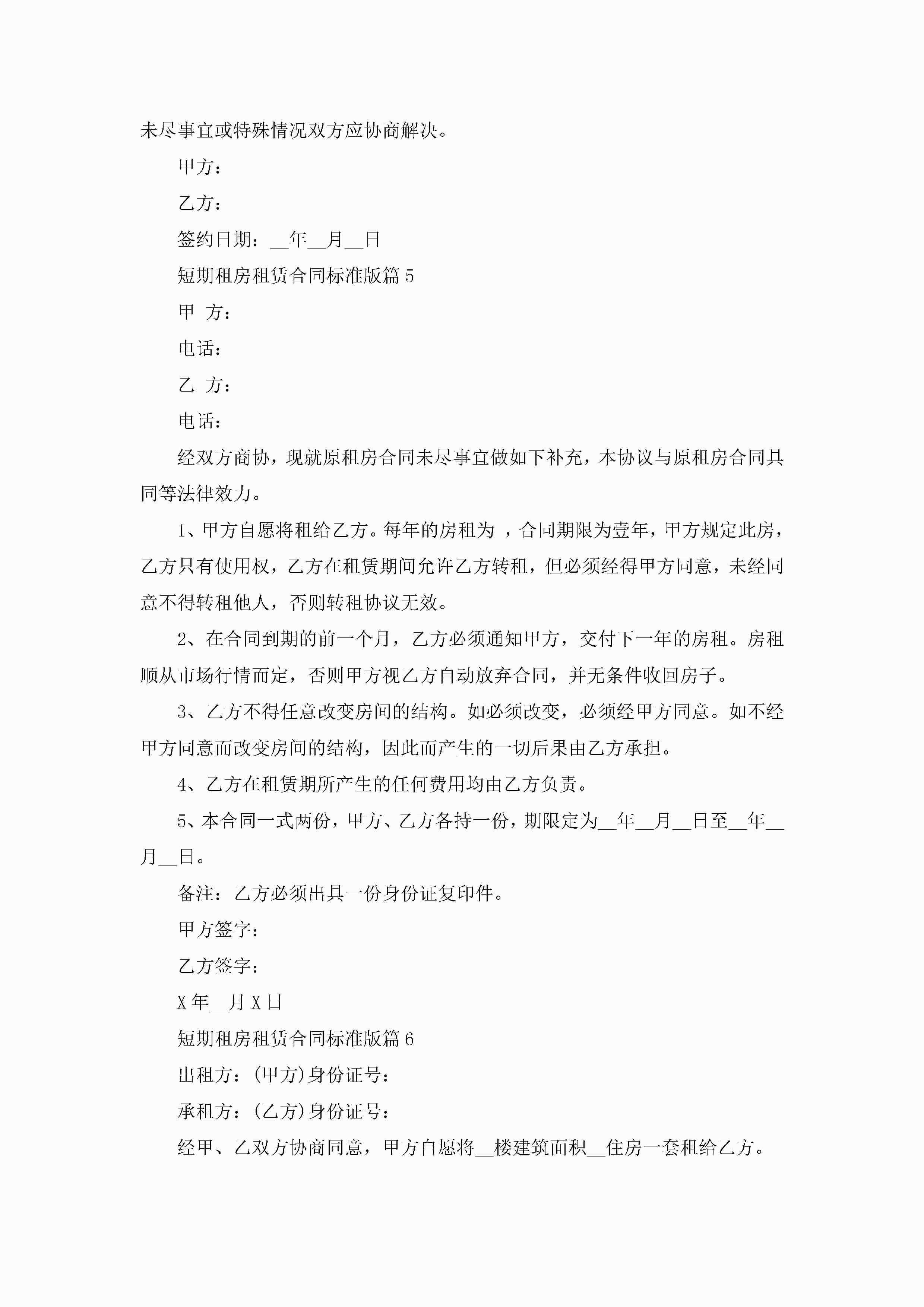 最新短期租房租赁合同标准版(10篇)jugei3月23日 01:43发布关注253 最新短期租房租赁合同标准版(10篇)此内容为付费资源,请付费后查看¥10.9 单篇文档限时特惠¥15个人会员开通企业会员开通立即下载无需登陆!可直接快捷下载单个模板付费资源© 版权声明THE ENDWord模板# 实用文档# 合同模板# 租赁合同# 短期租房租赁合同标准版(10篇) 如有问题,可点击最底部“联系我们”联系客服 分享QQ空间微博QQ好友海报分享复制链接收藏